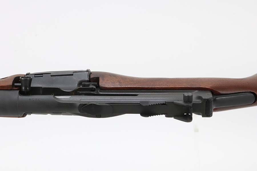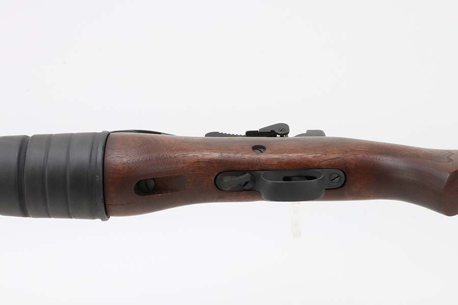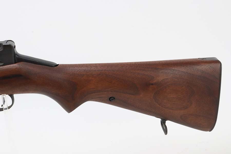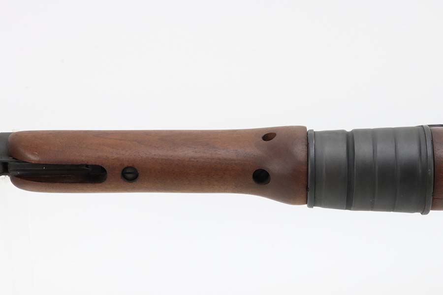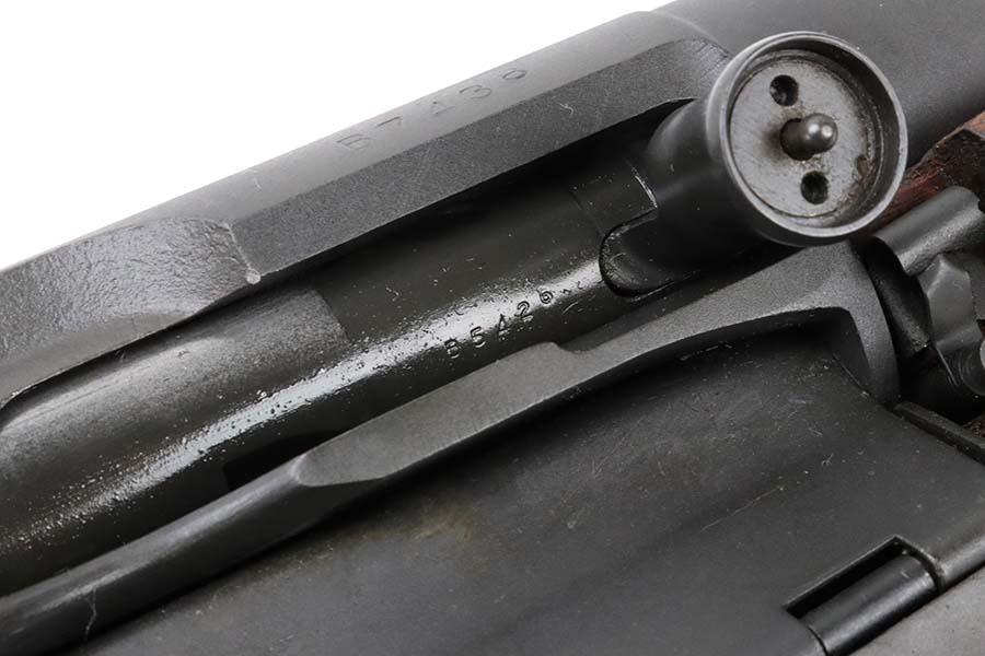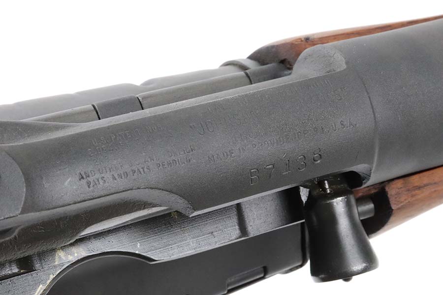 3/6/24 – This is an excellent Johnson M1941 Rifle from World War II! The finish and stock show (arsenal?) refurbishment. The wood is excellent but does have a small surface crack on the underside, behind the mag tube. Bore has strong rifling but some frost throughout. Only 20,000 of this model were manufactured!