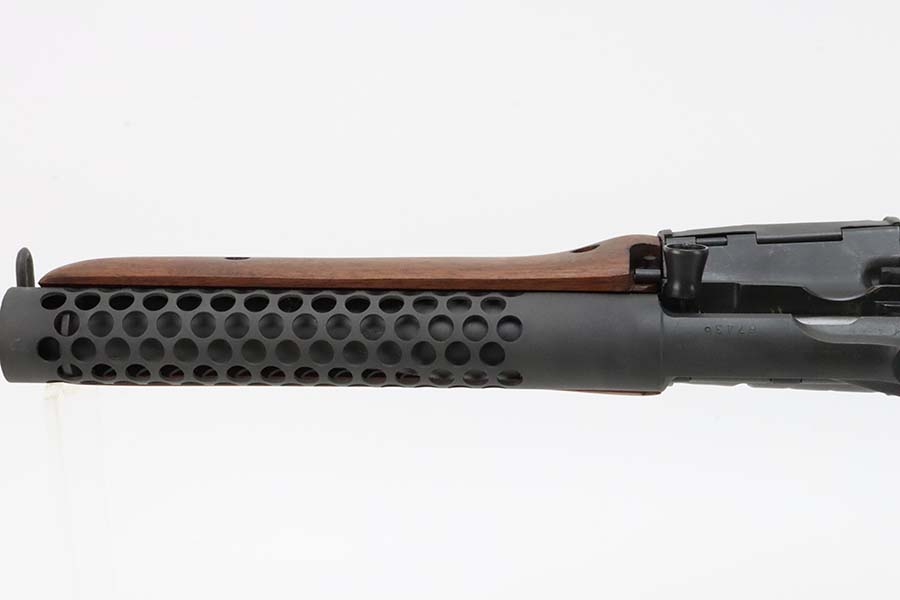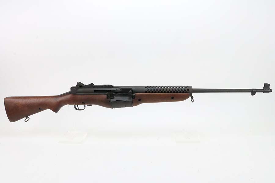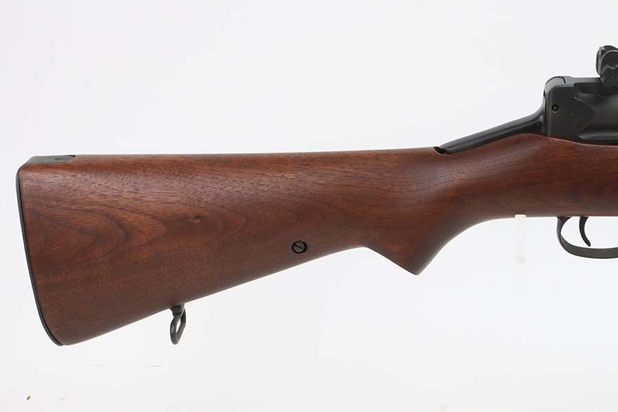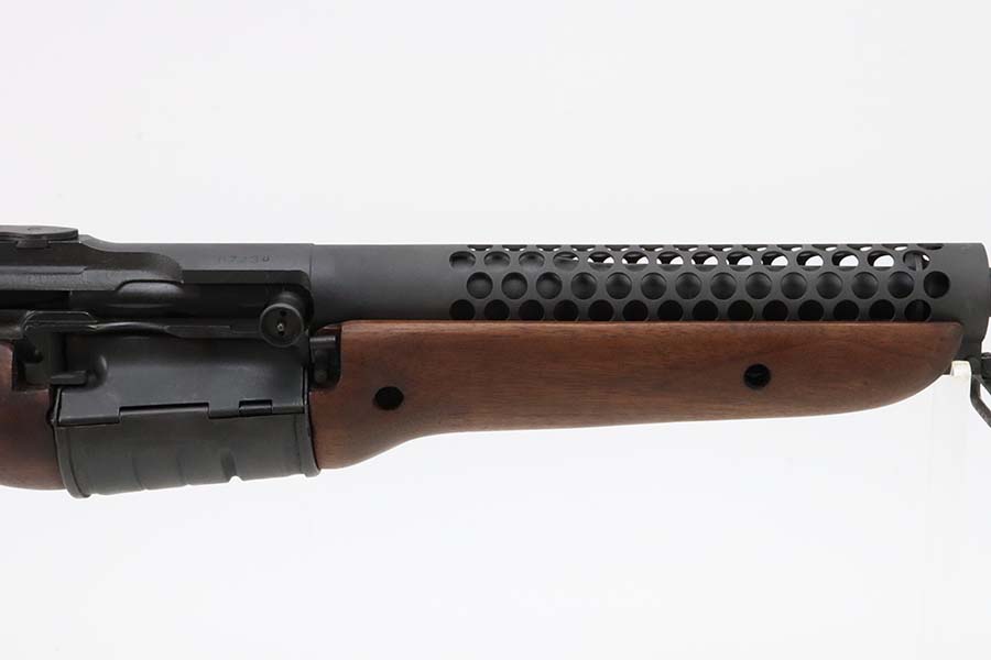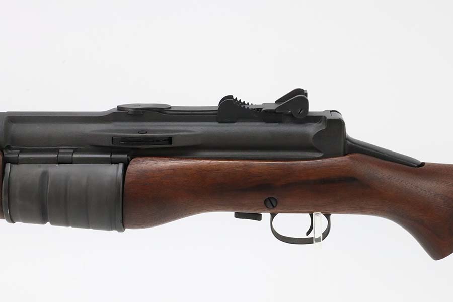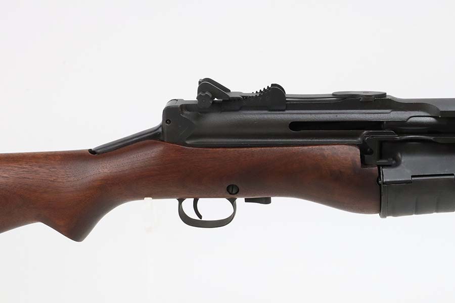 3/6/24 – This is an excellent Johnson M1941 Rifle from World War II! The finish and stock show (arsenal?) refurbishment. The wood is excellent but does have a small surface crack on the underside, behind the mag tube. Bore has strong rifling but some frost throughout. Only 20,000 of this model were manufactured!
