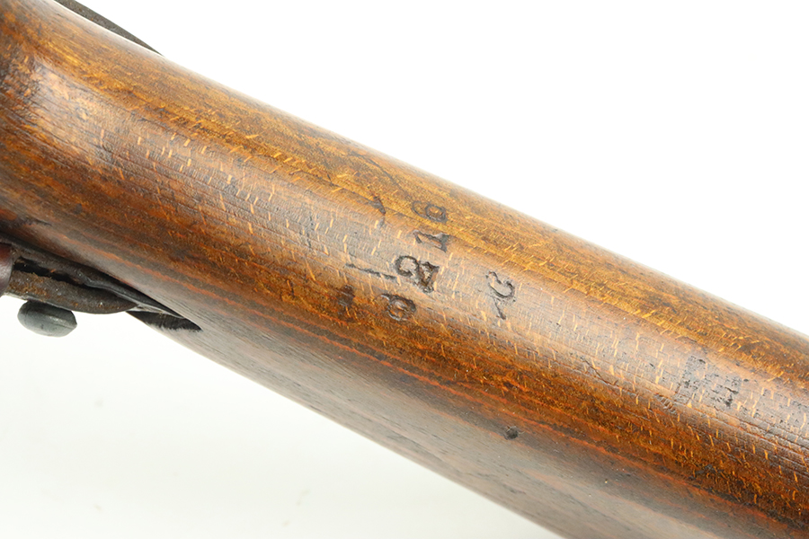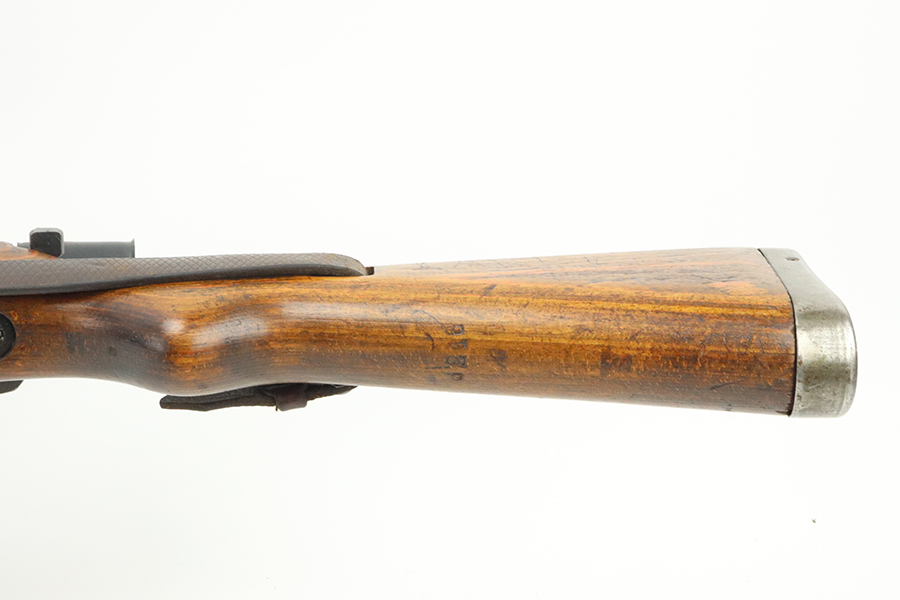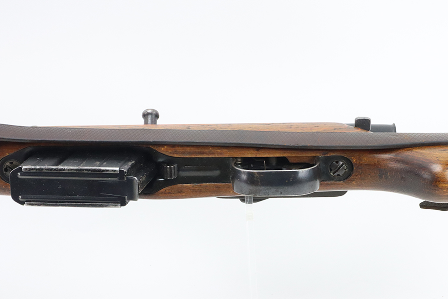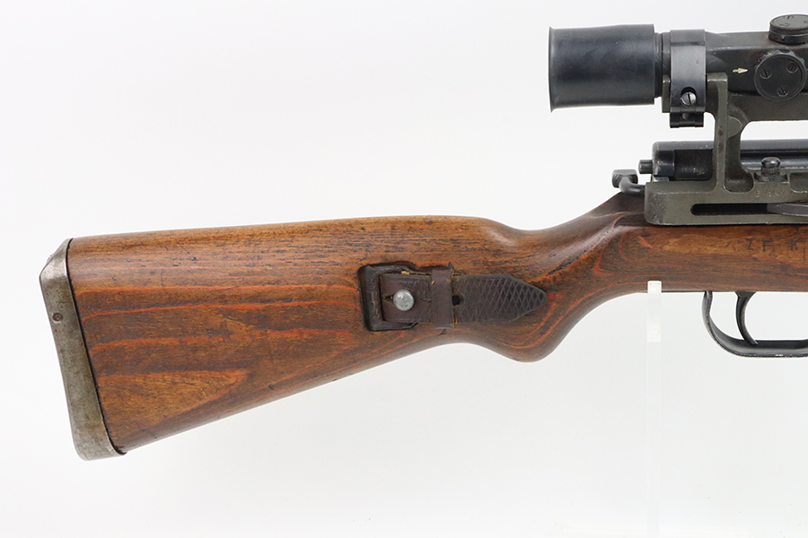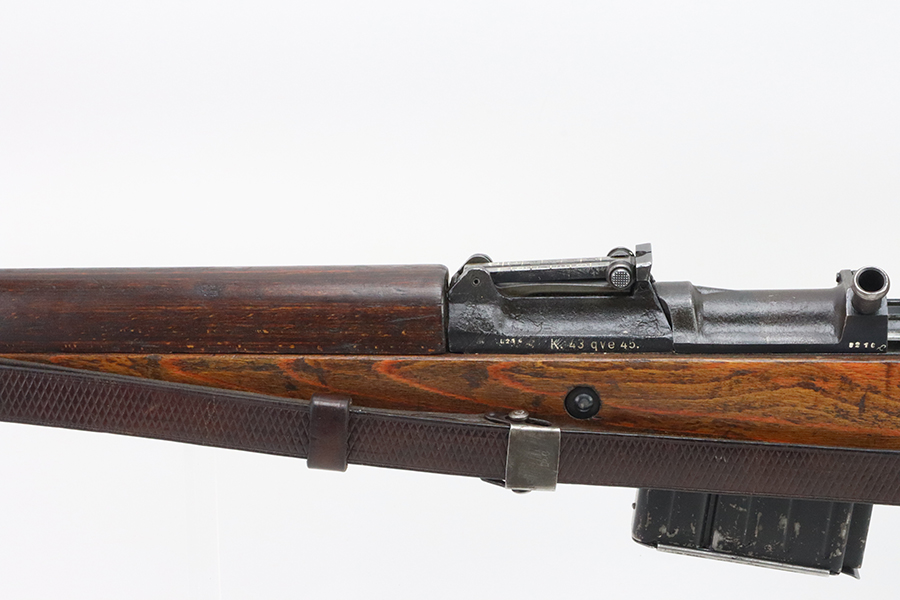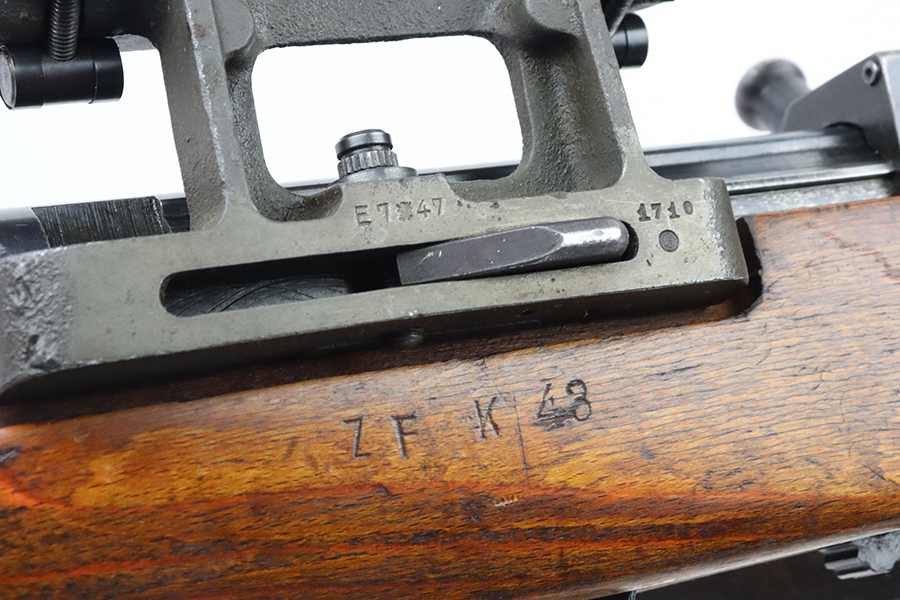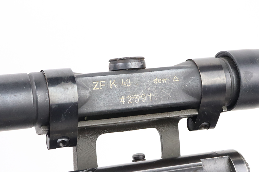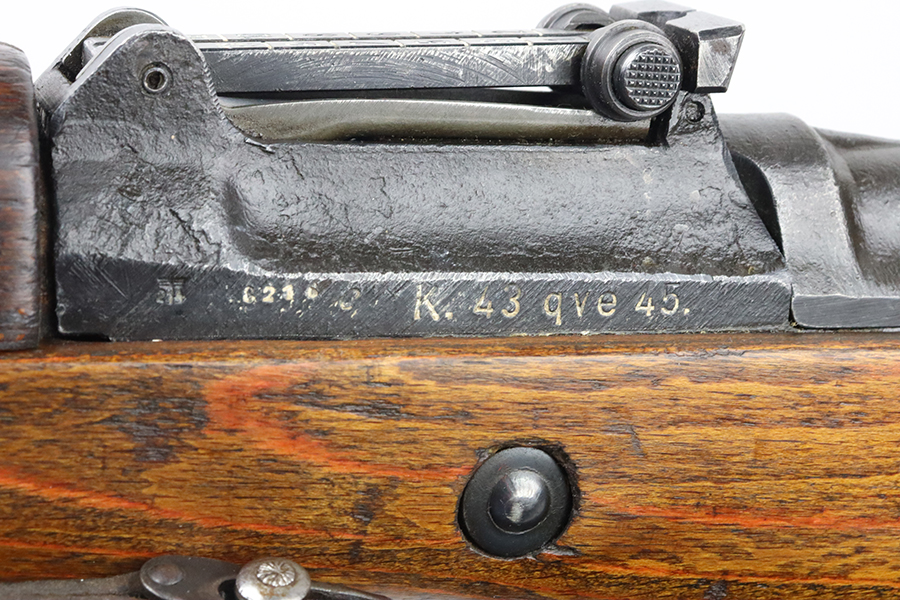 4/5/24 – This is the most uncommon variation of the German G43(K43) rifle, made in the final months of the war, around February-March of 1945. It was made at the Berliner Lubecker factory, which was assigned a ‘qve’ code in 1945 instead of the previous ‘bcd’ code. With a total of about 60,000 rifles made, this variation is one of the least encountered by the collectors and exhibits the late war rough machining and bluing. The gun is all original and matching, including the receiver, bolt, buttstock and the internals. The finish is excellent overall. No major damage to the wood – there is a clear matching serial number, clear waffen proofs, a “Z F K43” stamp on the right side, and “CANT” lightly hand-scratched on the left side of the butt stock. The bore has strong rifling with some frost in the grooves. The listing includes a ZF4 scope with mount. The scope is WW2 original with decent optics but a little cloudy throughout. The mount is a postwar Czech production.