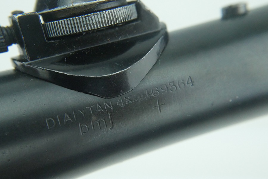 10/21/24 – This is an original WW2 German Dialytan 4x rifle scope by Hensoldt. Scope rings and mount are reproductions. Overall, this piece is in excellent condition with most of the original blued finish intact. There’s some mild surface patina / browning discoloration mixed within the finish, which is natural aging wear. The scope is stamped with a “+” sign which indicates the optics were treated for cold weather conditions. The optics are crisp, clean, and excellent with a distinct reticle, as shown in photos.