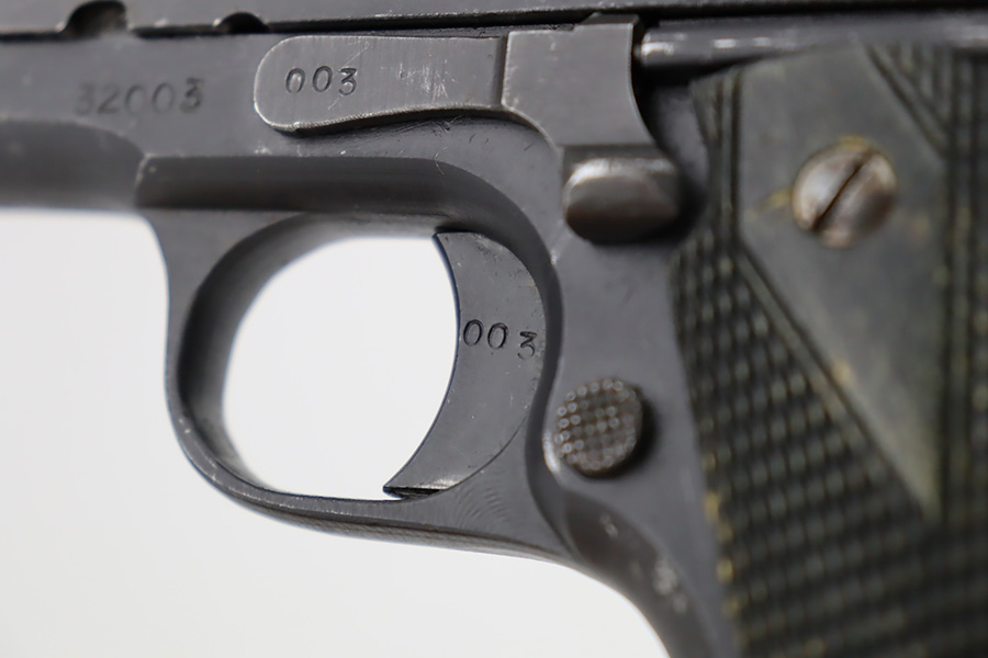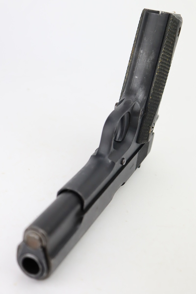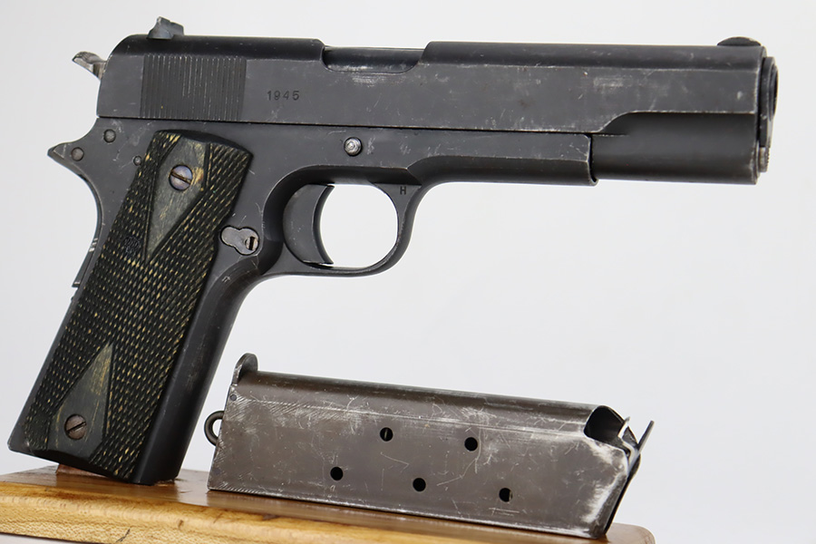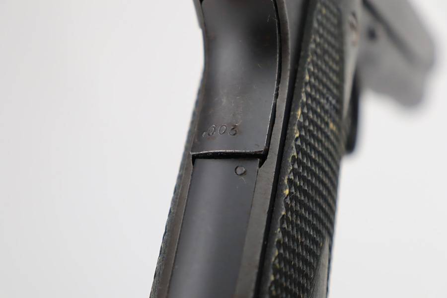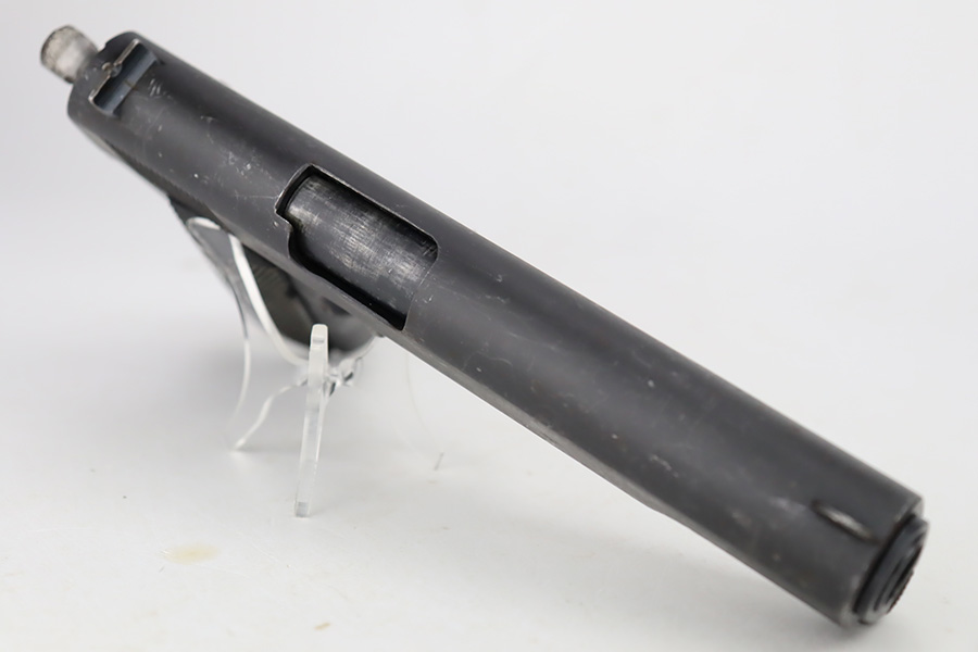 9/27/23 – This is an excellent example of a rare Kongsberg M1914 from 1945. This variation was assembled after the end of the war from the parts on hand, one of 1,800 produced. This one is all original, with all matching numbers. As these were assembled from the leftovers, these are very hard to find in all matching configuration. The original finish is in excellent condition with minor wear on either side of the muzzle and a little on the front strap. Mint bore. Excellent stained birch grips with no cracks.