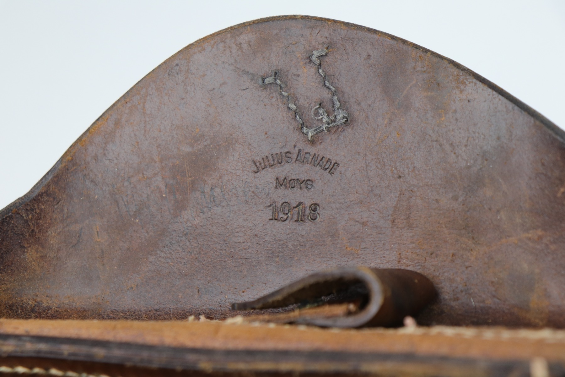 11/21/20 – This is an excellent L.Z.A. brown leather holster from World War One. The holster is a rare example of an WWI luger holster with the L.Z.A. stamp. The stitching is still in great shape and the holster overall is excellent. L.Z.A. stamp with J. Breslau surrounds the eagle on the reverse side. Julius Arnade 1918 is stamped on the inner flap. A fantastic addition to any collectors inventory!
