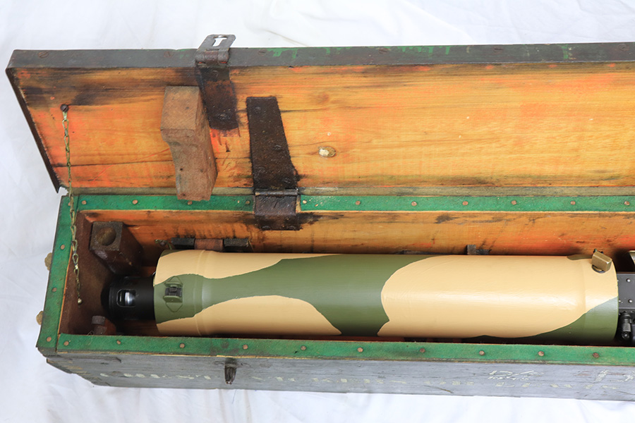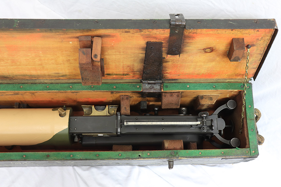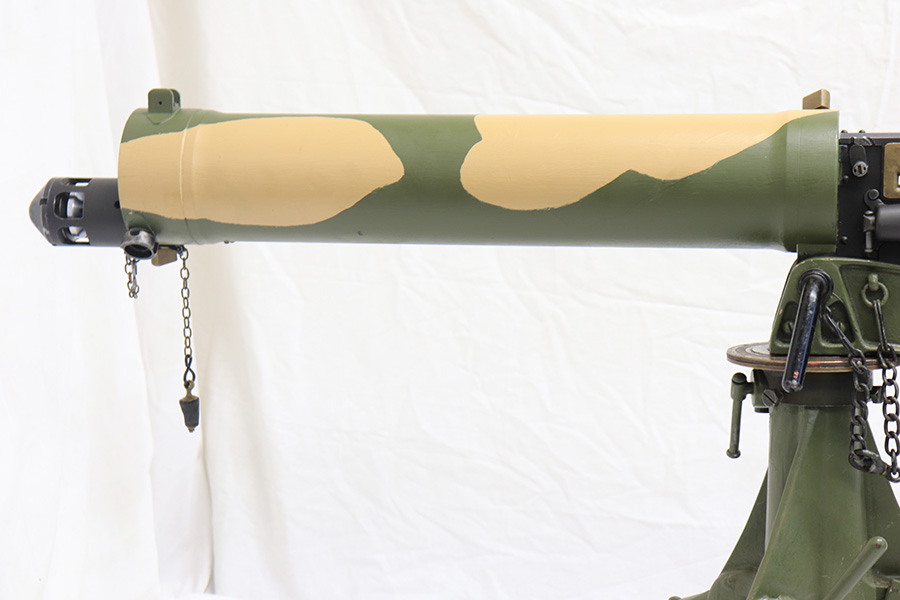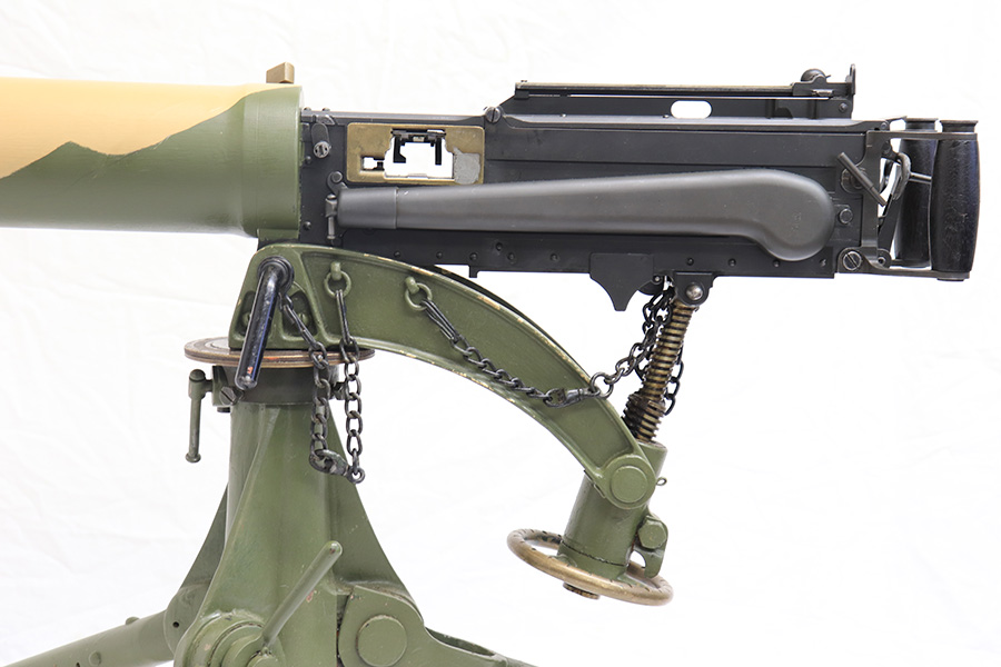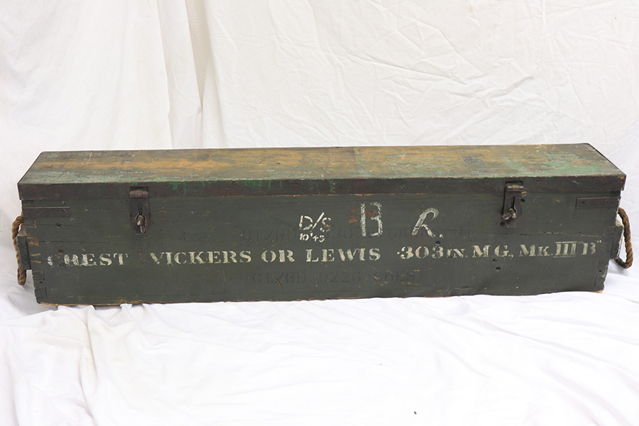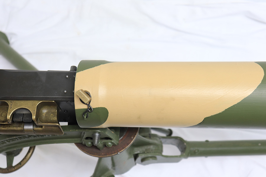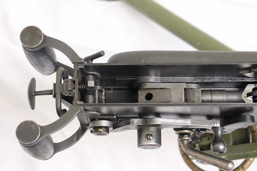 4/13/22 – This is a rare and super cool Lithgow Vickers Mark I that was rebuilt in semi-automatic. This Vickers resembles their full-automatic counterparts but is built to a semi-automatic specification approved by the Bureau of Alcohol, Tobacco and Firearms (BATF) that prevents installing full-auto fire control parts. The listing comes with the BATF approval document. The semi-auto Mark I Vickers is in .303 cal and was assembled using a Lithgow parts kit in 2006. The conversion of the recoil plates, lock, and sear were done by one of the better known early Vickers builders, Lonnie Ingram. Being an early build, the dimensions of the installed right side plate are not as true as the current commercial available semi-auto right side plates. Therefore, another semi-automatic right side plate, cam, and denial island made by Midwest Metal Creations of Lisbon, Iowa is included. The serial number on this additional right side plate matches the Vickers trunnion. The tripod’s legs and socket are British and dated 1942. The tripod socket is steel. The cross head is marked RT (Randwick Tramways, Sydney) and is dated 1942. Likewise, included are a broad arrow marked water can, water hose, and transit chest. The rifle is in excellent condition and our consignor has fired it himself without issue. FFL required.