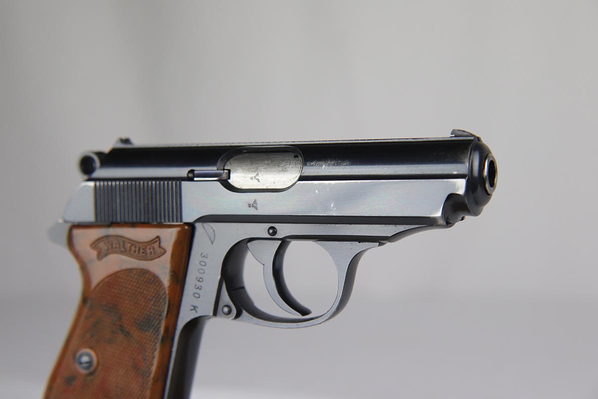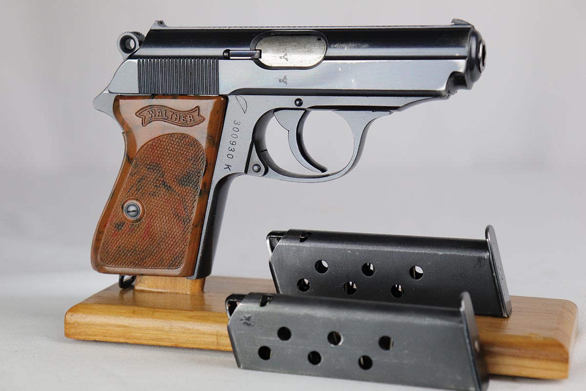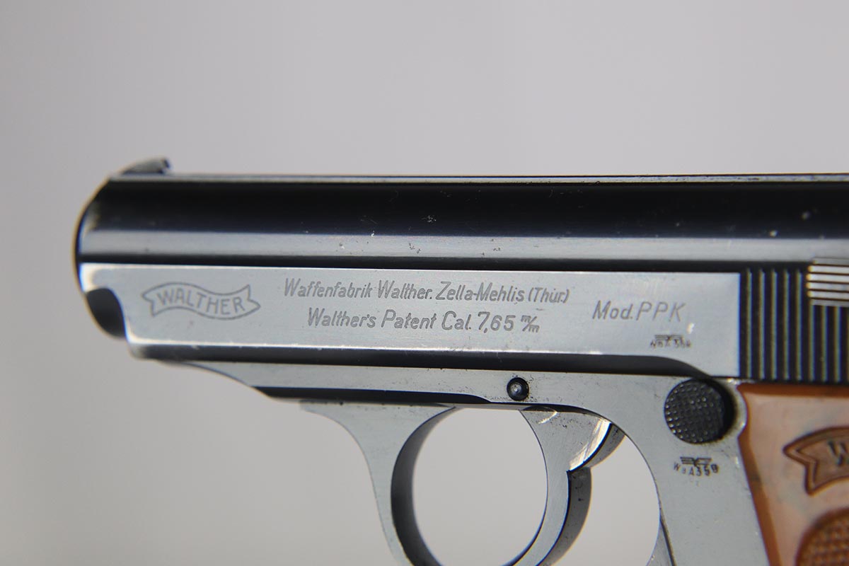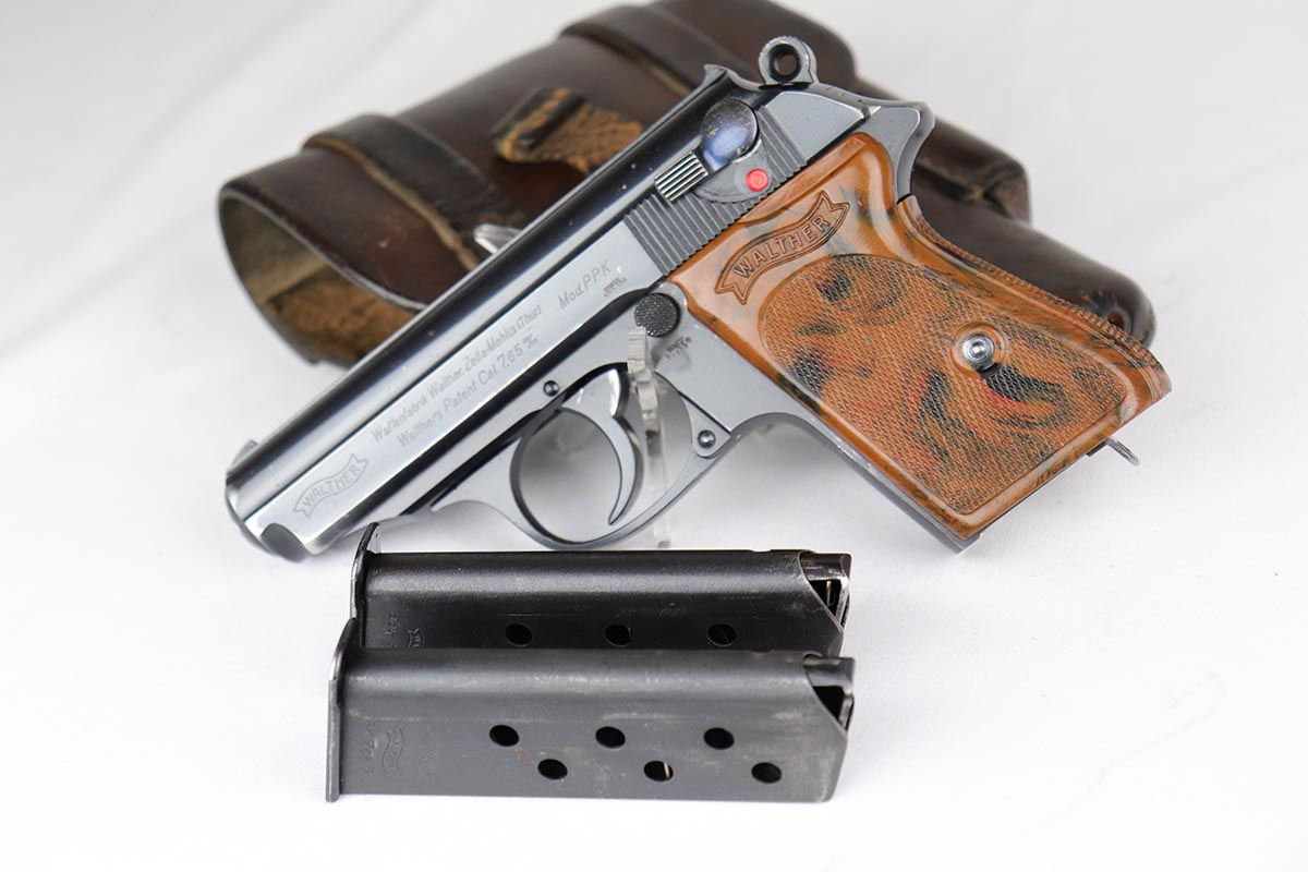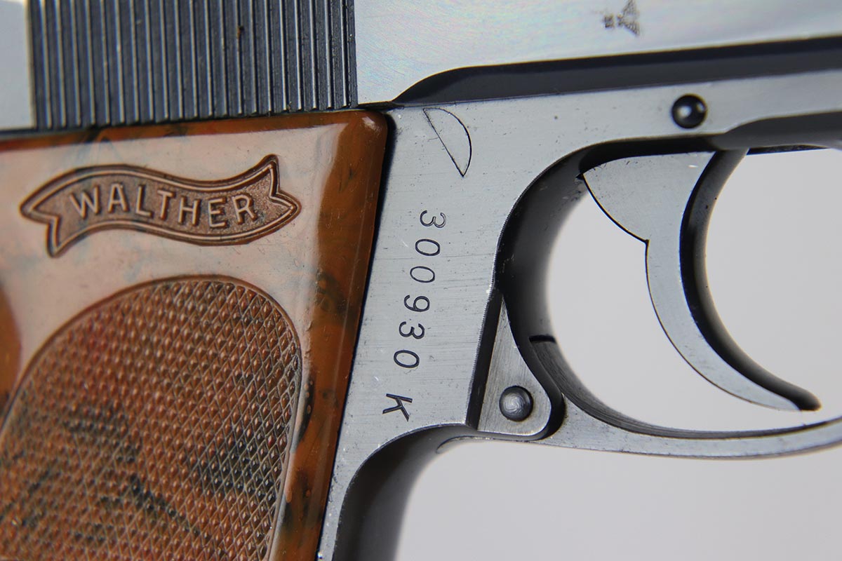 2/28/18 – This is an unbelievable find: a complete matching Walther PPK Luftwaffe procurement rig, waffenamted with two matching magazines and a Theuermann drop holster. This is an all original, all matching rig that retains about 95% of the bluing. The gun was part of the Luftwaffe procurement, most likely for the officer pilots. Both mags’ serials are absolutely original and are a textbook example of the Walther military magazine numbering. Excellent bore and grips. A scarce Theuermann drop holster is in excellent condition as well and without defects. A potential centerpiece of any WWII military handgun collection.