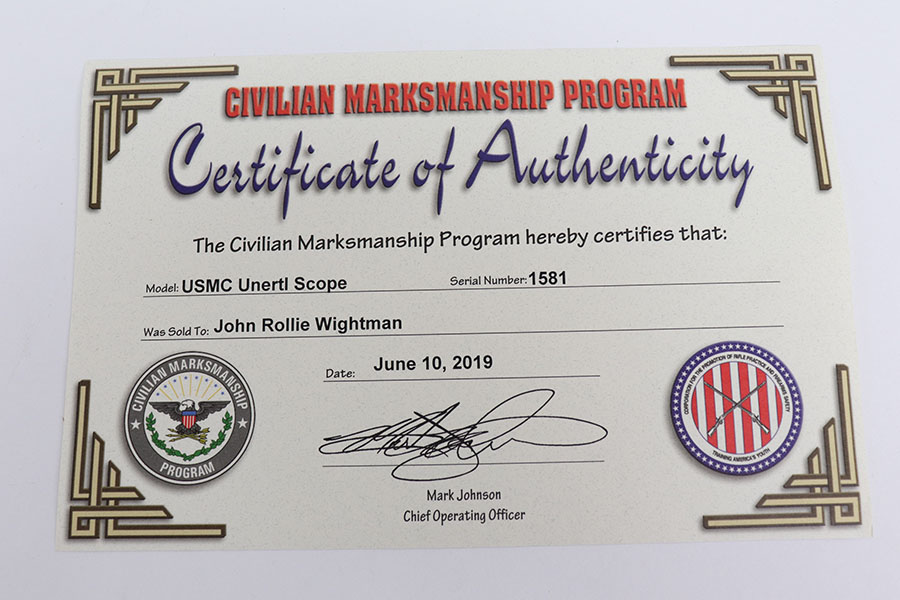 10/16/20 – This is a rare and interesting M40A1 USMC “clone” sniper rifle, likely dating to the 1980s. It has the rare “smear”, “finger painted” McMillan fiberglass stock. The original owner’s family reports it was initially built by Seely Masker, a then extremely well-known custom rifle builder from New York who passed away in 1996. The gun comes with a Seely Masker marked and produced barrel in the M40A1 profile (same as the stock channel). The gun was later re-barreled with the correct USMC Gary Schneider made barrel in USMC M40A1 issued specs. The McMillan factory “smear” stock has Win70 bottom metal and a Win 70 trigger guard. The trigger guard appears to be “pre-64” style since it is the narrower guard. The Remington 700 receiver likely dates to late 1966 or early 1967. It has the “tombstone” style trigger group safety, as was used on the earlier USMC M40’s from that era. The scope mount is a “two man attack” reproduction of the Unertl M40A1 mount. The gun comes with an original issued Unertl USMC 10X scope with the accompanying CMP certificate. Scope serial dates it to about june of 1983. Comes with spare Seely Masker .308 barrel. Minty bores on both barrels.