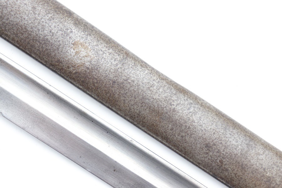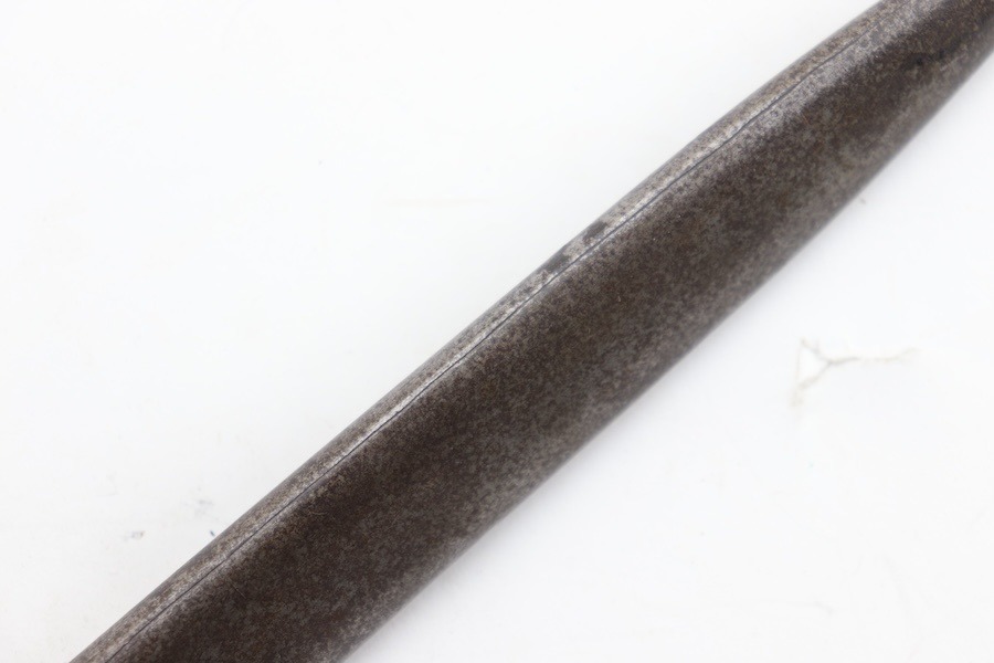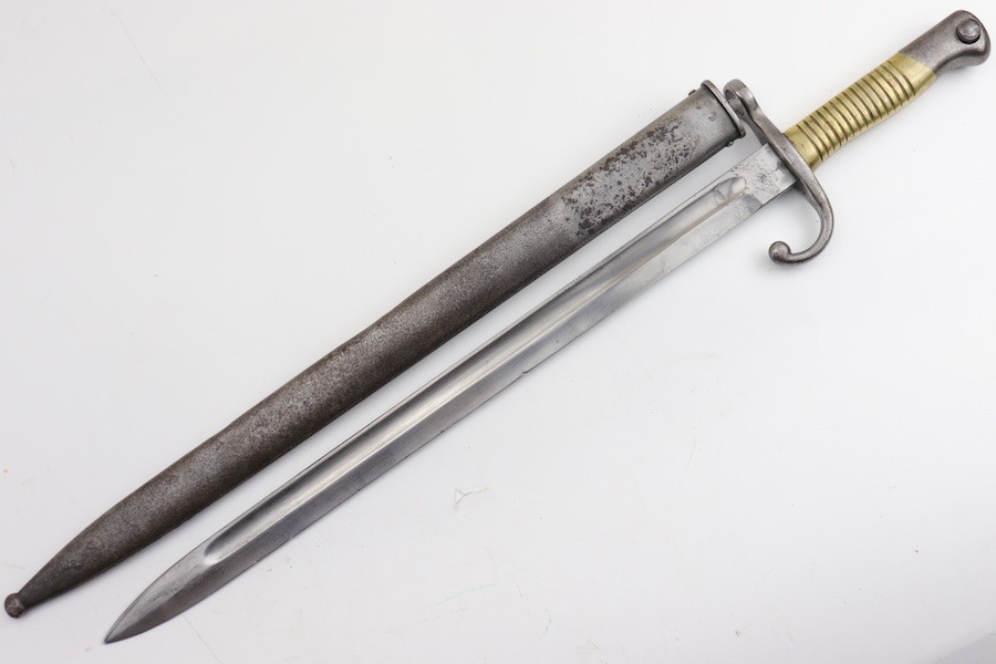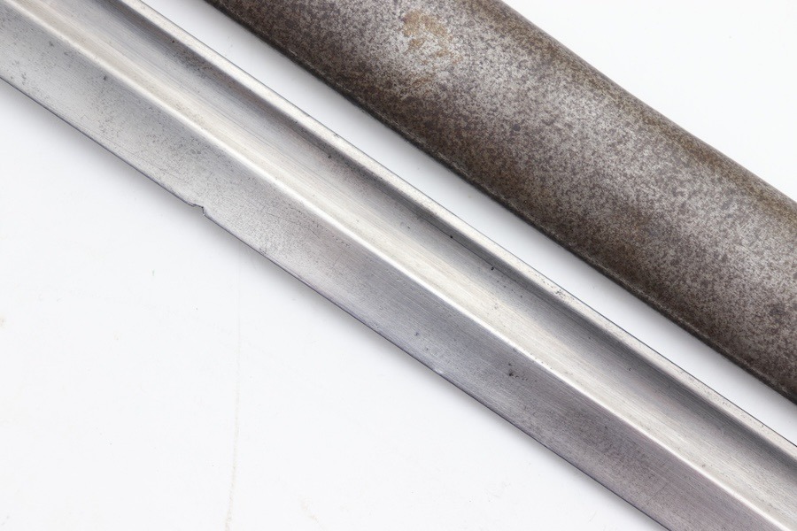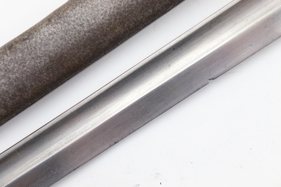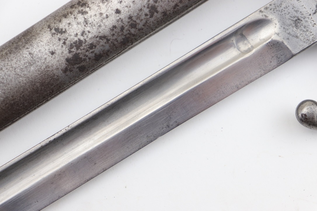 9/24/24 – For sale is an exceptionally rare first pattern 1891 Argentine Mauser bayonet. This bayonet features an intact national crest, a pair of shiny brass grips, and a matching scabbard. Condition-wise, the blade has a light patina throughout with no post-factory sharpening; however, there are a couple of minor chips on the edge. The markings on the ricasso are a little hard to read as they’ve worn down over time, but there is no grinding that is typically seen on these bayonets. The scabbard does not retain any original finish and is left with a natural patina; there is also a hairline crack that spans the length of the scabbard(See Photos). Overall a very scarce bayonet with a few condition issues.