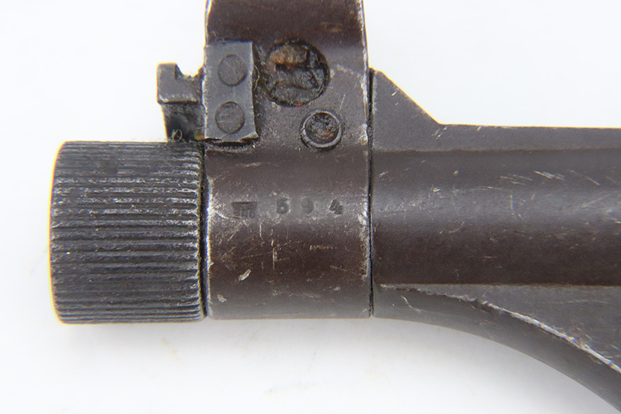 2/29/24 – This is a very rare German MP-38 parts kit as made by Erma for the Nazi military. All numbered parts match. Listing includes the barreled receiver tube, pistol grip, folding stock, bolt, firing pin, bolt carrier, and magazine. Original finish shows some age and patina but is in good condition overall. The bore shows some use as the rifling has smoothed down but no major pitting. Also includes a sling.