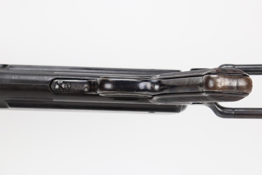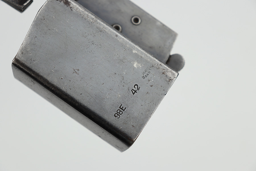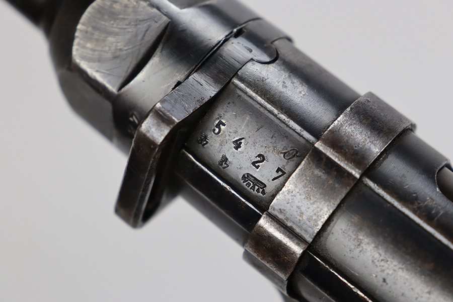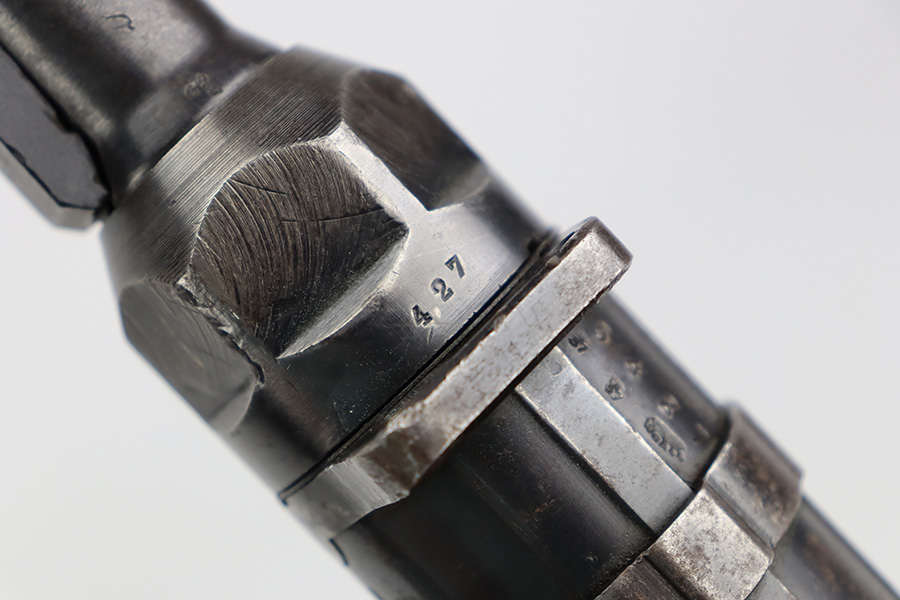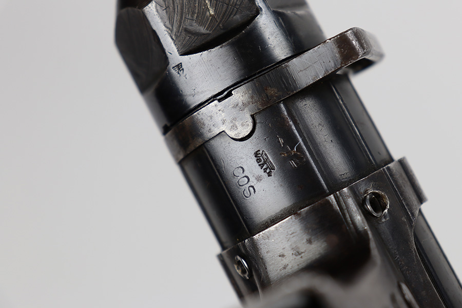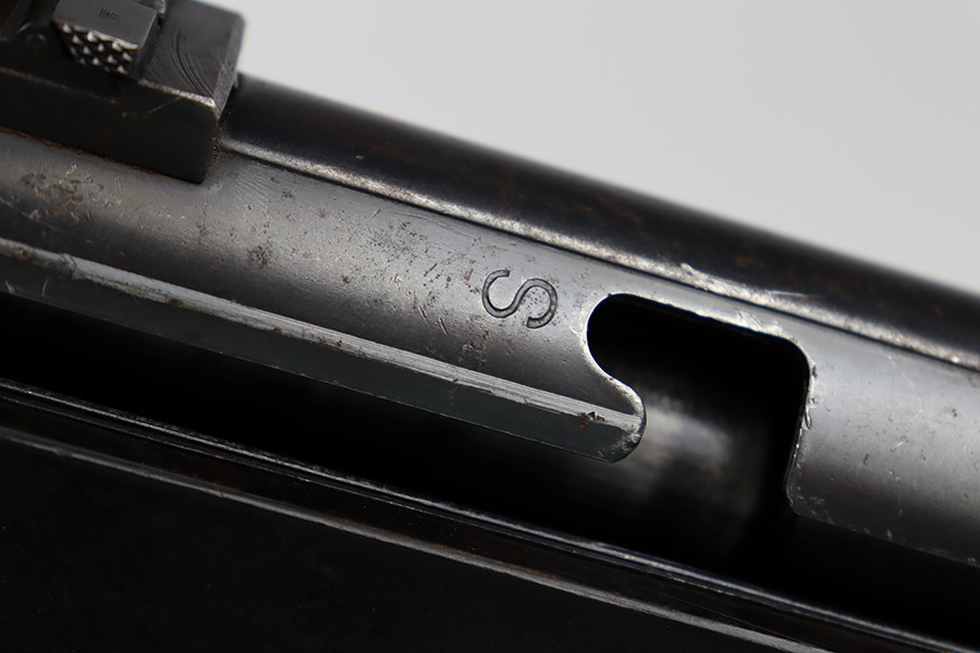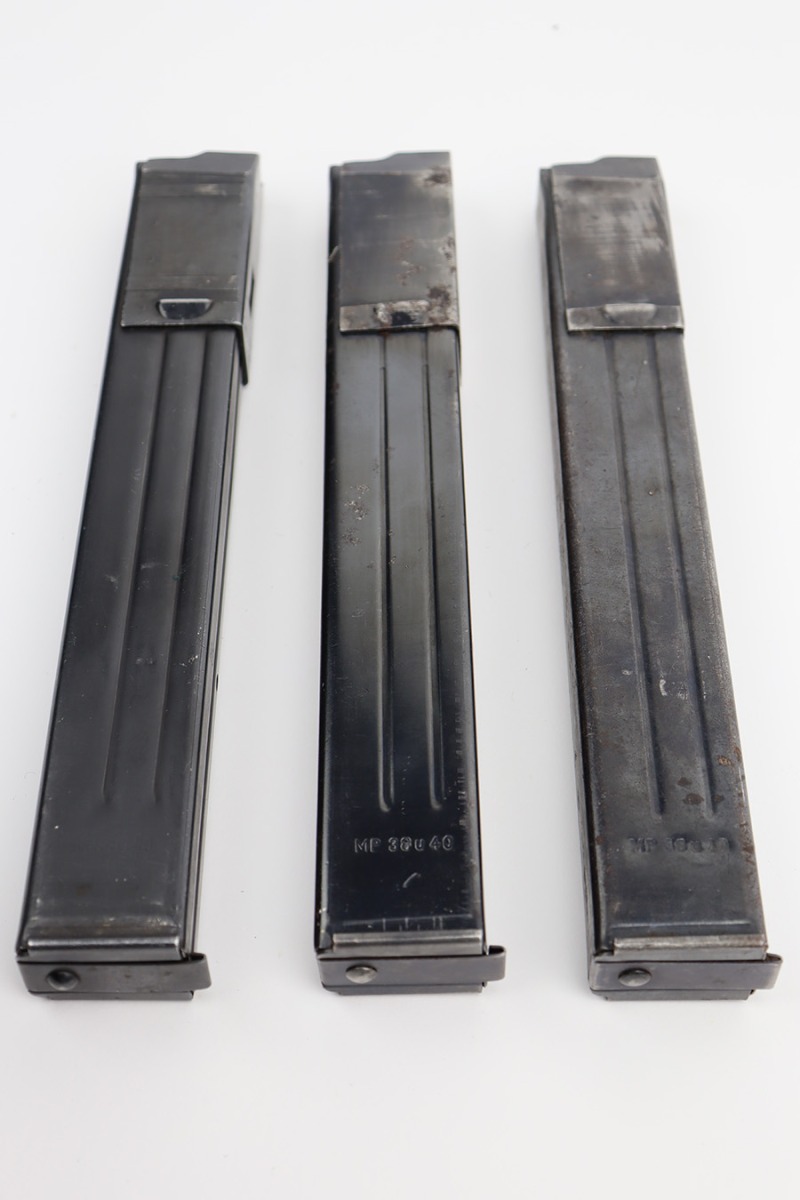8/1/23 – This is an original and matching example of the iconic MP40 submachine gun, as made by Haenel in 1942. The MP-40 was the successor to the MP-38 model. Both were intended to be compact bust fire power weapons especially suited for dismounted vehicle troops but was issued in ever increasing numbers to troops of all kinds. It is slow firing, comfortable to shoot, durable, with readily available parts. This particular example is all matching numbers throughout, including the internals. The only negative is that the barrel or resting bar is a replacement, though this does not impact the functionality of the weapon at all. The original finish is very nice, with thinning on the mag housing and more intermixed on the receiver and barrel but no pitting. Some initials are lightly scratched into the right side of the stock though. WaA254 proofs found all over this one. Shoulder stock employs properly and quite tight when extended. Strong, shiny bore with only minor signs of use. Receiver is ’42 dated with ‘fxo’ maker code. The listing includes a total of three magazines, as well as two original loaders. This weapon is fully transferable on ATF form 3 or form 4 as C&R eligible.