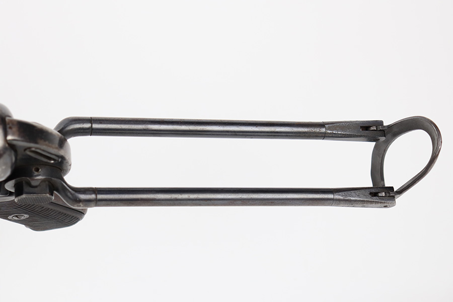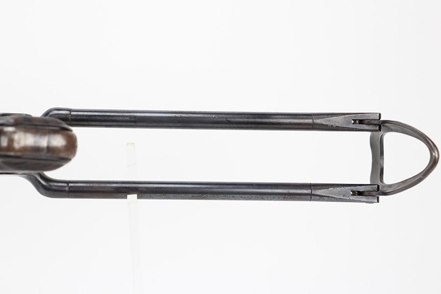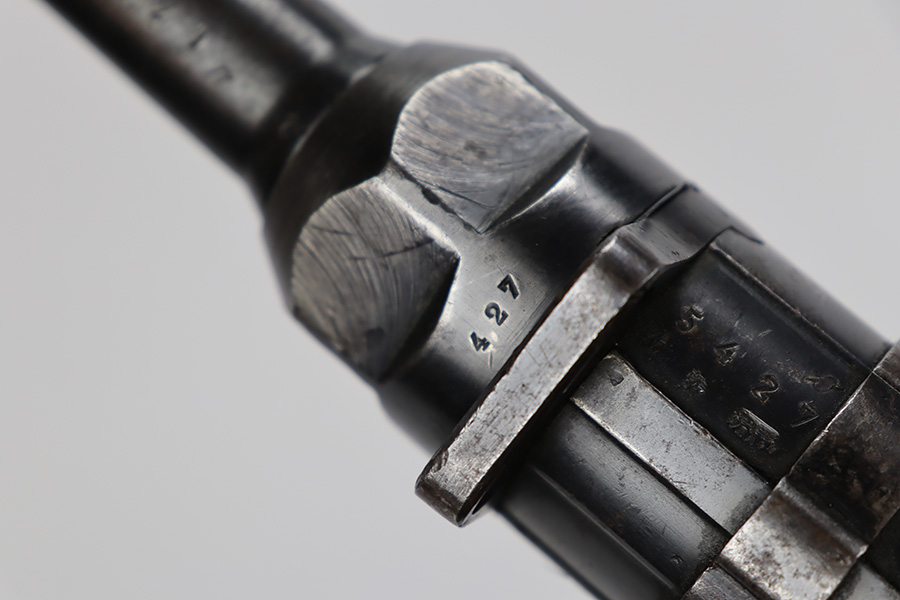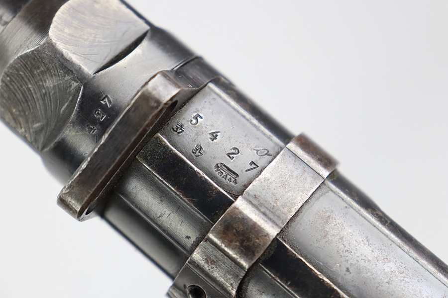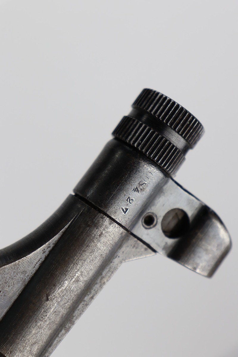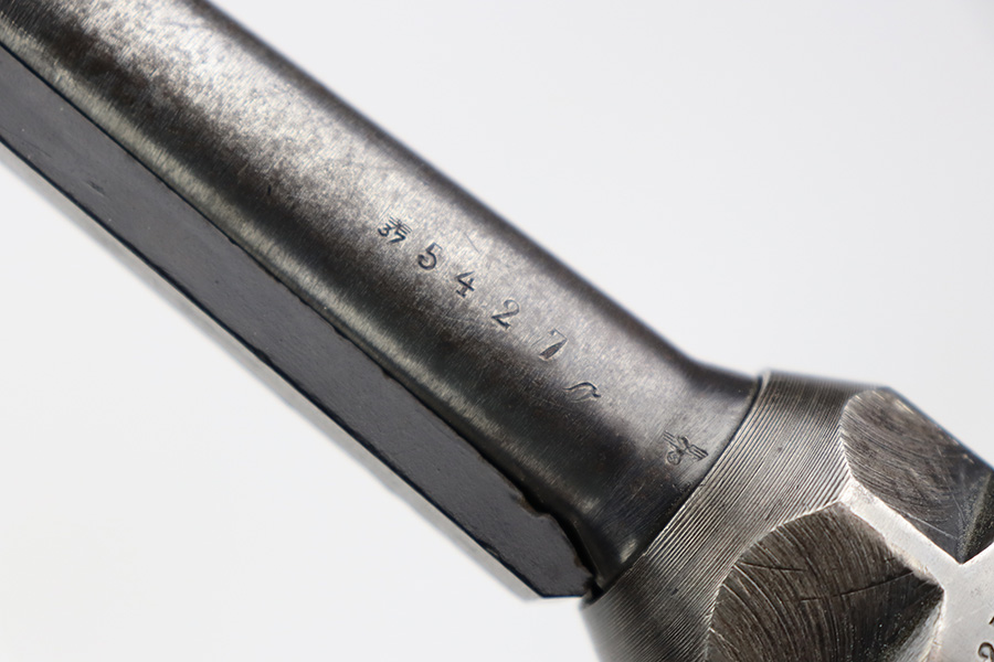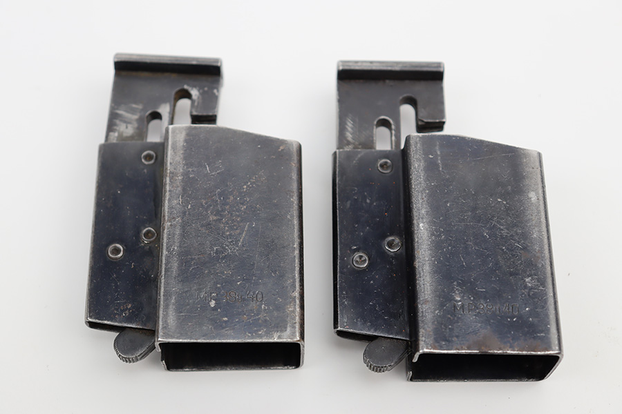 8/1/23 – This is an original and matching example of the iconic MP40 submachine gun, as made by Haenel in 1942. The MP-40 was the successor to the MP-38 model. Both were intended to be compact bust fire power weapons especially suited for dismounted vehicle troops but was issued in ever increasing numbers to troops of all kinds. It is slow firing, comfortable to shoot, durable, with readily available parts. This particular example is all matching numbers throughout, including the internals. The only negative is that the barrel or resting bar is a replacement, though this does not impact the functionality of the weapon at all. The original finish is very nice, with thinning on the mag housing and more intermixed on the receiver and barrel but no pitting. Some initials are lightly scratched into the right side of the stock though. WaA254 proofs found all over this one. Shoulder stock employs properly and quite tight when extended. Strong, shiny bore with only minor signs of use. Receiver is ’42 dated with ‘fxo’ maker code. The listing includes a total of three magazines, as well as two original loaders. This weapon is fully transferable on ATF form 3 or form 4 as C&R eligible.