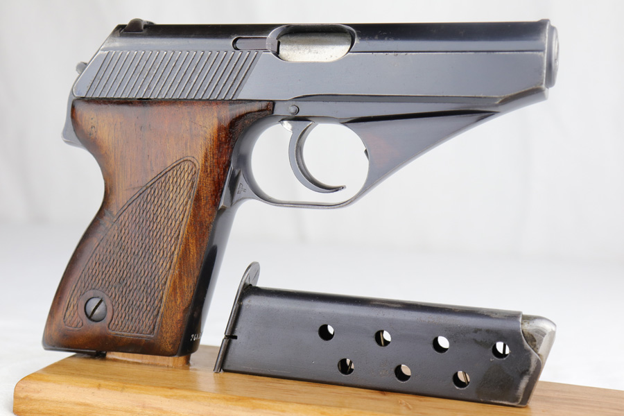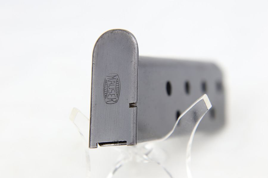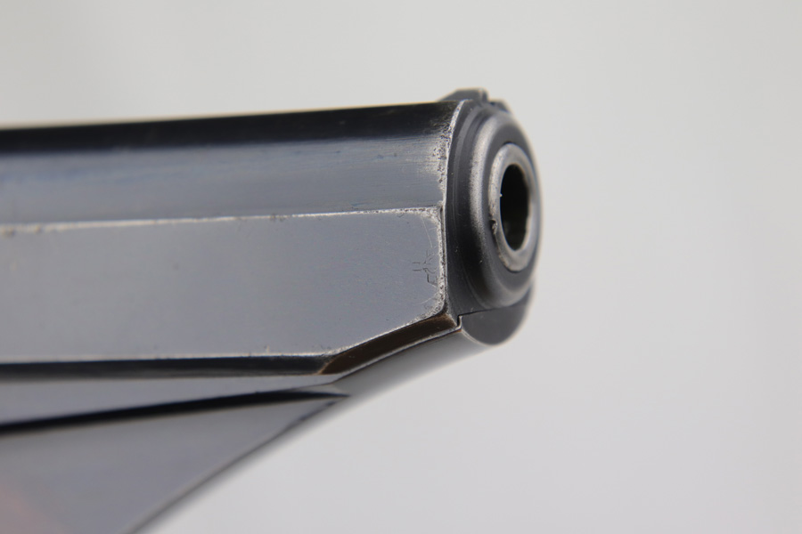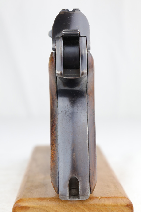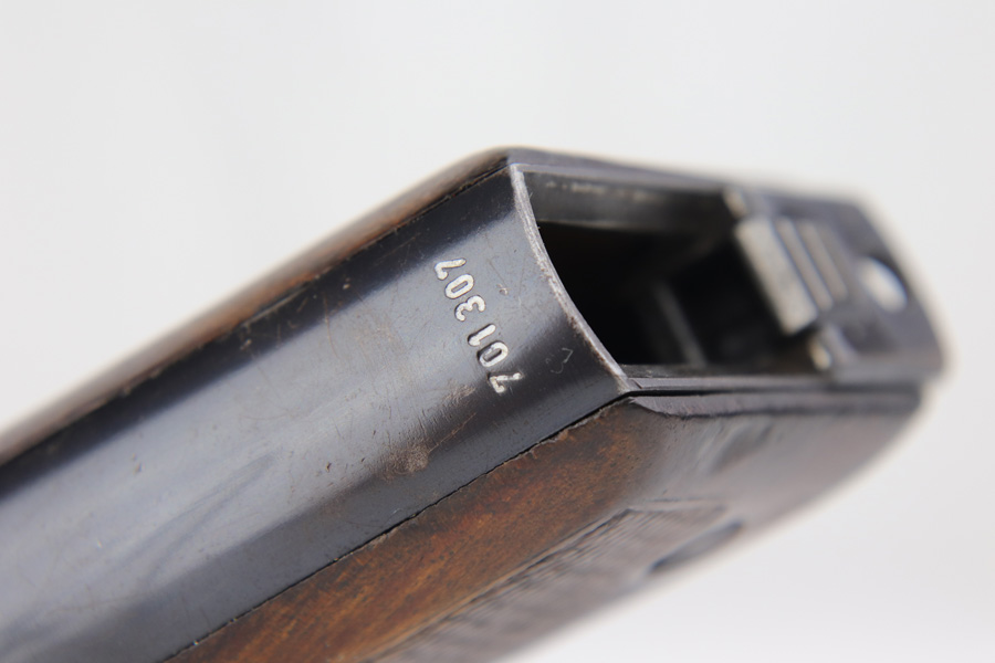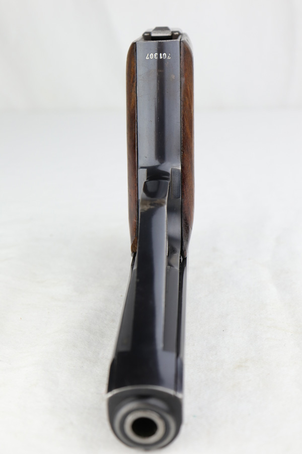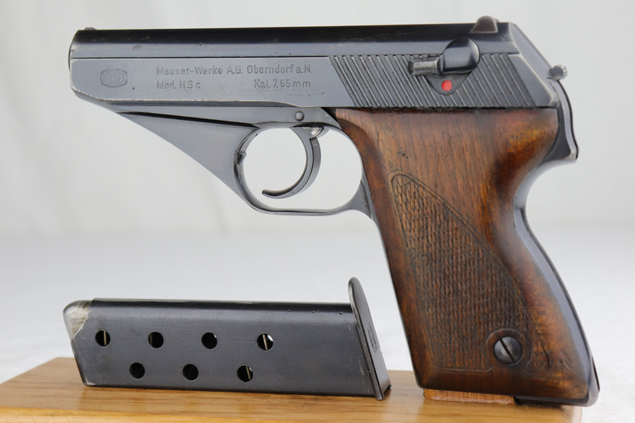 1/7/19 – This is an extremely rare Mauser HSc from 1940. This variation with low grip screw saw only ~700 manufactured commercially, all in 1940 with high-polish finish. This variation represents the first 700 HSc’s manufactured, as the revision to the grip placement on the frame had already been done before production began. This likely means these pistols were already in inventory at the factory and the replacement forgings would have been ordered before the HSc came off the assembly line. This one has about 92-93% blue remaining with the majority of finish loss on the straps, especially the back strap. Some of the high edges also have minor pinpricking. The grips show basic handling wear and a few dings, but the only major flaw is a small chip in the left panel. Bore is shiny with good rifling.