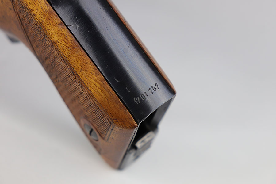 7/8/20 -This is an extremely rare Mauser HSc from 1941. This variation with low grip screw saw only ~700 manufactured commercially, all in 1940 with high-polish finish. This variation represents the first 700 commercial HSc’s manufactured, as the revision to the grip placement on the frame had already been done before production began. This likely means these pistols were already in inventory at the factory and the replacement forgings would have been ordered before the HSc came off the assembly line. This one has minty high-polish blue but was professionally restored by the renowned Gale Morgan. Terrific original grips with just a bit of handling wear on the right panel. Minty bore.