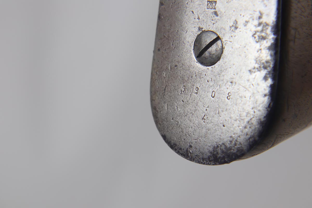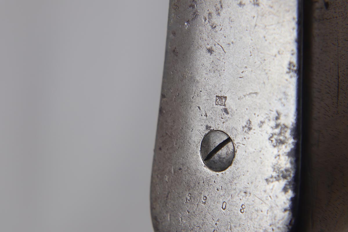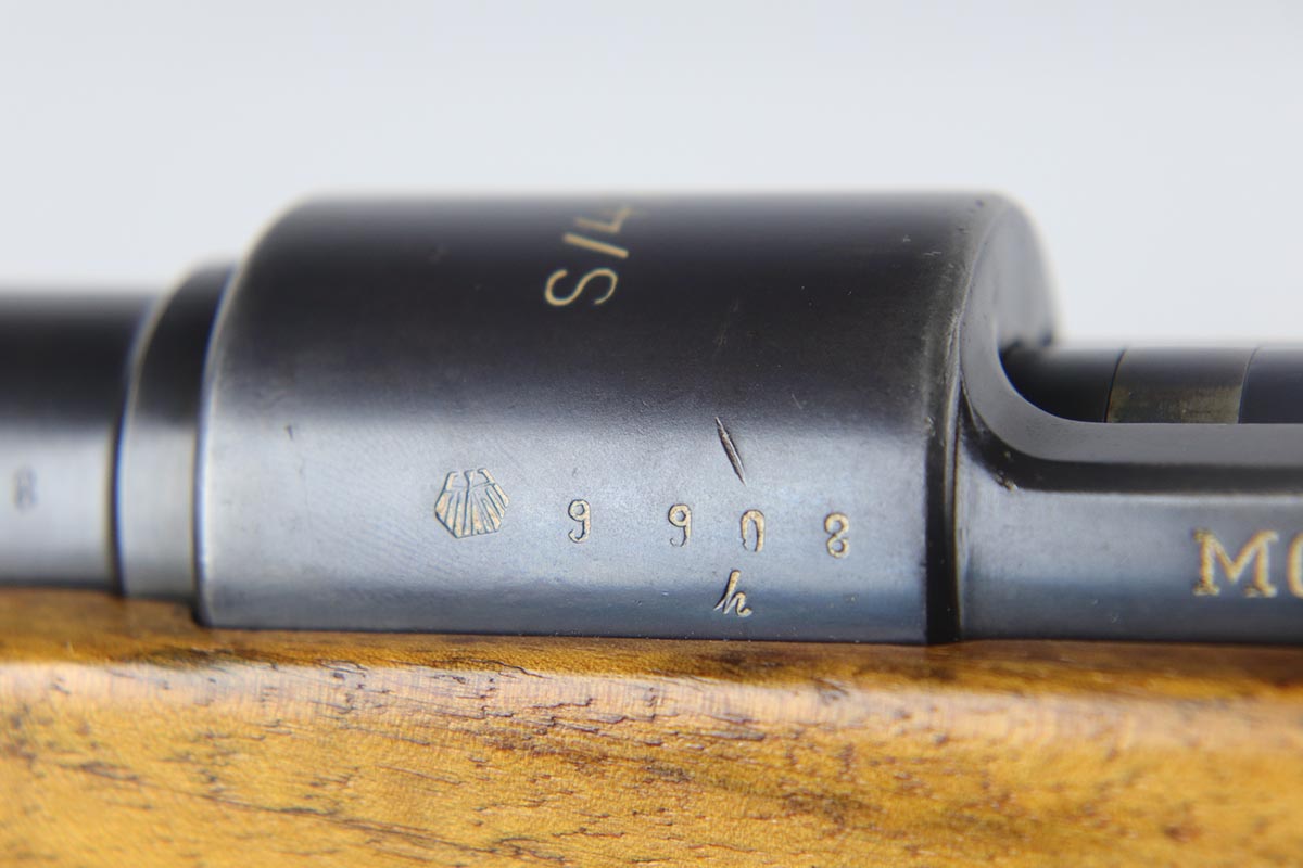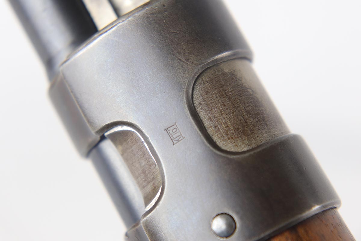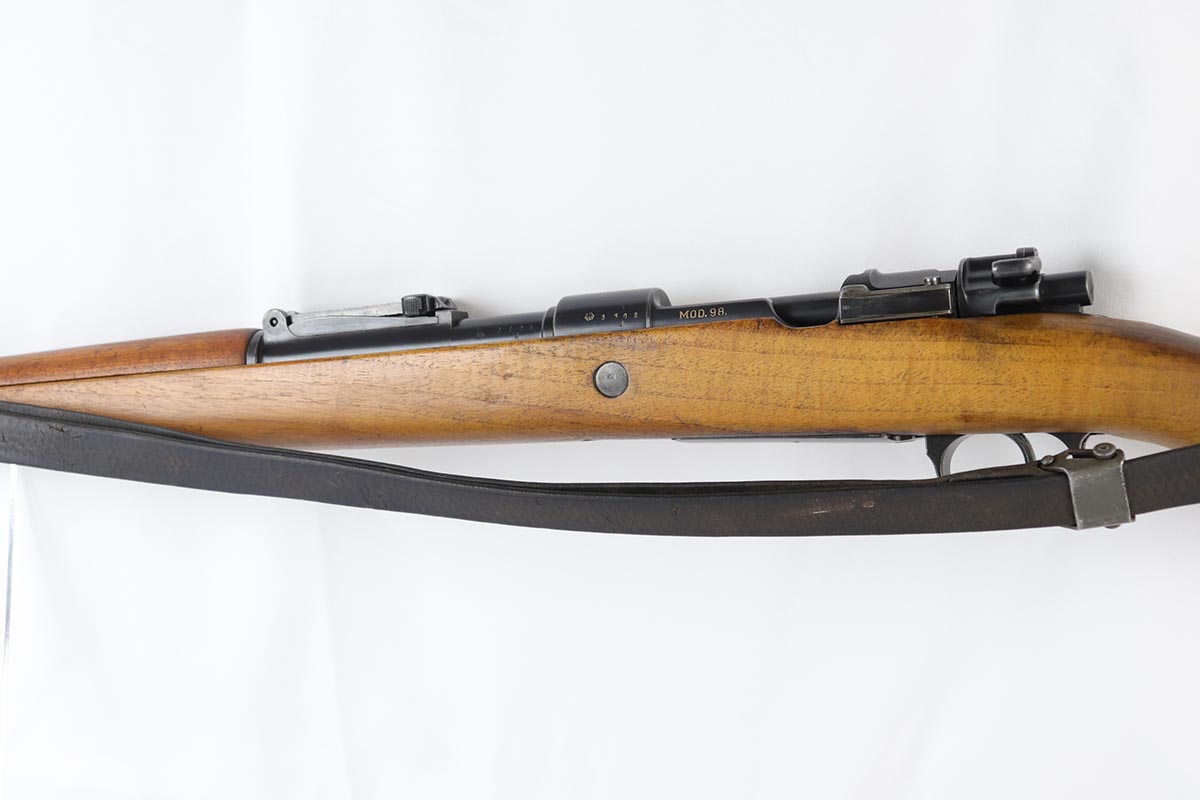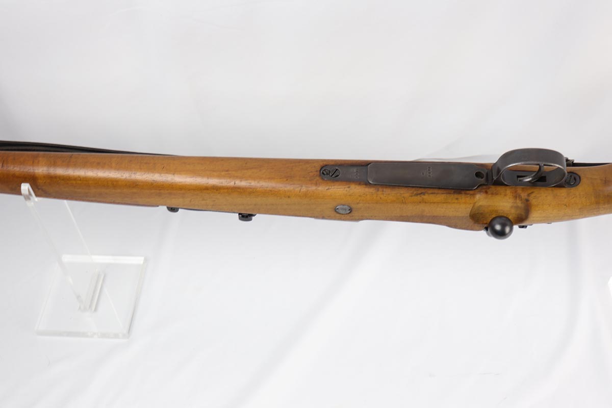 7/17/18 – This is an extremely rare G Date Mauser K98, manufactured in 1935 and featuring all matching numbers and original finish.  Introduced during the early years of the Nazi Party’s dominance of Germany, the code system was intended to obscure the scale and speed of German re-armament, and all correct G Date K98s are seldom available to the collector market.  The original finish rates at 90+% with some minor edge thinning and dulling of the finish, as well as muzzle wear on either side.  The bayo lug and area under the front barrel band are ‘in the white’, a feature of these early rifles that helps to ensure original bluing.  All numbered parts match the receiver, including the stock, hand guard and butt plate.  Loads of early acceptance proofs adorn this rifle as well.  Comes with an original sling and cleaning rod.  Terrifc bore.