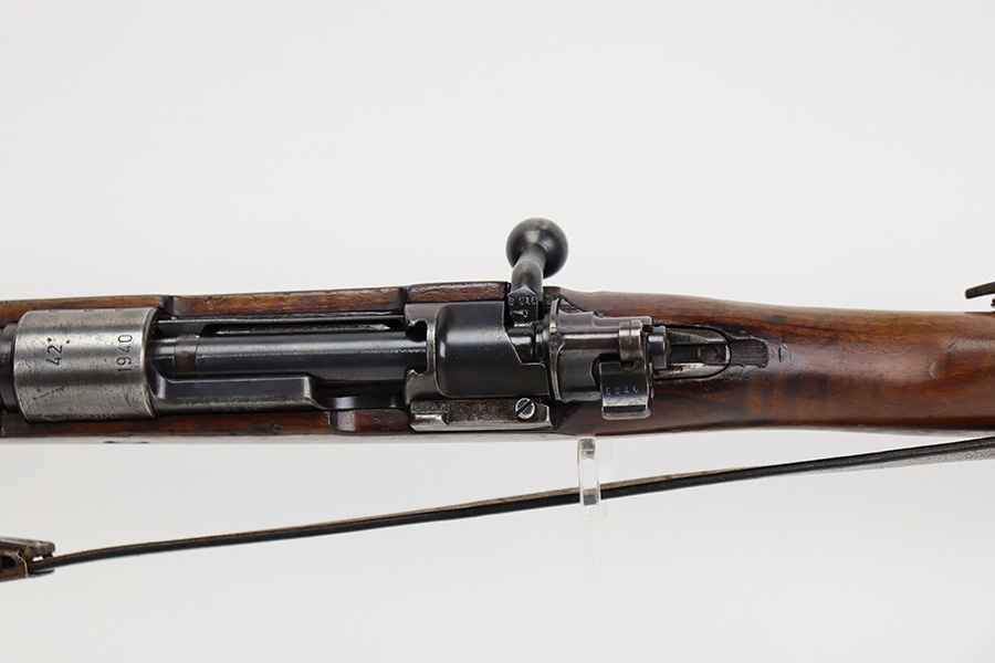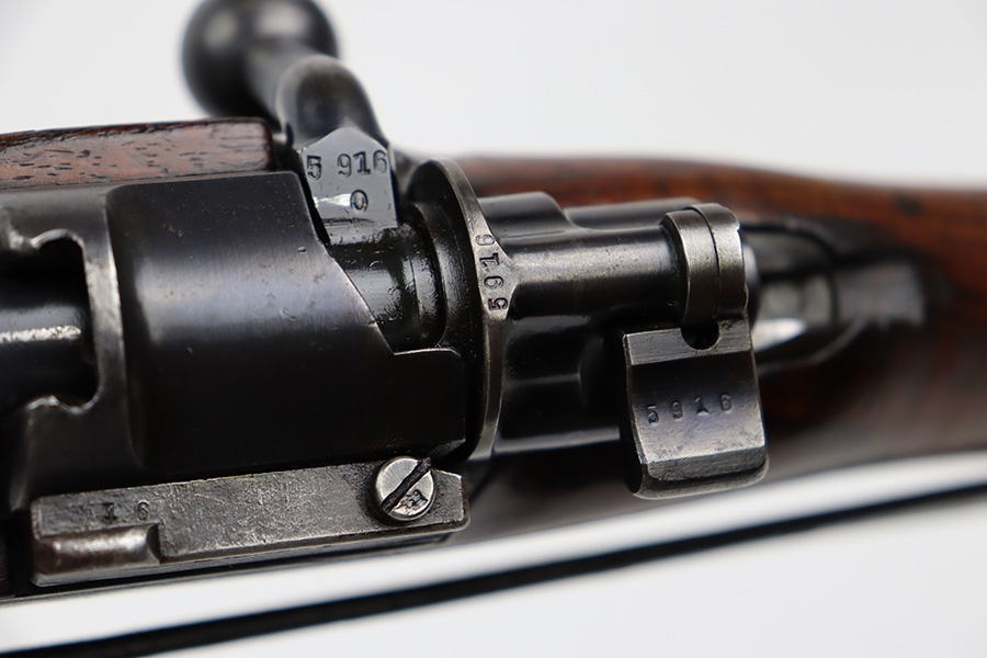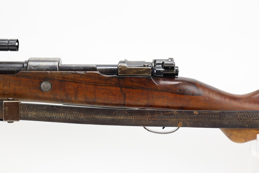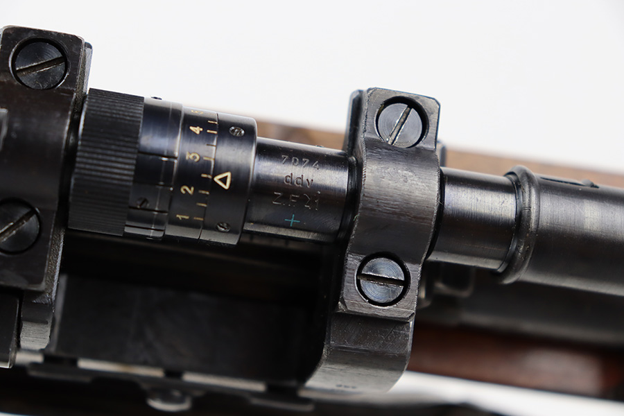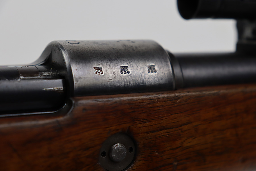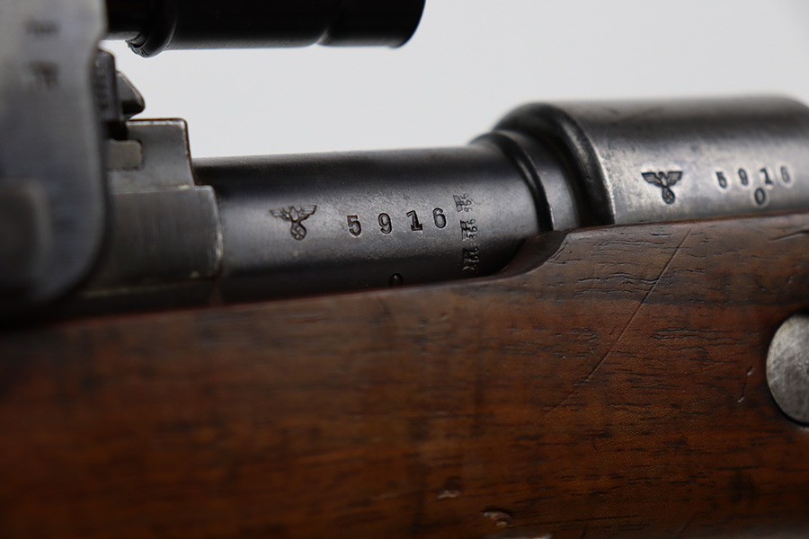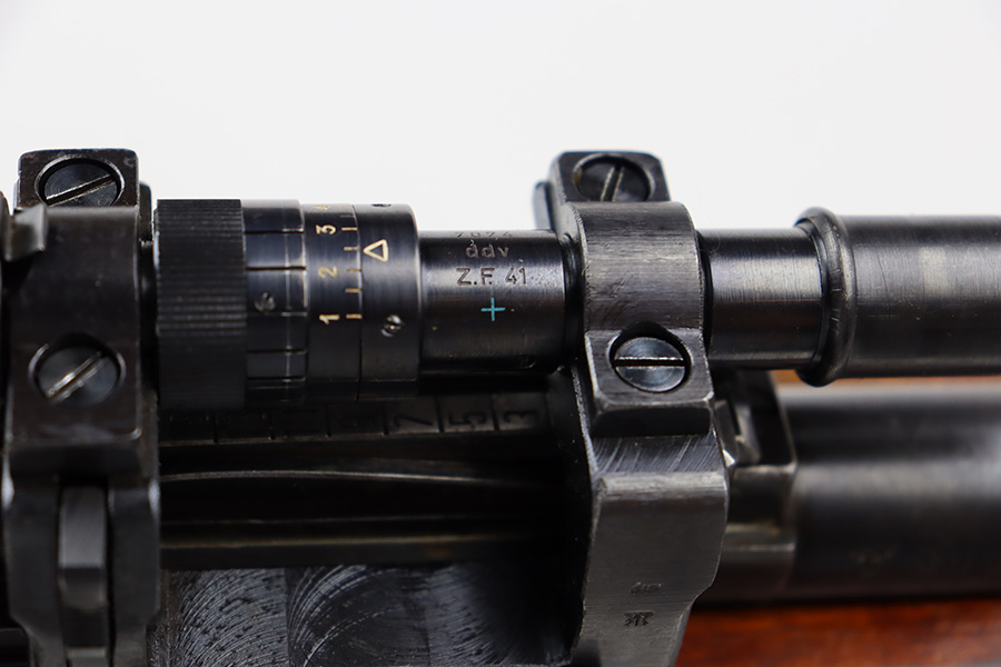3/18/24 – This is a correct, original Nazi Mauser ZF41 sniper rifle that is all matching inside and out and in good condition. Matching numbers down to the original cleaning rod, and screws. Original blue throughout with the majority of the finish loss on top of the receiver. Original Z.F.41 scope is ‘ddv’ marked and has decent optics but they are slightly cloudy. Mount is ‘duv’ marked with E/214 proof. The stock has several dings and gouges but no cracks. It is also ‘L’ marked to indicate Luftwaffe issue. Sharp waffenamts under the wrist and on the right face. Listing includes an original sling. Excellent bore. Small Simpson import mark on right side receiver.