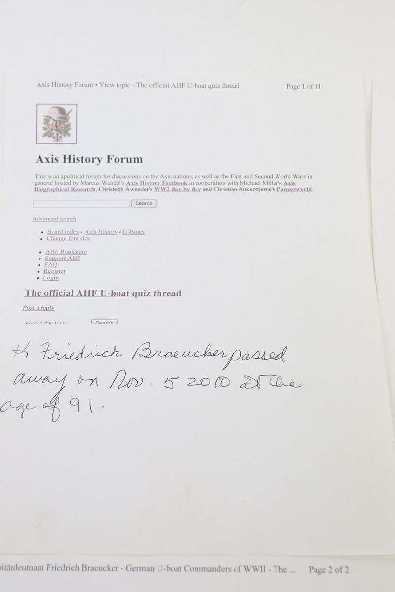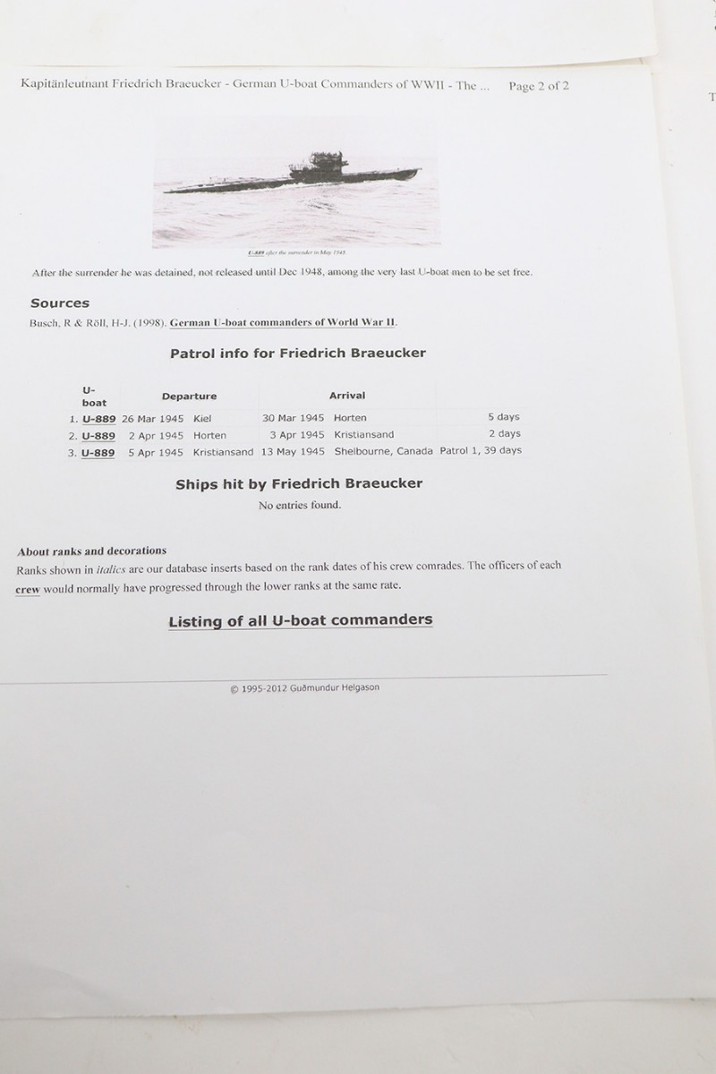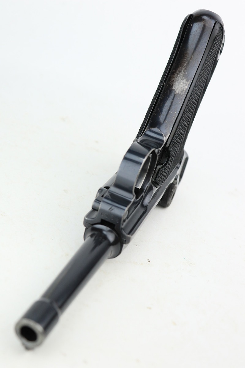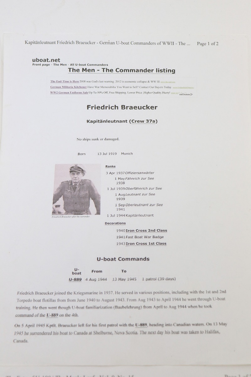6/2/23 – This is a very rare Mauser Luger rig from 1941 that was captured from a U-Boat officer, and was featured in one of our Youtube videos that is linked below. The listing includes a signed statement from Theodore Allen Coney that details how he obtained this pistol specifically from U-889. It also includes the firearm registration he filed in 1949, as well as packets of history on this U-Boat. The pistol is all matching and original, including one of the original magazines. It has a nice profile view but the majority of the bluing loss is on the grip straps. Excellent black widow style grips. The spare magazine is period original but mismatched to this pistol, and it comes in an original ’42 holster that has been cut in a couple of places. Listing also includes a copy of a book about U-Boats by Michael L. Hadley.
