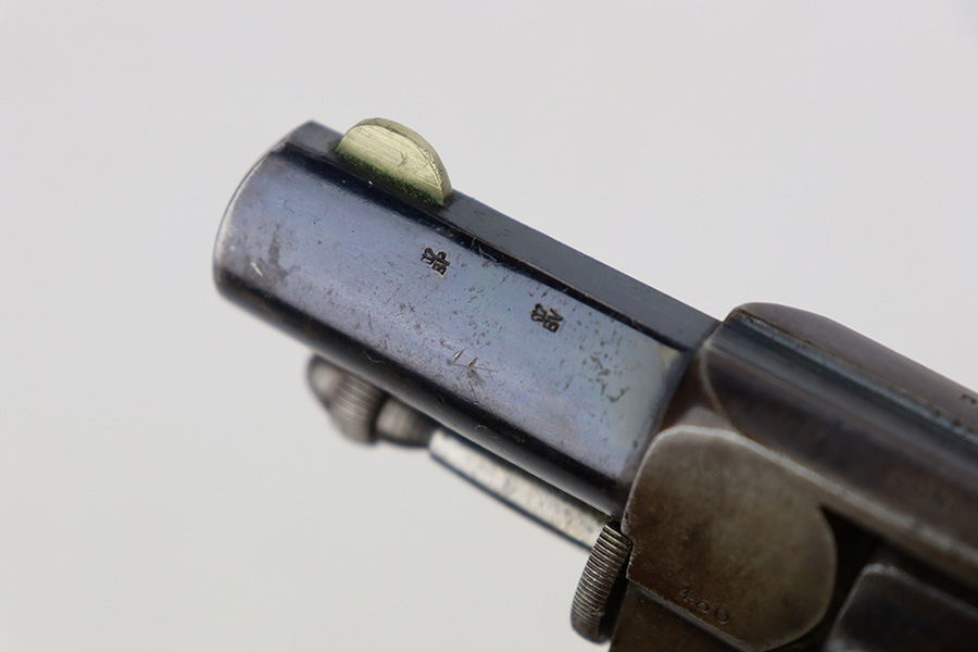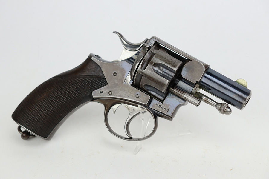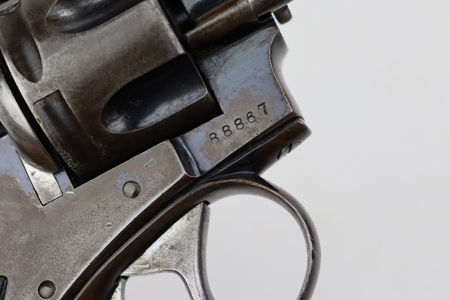 8/18/23 – This is a rare and very cool find: the P. Webley & Son Metropolitan Police revolver, made in 1883. This is an old Scotland Yard issued revolver, with inventory number on the left side of the frame. This likely would’ve been in police service at the time of their efforts to catch Jack the Ripper. The revolver is original, with notable wear on the grip frame, sides of receiver and cylinder. Nice bluing on the barrel, with an excellent bore. Original one-piece wood grip with handling wear but no cracks. Antique so no licensing required.