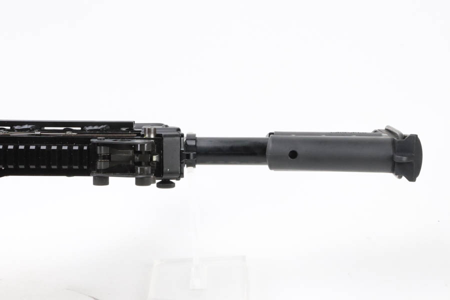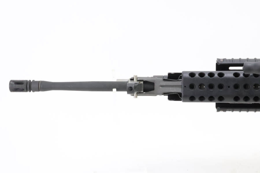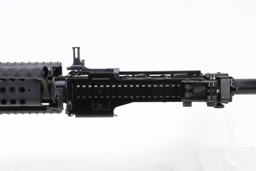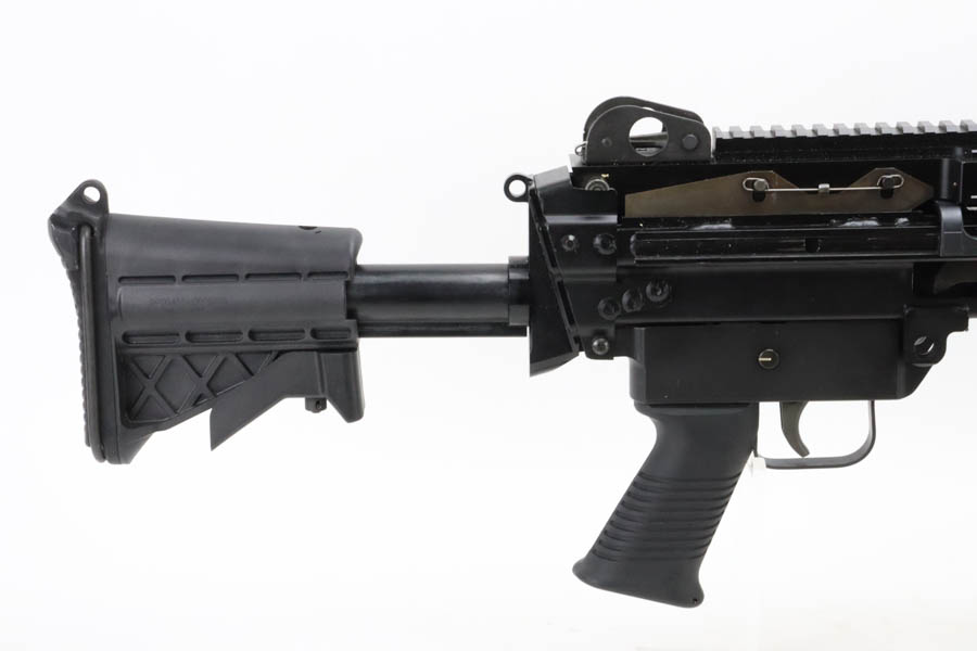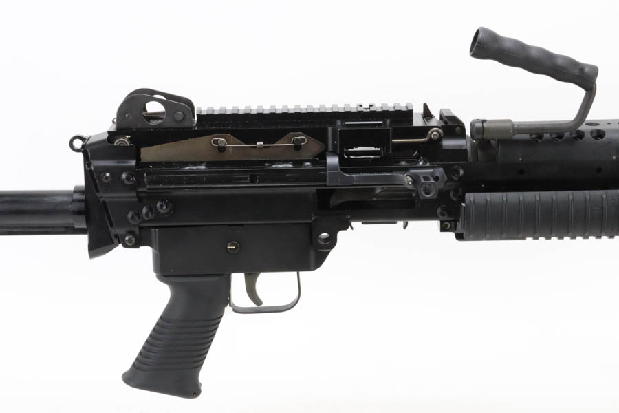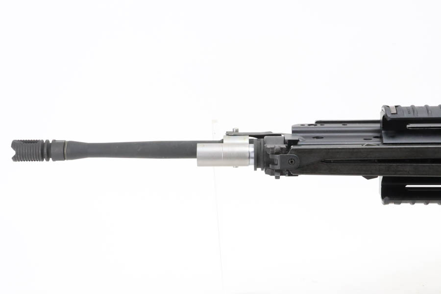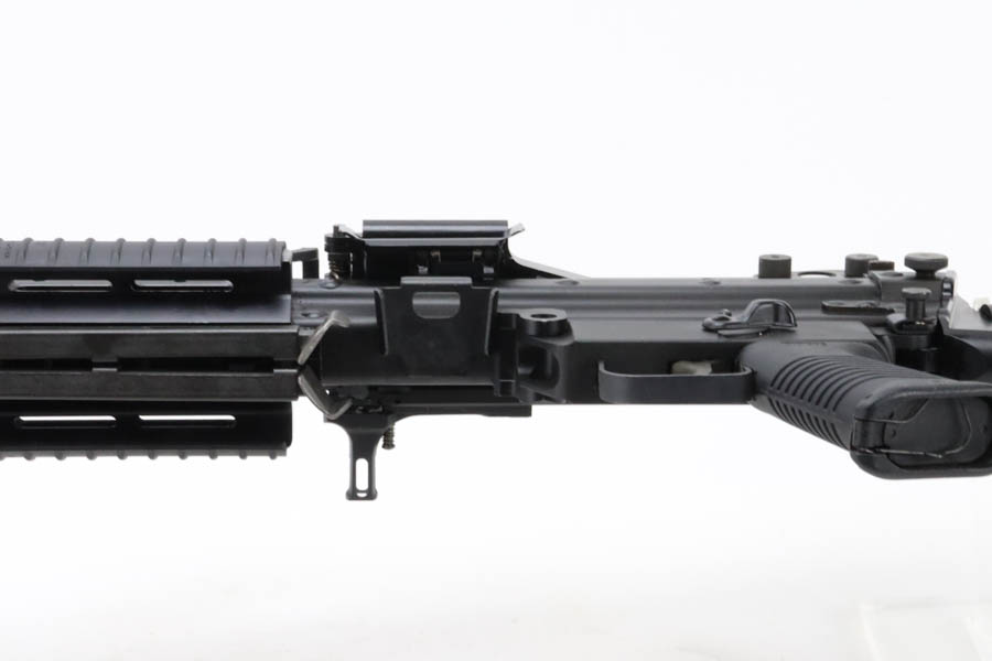 10/25/2024 – For sale is a Mk.46 Semi Auto rifle made by Machine Gun Armory. The Mk.46 is a lightweight variant used by USSOCOM of the M249 SAW. This example is in excellent condition overall with a nice deep finish throughout the metal. The receiver on the left side is stamped “US Machine Gun Armory” and the model name and serial. The top cover has “19200 ASSY 12556986 MFR 72URS” on the left side. The rifle has been converted to semi auto and the bolt does not hold open and has a very stiff spring. The bore is very bright with great rifling. The spare barrels are also in great condition with great bores and sharp rifling. The one barrel comes with an aftermarket brake. Comes with the armorer’s kit, which has some spares for small parts that may break or deteriorate over time. Also includes the disintegrating links for use with this rifle.
