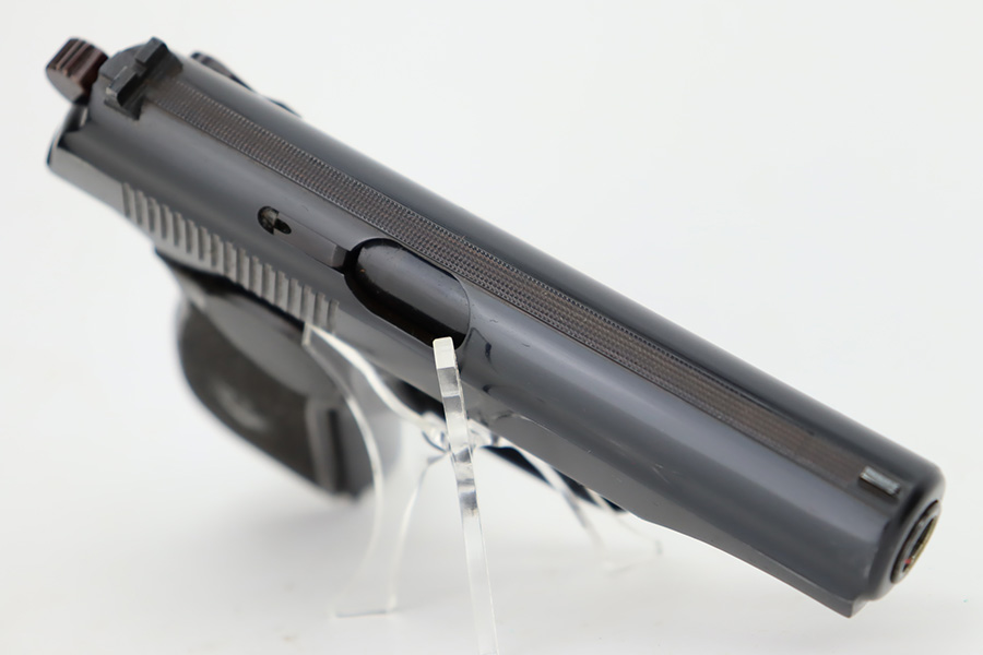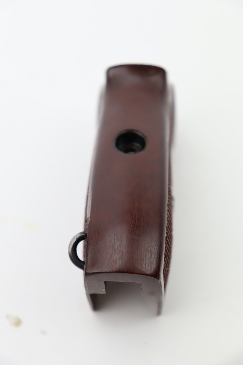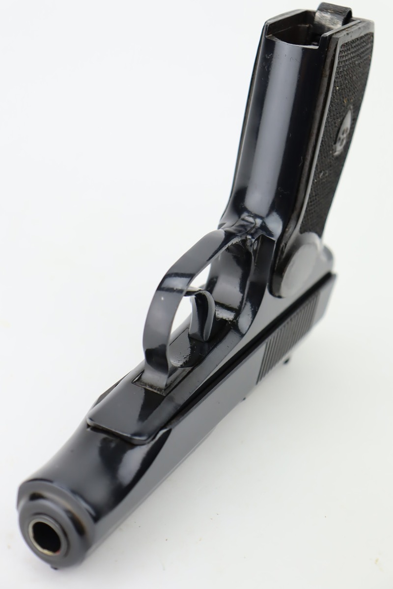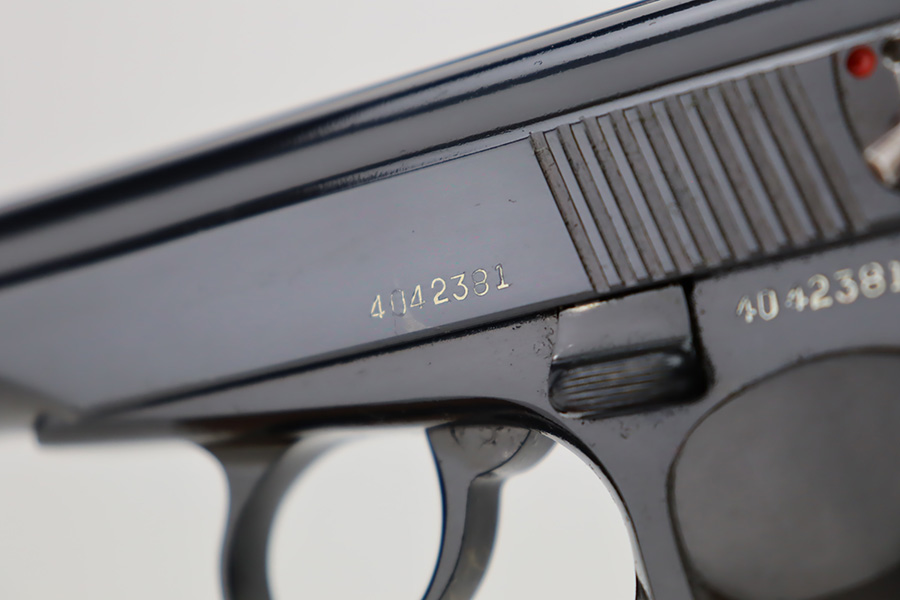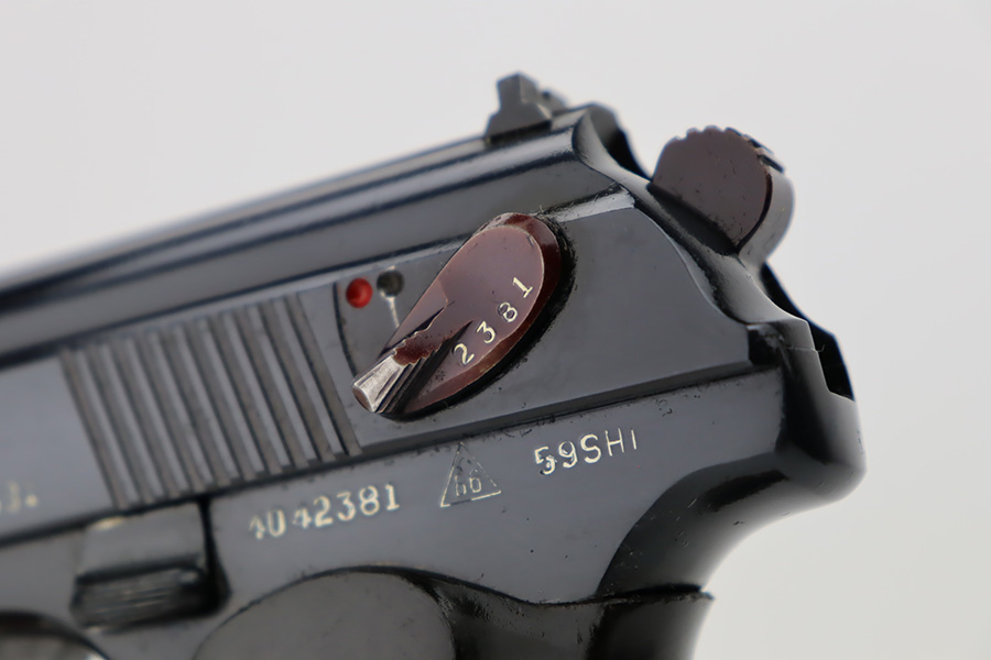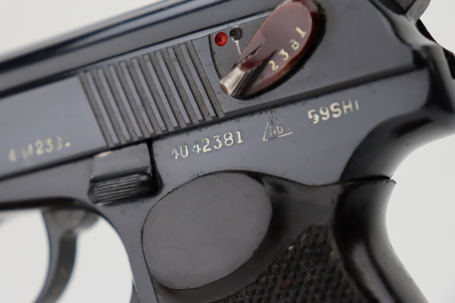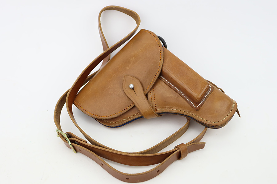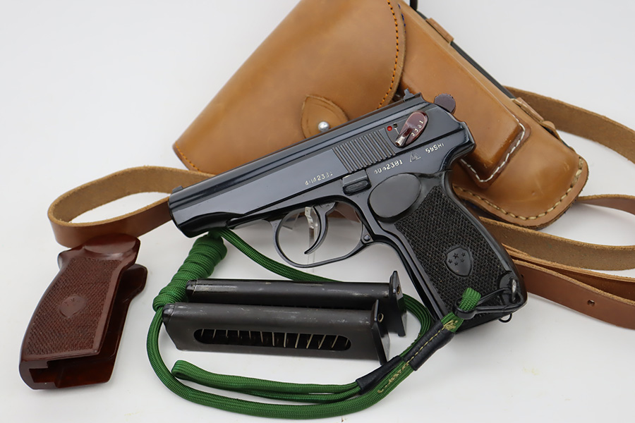 10/13/23 – This is a super rare Chinese military version of the Russian Makarov pistol, in mint, original condition. Very few of these guns without import markings are here in the states, as they were brought into the country as Vietnam souvenirs by the returning GIs. This is a rare Chinese “internal security” procurement model, as evidenced by a Shield emblem with five stars on its grip. This listing also includes both grip variations, with the black example being especially difficult to find. The gun is complete with two original matching mags. Stamped with 59SHI Chinese factory symbol on the left side. Minty bore and grips. Listing also includes an excellent leather shoulder holster.