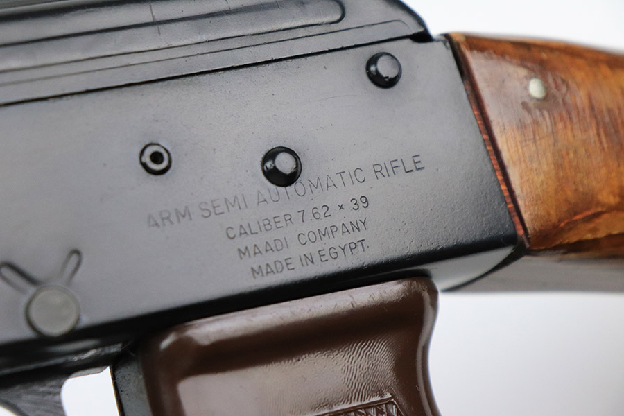 12/1/22 – This is a very rare and desirable Egyptian Maadi ARM in mint, original condition. These are near identical copies of the Russian AKM, though in semi-auto, and it’s estimated that fewer than 2,000 were brought into the states before importation ceased. Designated as the ‘ARM’, a semi-auto only version of the AKM was introduced to the American public in 1982. The gun is all correct, down to the laminated wood handguards and buttstock. Rear sights are gradated to 1000 meters and all exterior metal is finish with baked on black enamel over phosphate. The gun shows only the slightest sign of handling wear. The bore is mint.