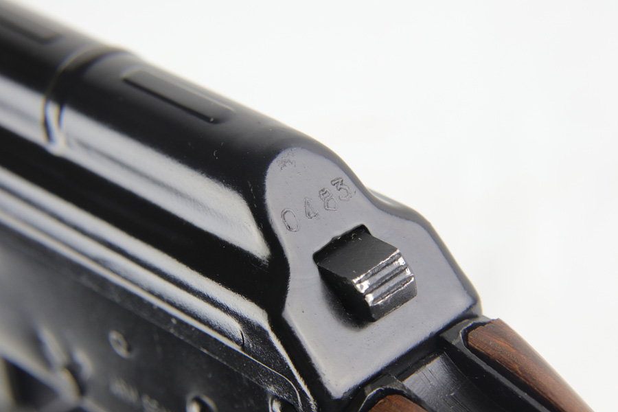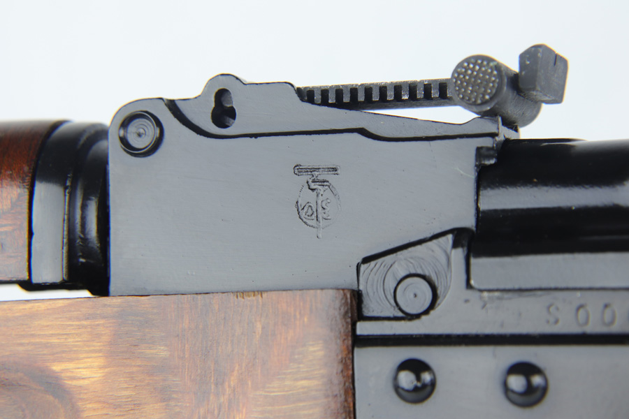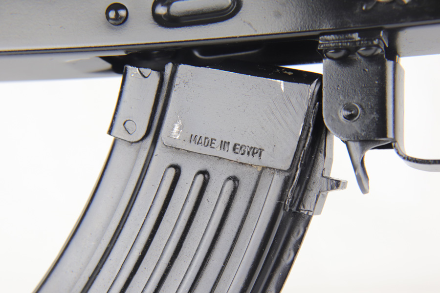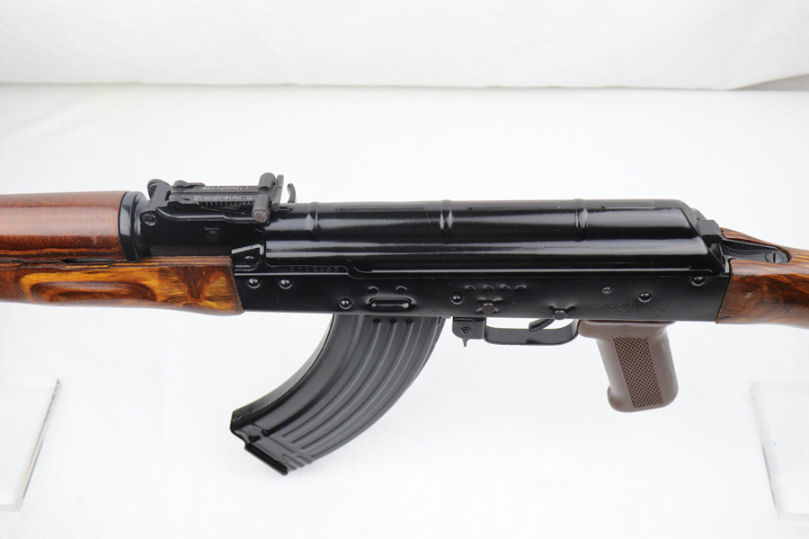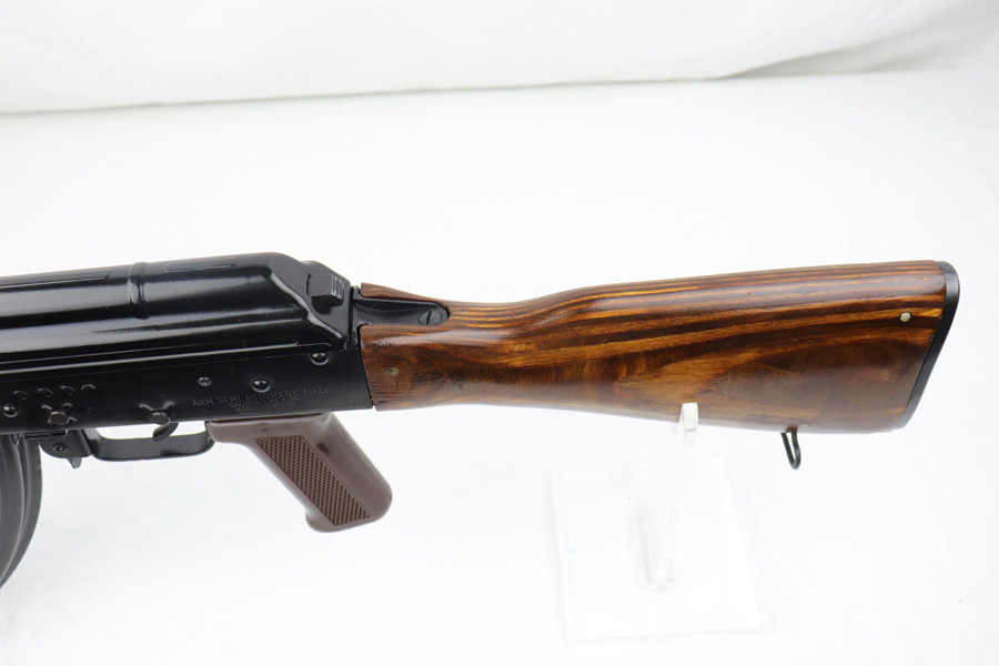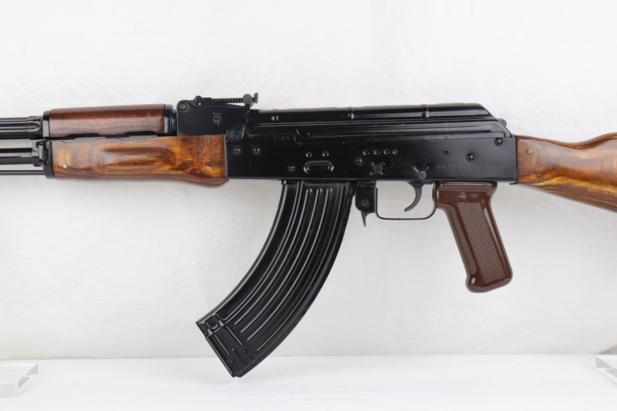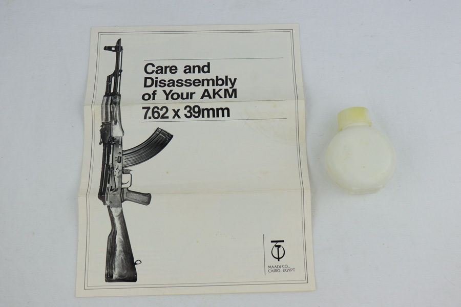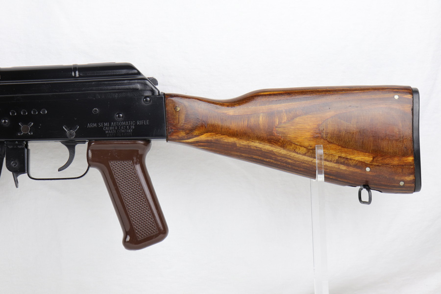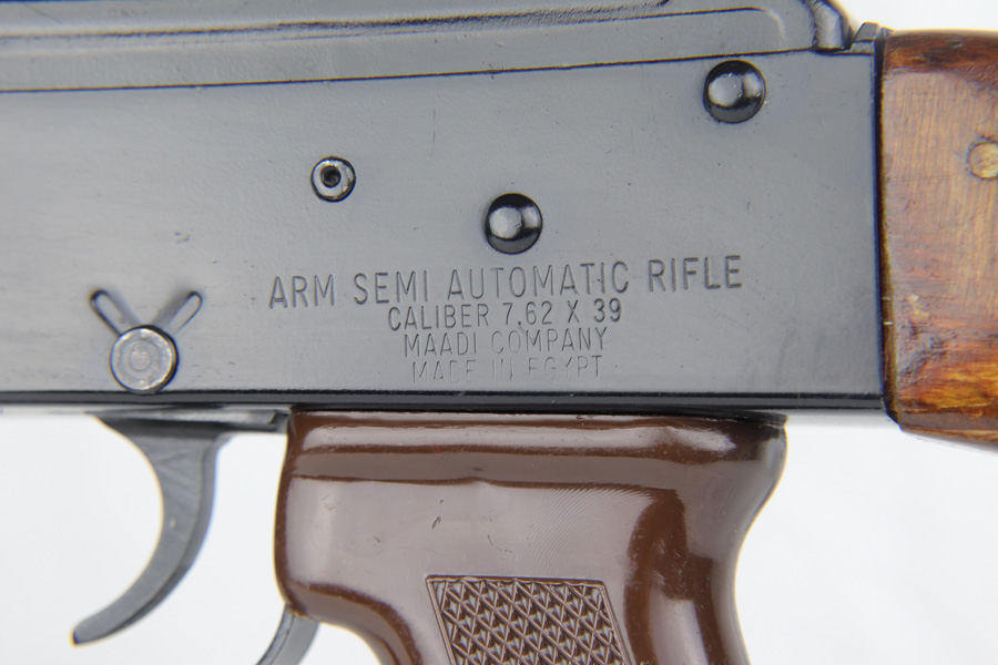 1/22/19 – This is a very rare and desirable Egyptian Maadi ARM in mint, original condition, accompanied by its original box. These are near identical copies of the Russian AKM, though in semi-auto, and it’s estimated that fewer than 2,000 were brought into the states before importation ceased. Designated as the ‘ARM’, a semi-auto only version of the AKM was introduced to the American public in 1982 by the US division of Steyr-Daimler-Punch. The gun is all correct, down to the laminated wood handguards and buttstock. Rear sights are gradated to 1000 meters, chambers and bores are hard chromed, and all exterior metal is finish with baked on black enamel over phosphate. The gun shows only the slightest sign of handling wear, though the box is fairly beat up. The box appears to have been numbered to the gun as the last two digits match, but some of that numbered has been ripped away. Comes with cleaning rod and manual but no bayonet or sling. FFL required.