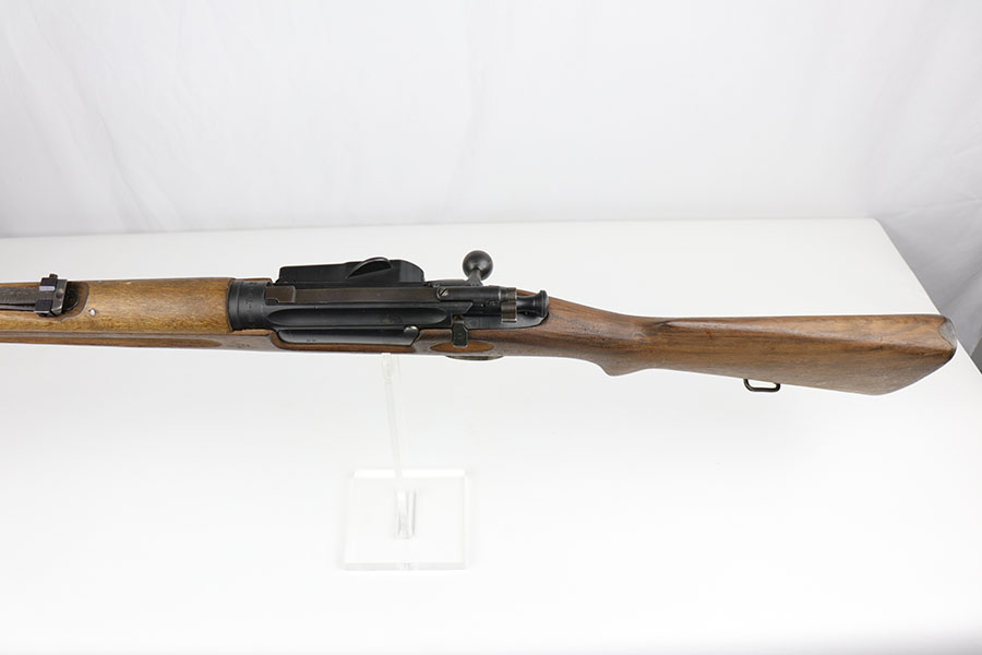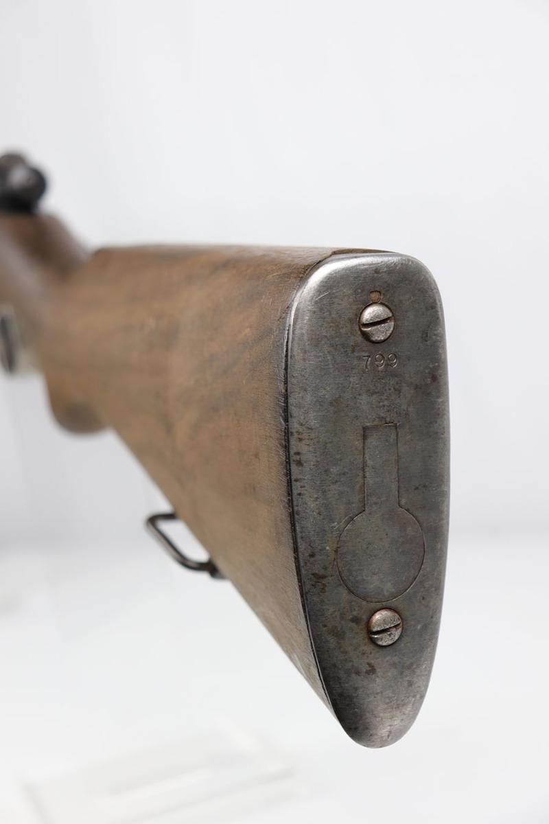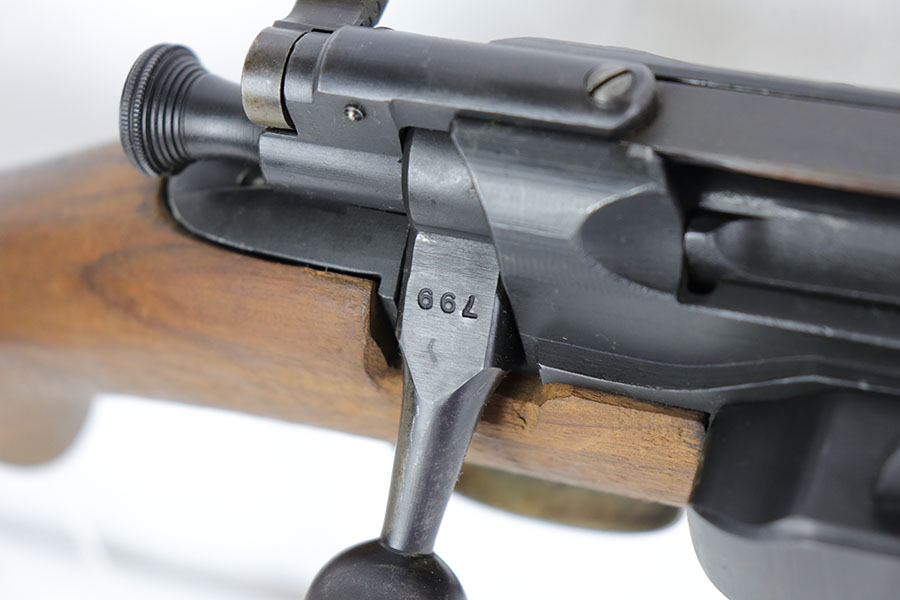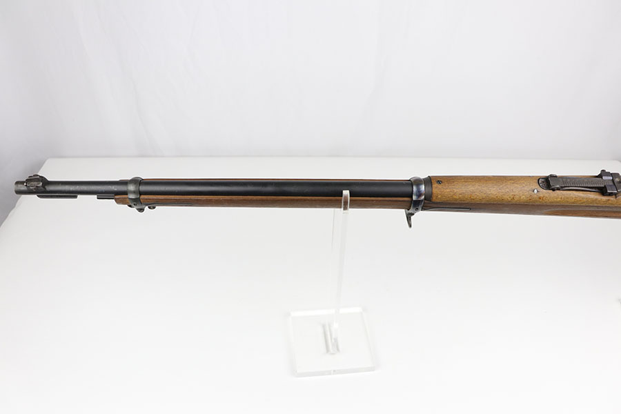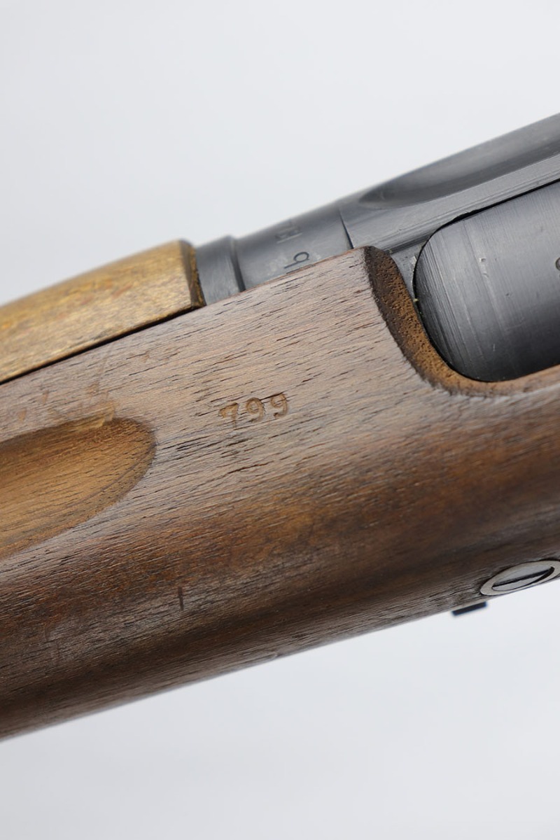 3/2/20 – This is an extremely rare, and beautifully mint condition Krag rifle that was produced after nazi occupation of Norway in 1943. Between 1943 and 1944 only about 3,000 of these were manufactured under German occupation. This was due to the lack of “enthusiasm” from the workers in the Norwegian krag factory after the nazi invasion. This rifle has a 3 digit serial number, “799” and is in mint condition. The rifle is all matching, including bolt, stock, butt plate, and magazine assembly. The rifle is also interestingly NOT a carbine. Most we found online offered in the past were carbines, where this has a 29 inch barrel and 50 inches in length overall. The metal is beautiful condition with minimal finish loss, yet still bares the characteristics of the nazi krag rifles with rough machine marks. The wood is equally minty with proper waffen proof stamp on the right side near the lower portion of the magazine. The only wear worth noting is on the trigger guard, but even this is minor wear. The bore is excellent with some minor residue, which likely can be cleaned without issue (9/10 overall on the bore). Fully functional and an excellent piece of history.