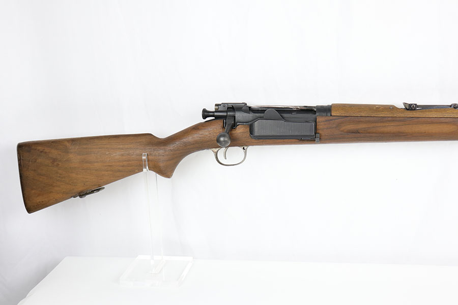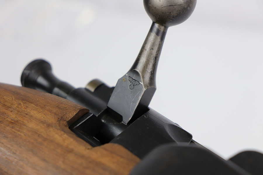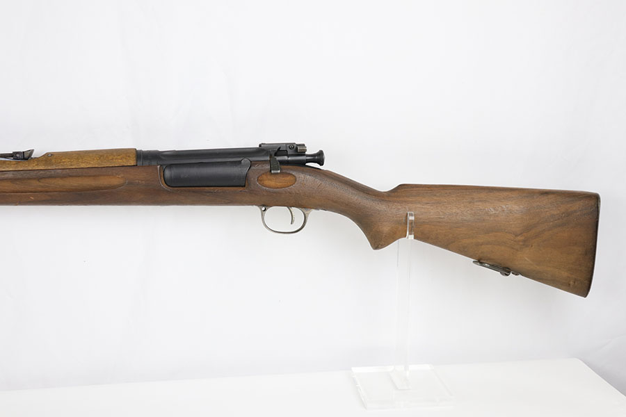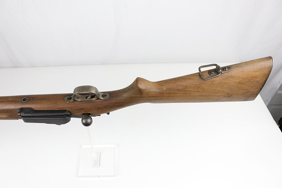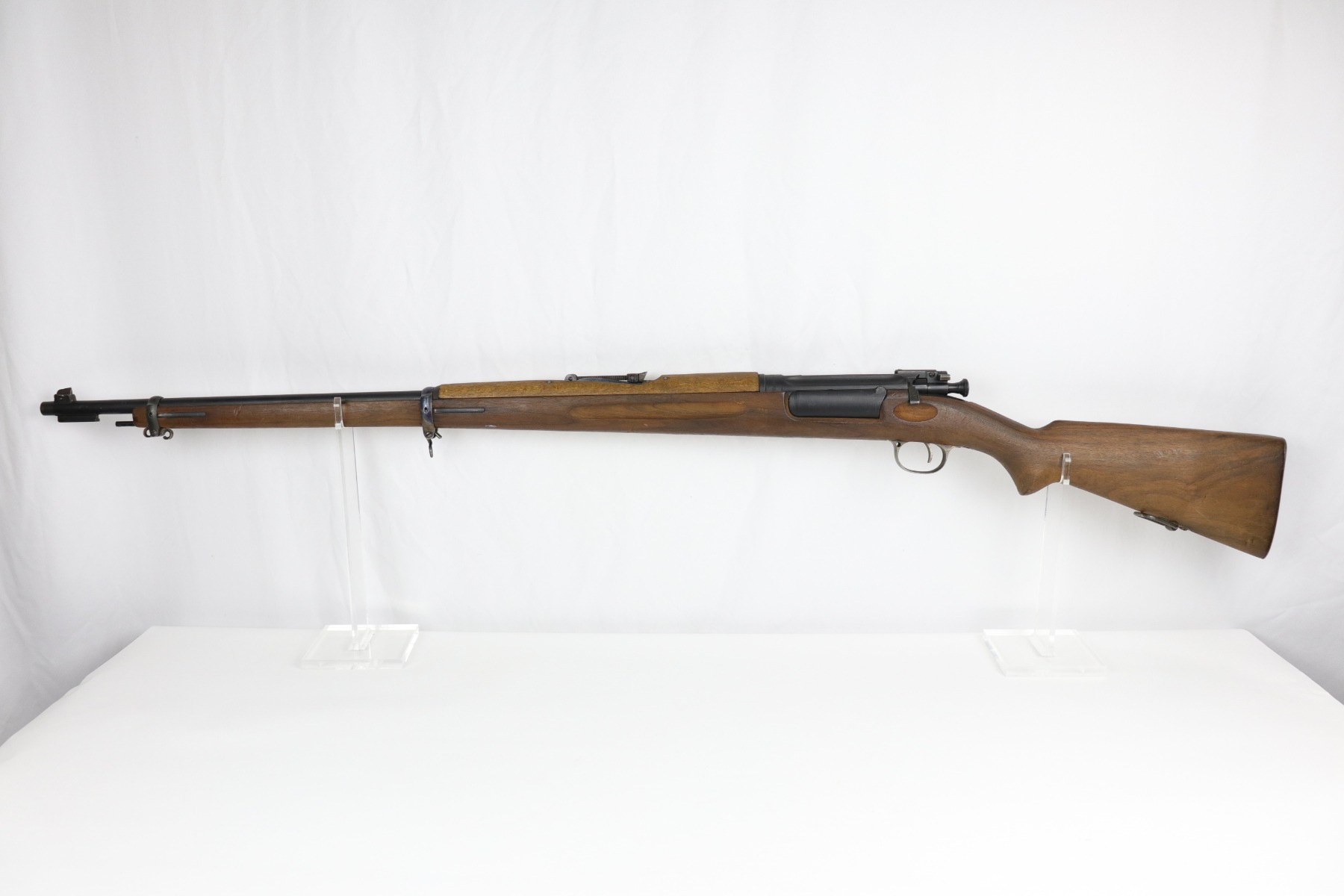 3/2/20 – This is an extremely rare, and beautifully mint condition Krag rifle that was produced after nazi occupation of Norway in 1943. Between 1943 and 1944 only about 3,000 of these were manufactured under German occupation. This was due to the lack of “enthusiasm” from the workers in the Norwegian krag factory after the nazi invasion. This rifle has a 3 digit serial number, “799” and is in mint condition. The rifle is all matching, including bolt, stock, butt plate, and magazine assembly. The rifle is also interestingly NOT a carbine. Most we found online offered in the past were carbines, where this has a 29 inch barrel and 50 inches in length overall. The metal is beautiful condition with minimal finish loss, yet still bares the characteristics of the nazi krag rifles with rough machine marks. The wood is equally minty with proper waffen proof stamp on the right side near the lower portion of the magazine. The only wear worth noting is on the trigger guard, but even this is minor wear. The bore is excellent with some minor residue, which likely can be cleaned without issue (9/10 overall on the bore). Fully functional and an excellent piece of history.