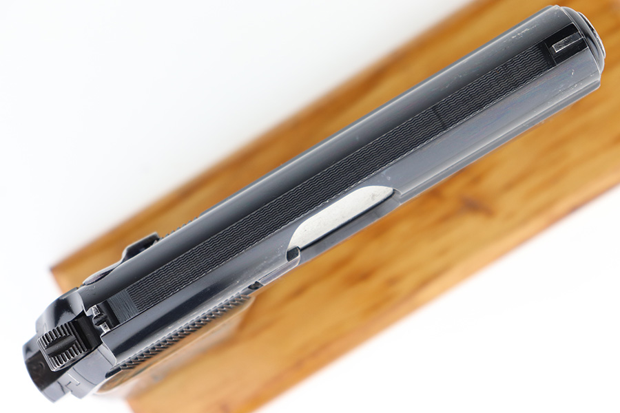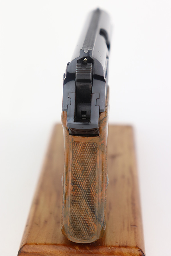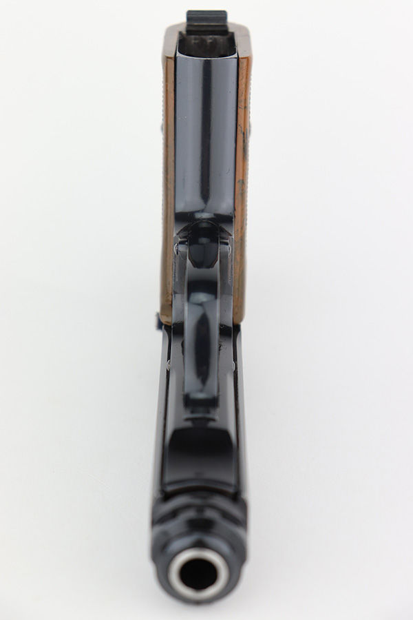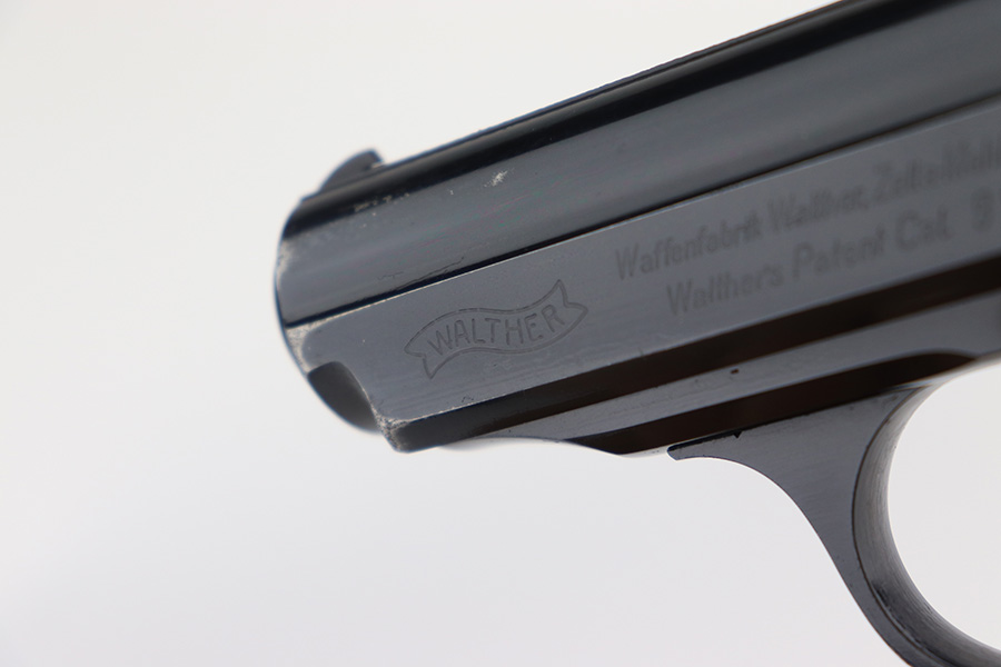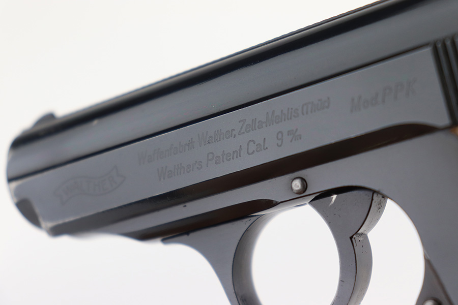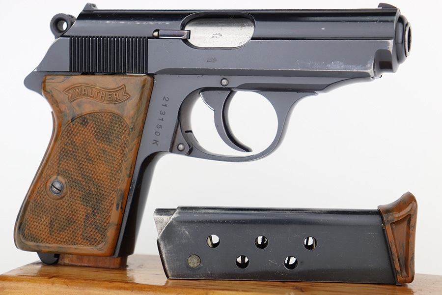 12/6/22 – This is a minty example of a rare 9mm Kurz Walther PPK made in 1939. It is all matching and has the proper “Crown N” commercial proofs. Only about 3.5% of total Walther PPK production was done in this caliber. This particular gun comes from Tom Whiteman’s personal collection. For an added fee at check-out, we are happy to provide a Certificate of Authenticity signed by Tom himself. It has retained about 98% of its beautiful original high polish finish. There is just very minor muzzle wear and a small area of very light spotty wear along the round edge of the right side of the slide. Comes fitted with a very nice period-correct brown Walther grip – a small hairline crack on the left side. It also comes with one period-correct 9mm magazine with a nice brown finger extension bottom to match the grip. Excellent, shiny bore with strong rifling.
