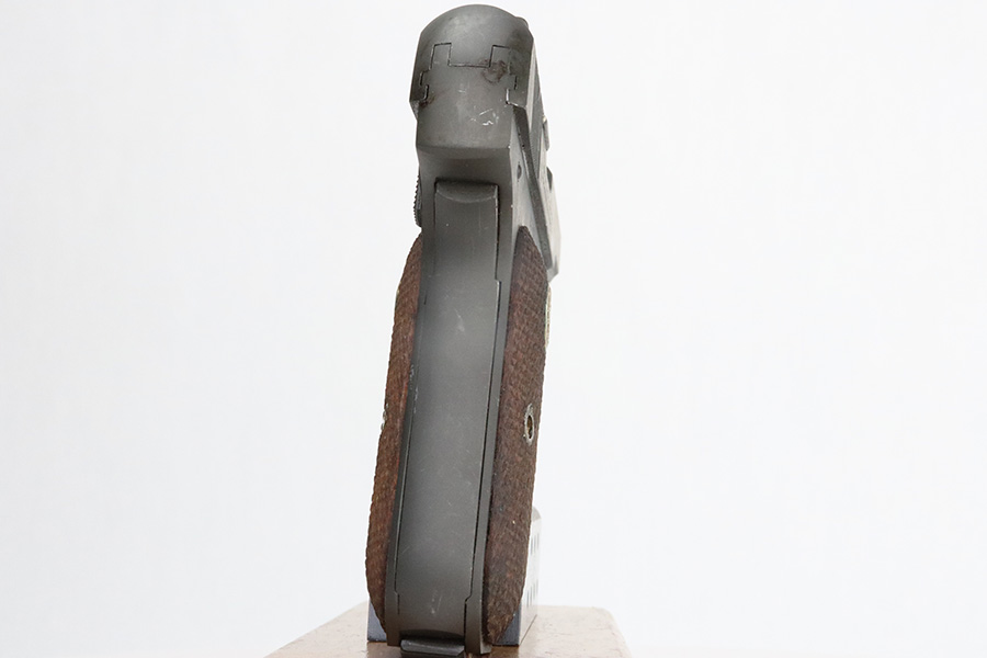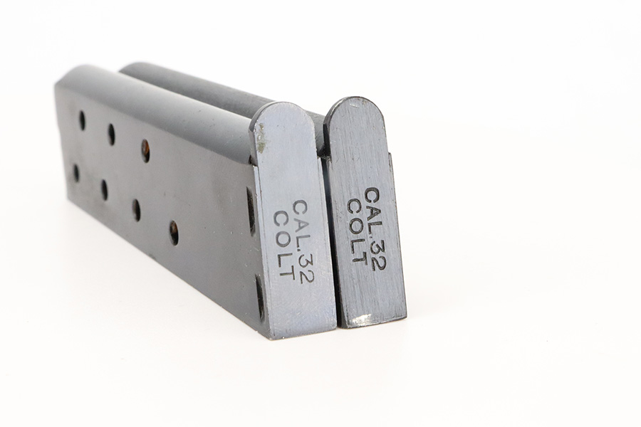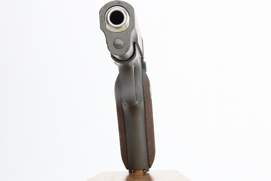 2/13/24 – This is a rare Colt Model 1903 that was issued to the U.S. military in 1944. One of 6,000 issued, this one is in minty condition with just a tiny hint of high edge wear. Frame is U.S. Property marked and there’s a crossed cannons cartouche on the left side of the frame. British proofs are visible on the slide and barrel, potentially indicating this one was part of the lend-lease program. Minty grips and bore. Listing comes with a spare magazine, and box which is matching with hand-serialized numbering on the bottom.