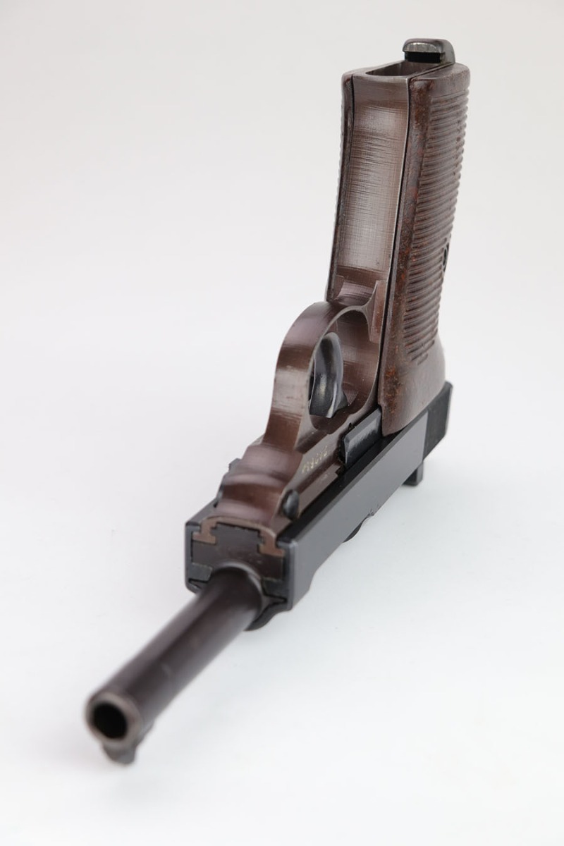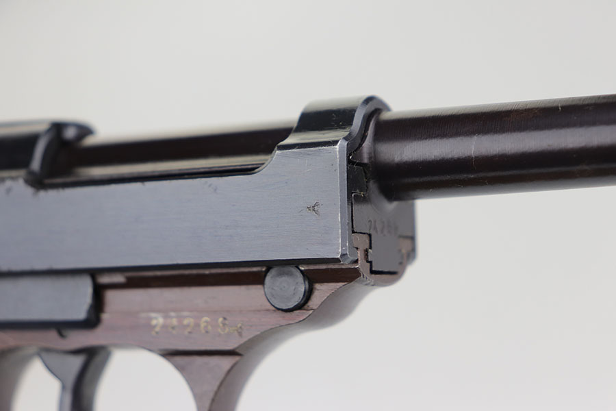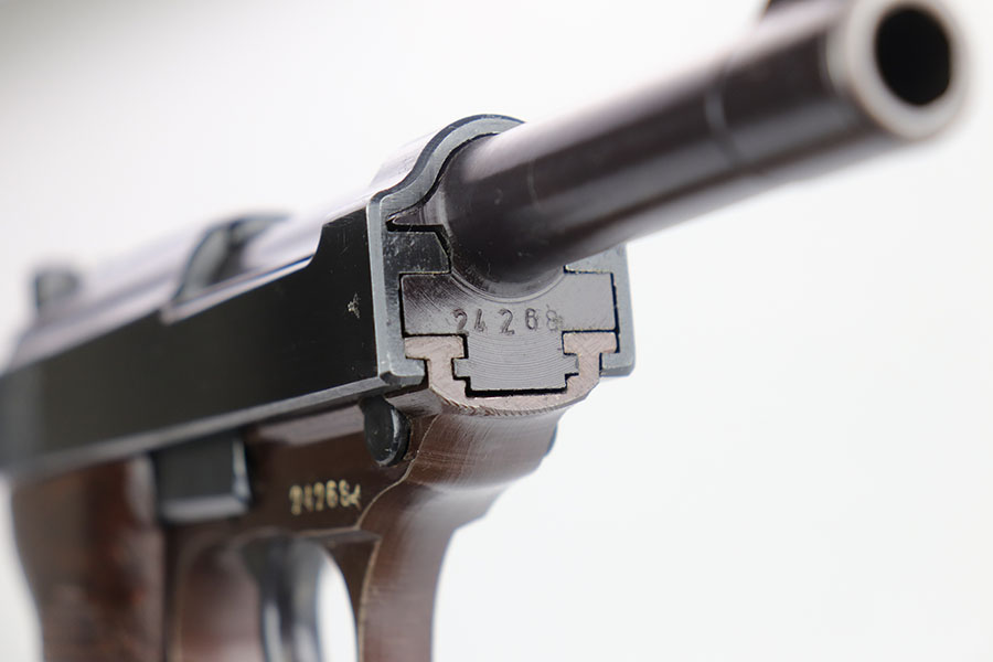 3/27/20 – This is one of the finest examples we’ve ever encountered of a rare Walther P.38 variant. It is a commercial Mod. P38, one of only 1,800 produced. The pistol is all matching and original with 998% of the bluing remaining, showing just a small area of finish loss on the barrel. Further, it has a beautiful plum hue to the slide and frame, which is very popular with many of our customers. Mirror bore and excellent grips.