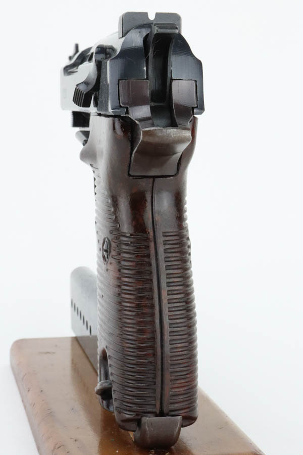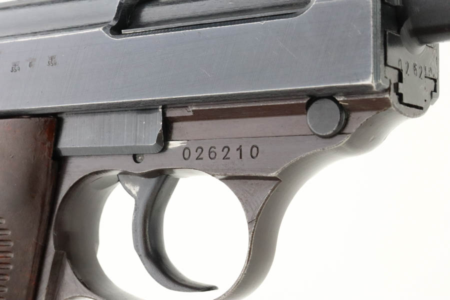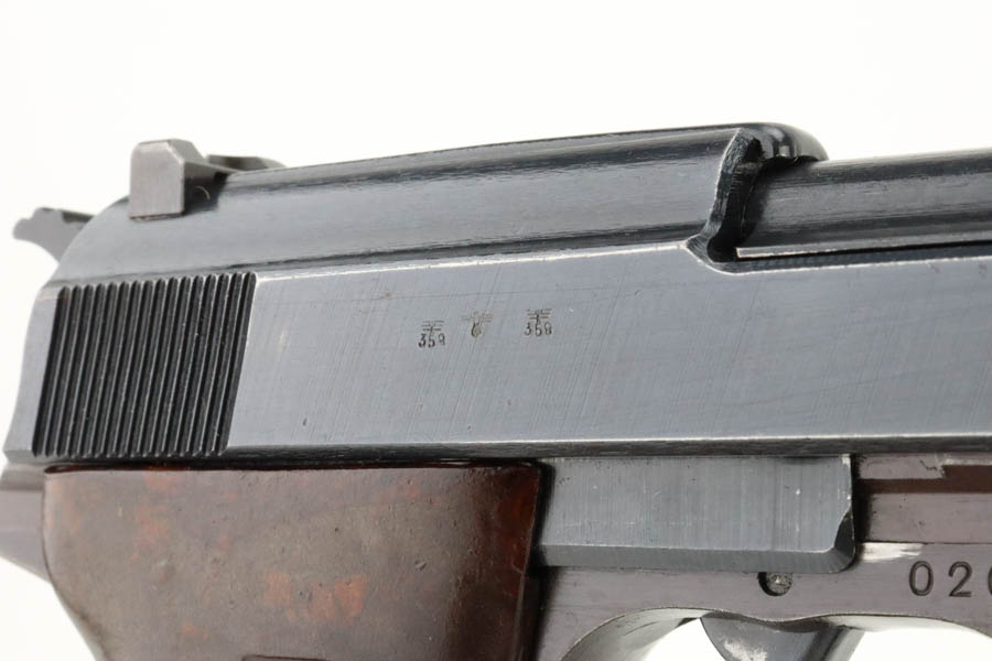 6/17/24 – This is a minty example of a very rare “Zero Series” Walther P.38, manufactured in 1945. They are called a zero series because the serial numbers start with a zero. Only 1,750 of these were produced according to Whittington’s book. This one is all matching and has “Eagle 359” military acceptance proofs. Late-war cog-style hammer. It has retained virtually all of its original finish with just the slightest hints of high edge and muzzle wear. Fitted with reddish bakelite grips and comes with a period-correct magazine. Minty bore. De-cocker is functional.