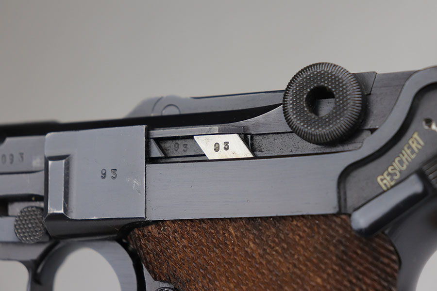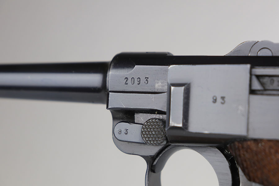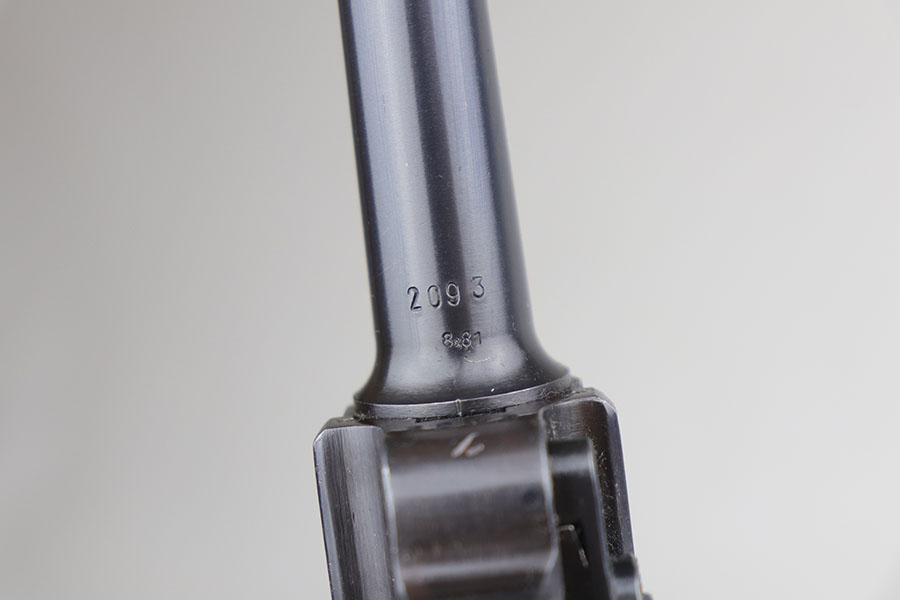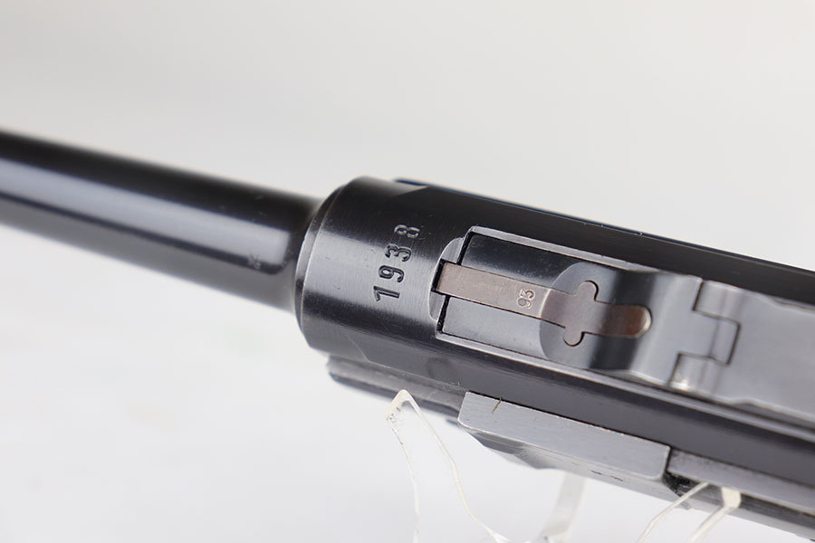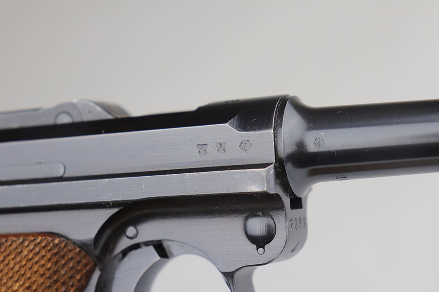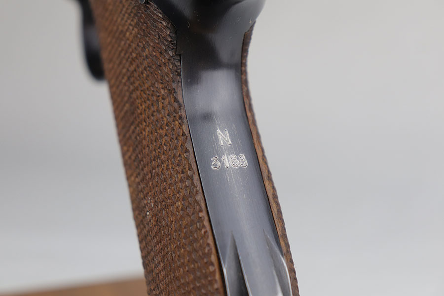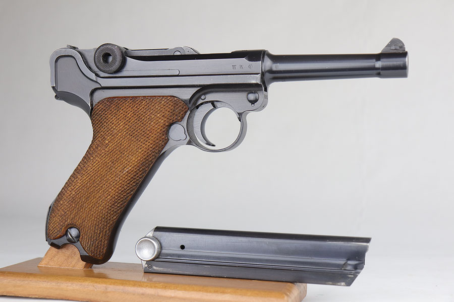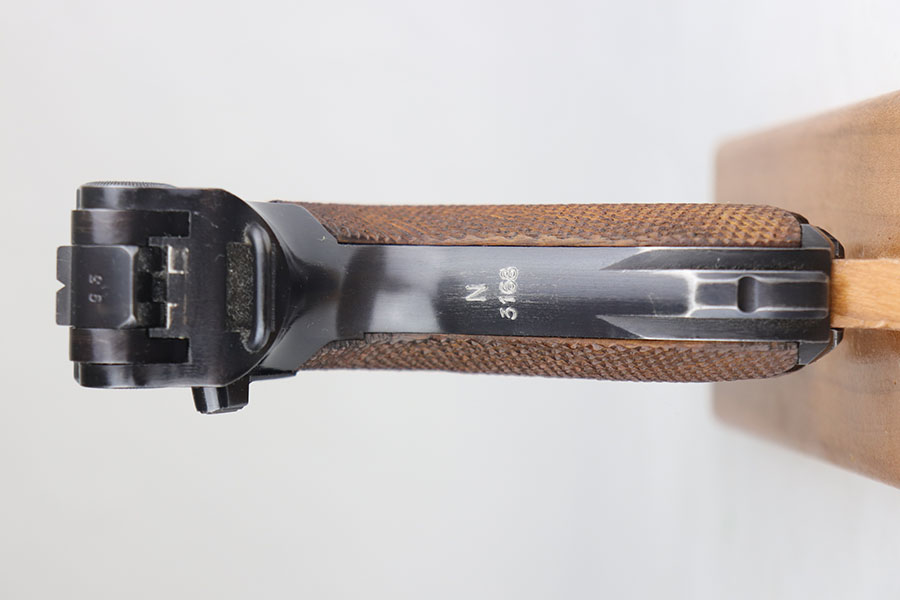 8/3/20 – This is a near-mint and rare Mauser Luger that was made in 1938 and issued to the German Navy. There were only 2,400 Navy Mauser Lugers produced in 1938, and there were only about 6,000 Kriegsmarine Mauser Lugers ever marked as such. This one has all matching numbers, including the original grips. The magazine is one digit off on the property number as compared to the pistol. The pistol has 97-98% of the original blue with minor high edge wear, and a spot of finish loss on the bottom of the front strap. The grips are minty, as is the bore.