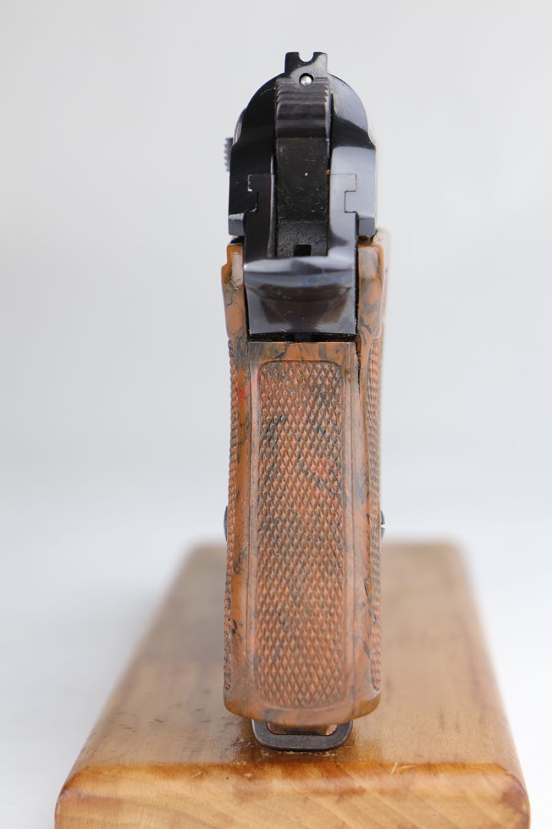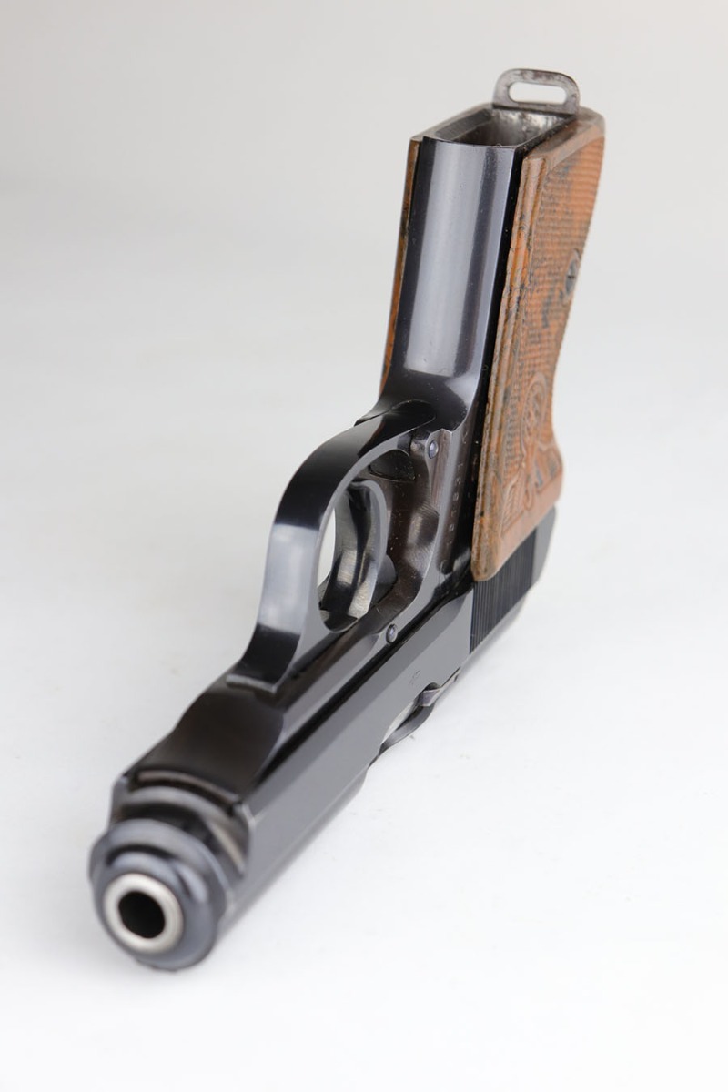 8/4/21 – This is a gorgeous and rare Party Leader Walther PPK from the Nazi era. The gun has minty original finish with just a bit of muzzle wear on each side of the slide. The serial dates it to early 1939, and is in the correct range for the issuance of the Party Leader “Honor” Grip. The grip is excellent as well, but does have a small crack in the upper right corner of the spine.  Excellent bore and minty finger extension magazine.