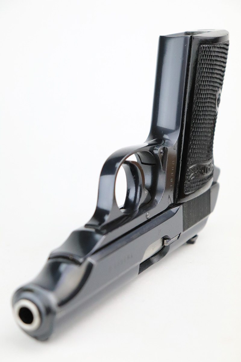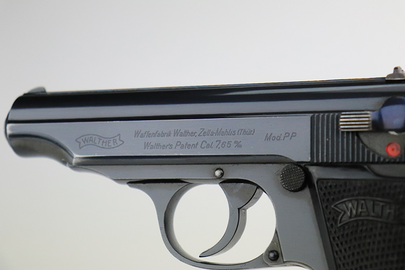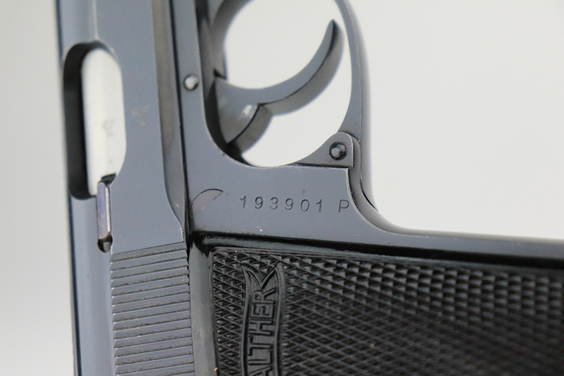 8/23/22 – This is a near mint example of an SS contract Walther PP from 1940. The original finish rates in the 98 -99% range. The slide are numbered to match and in the known SS contract range for 1940. Comes with a minty black Akah holster that is also correct for an SS rig. The bore is shiny and bright. Finally it comes with two matching magazines. But now for the bad news…. or at least a significant caution. The magazines are correct for a 1940 issued gun but we are not sure if the matching mags were done in the factory. The font and the look of the numbering is very good. However, they might be “forced matched”, meaning not factory numbered. I have studied them under magnification and can only see very slight differences between these and another from the same time period. Please study the photos carefully and see what you think. Priced accordingly given the fact that this would be a $6500 rig if we were sure about the magazines.