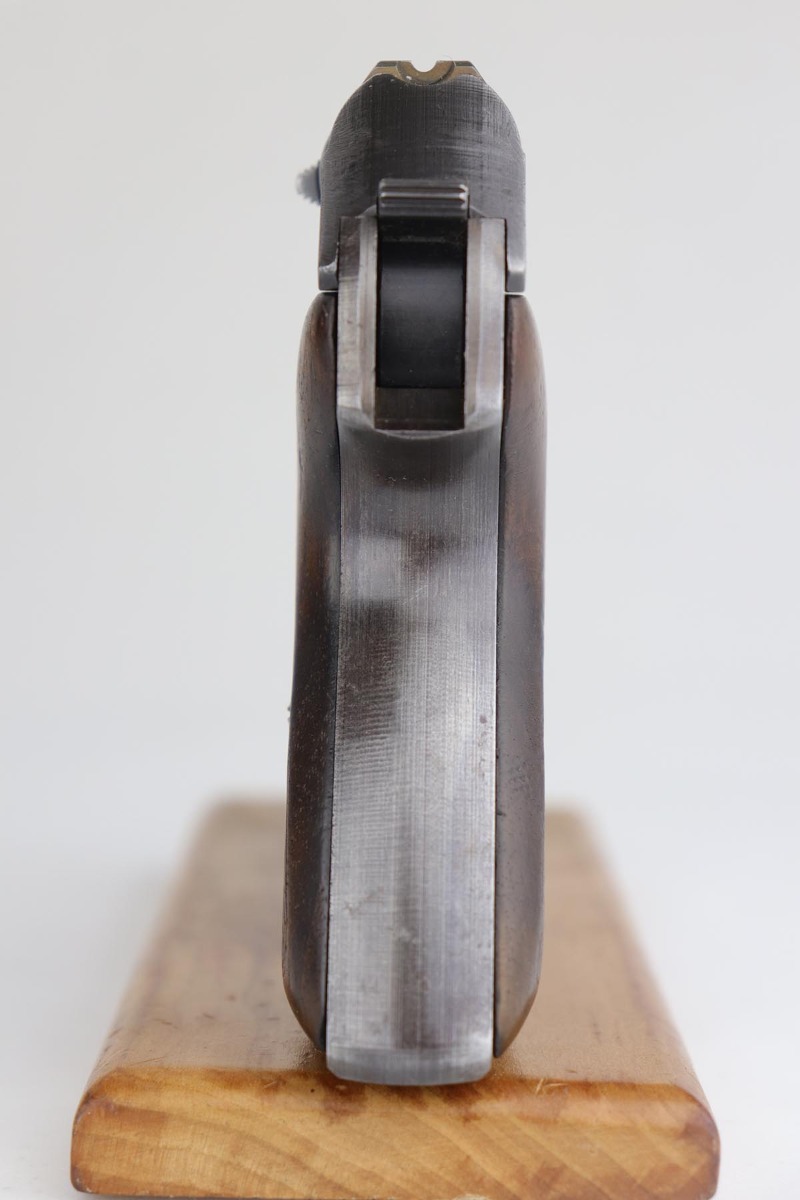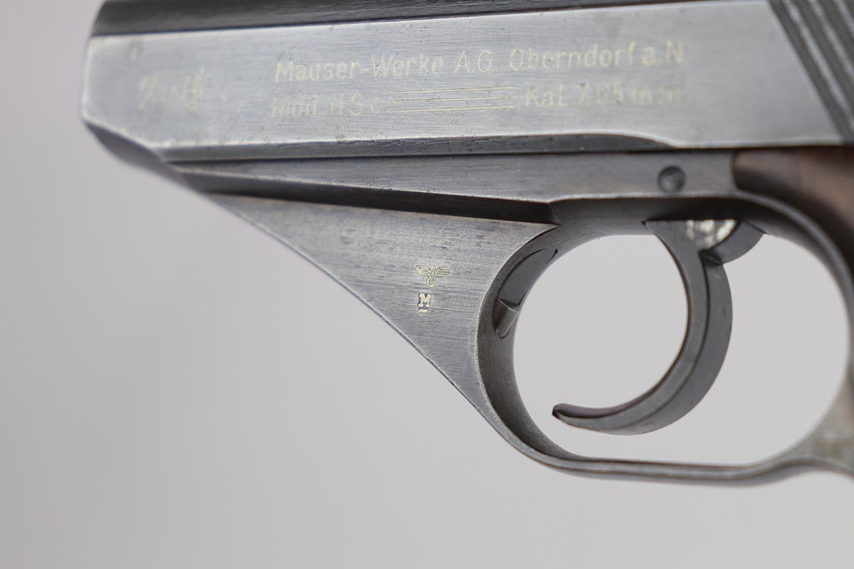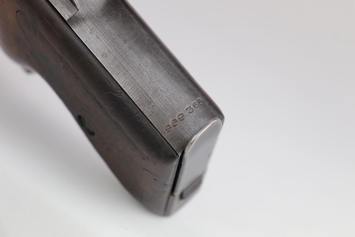 7/22/20 – This is a potentially super rare Navy Mauser HSc variation that comes from the Tom Knox collection, and is documented in Still’s Axis Pistols book, on page 175. It is a fourth variation pistol but also has an Eagle over M proof on the left side of the frame, and is the only such example that’s been reported. The finish is original but shows some uniform thinning, especially on the straps. Terrific bore. Grips show minor age and handling wear, mostly on the right panel, but no cracks or chips.