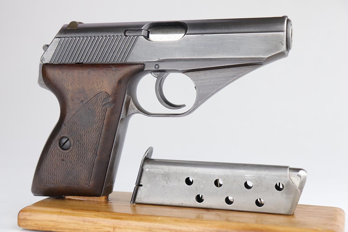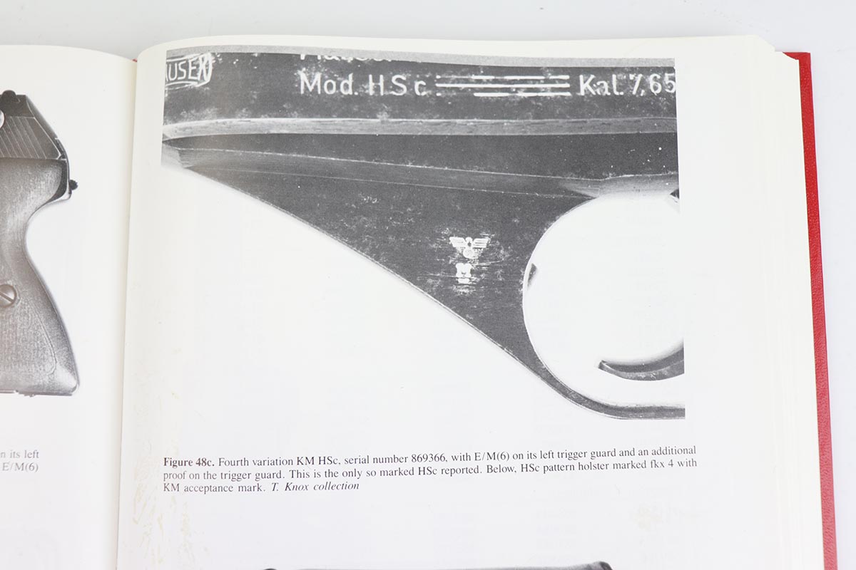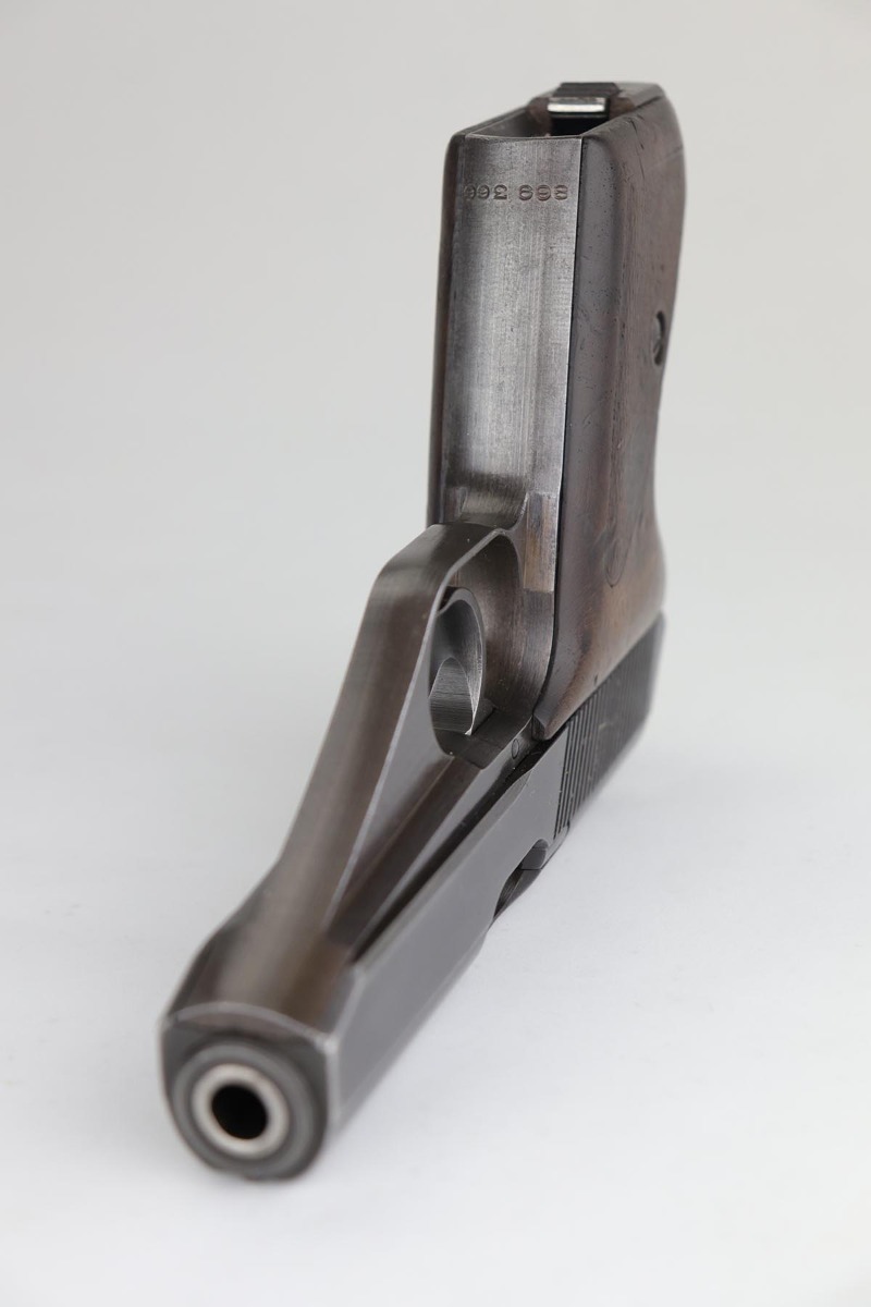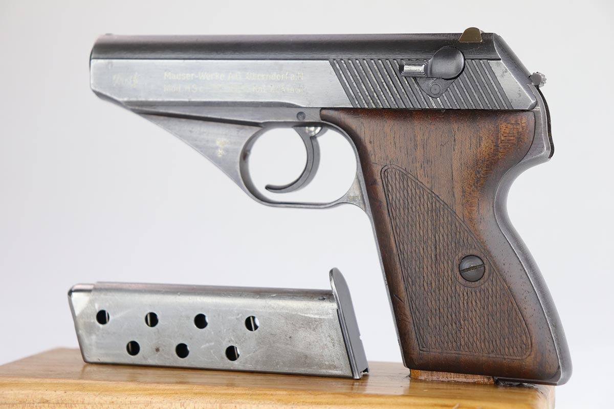 7/22/20 – This is a potentially super rare Navy Mauser HSc variation that comes from the Tom Knox collection, and is documented in Still’s Axis Pistols book, on page 175. It is a fourth variation pistol but also has an Eagle over M proof on the left side of the frame, and is the only such example that’s been reported. The finish is original but shows some uniform thinning, especially on the straps. Terrific bore. Grips show minor age and handling wear, mostly on the right panel, but no cracks or chips.