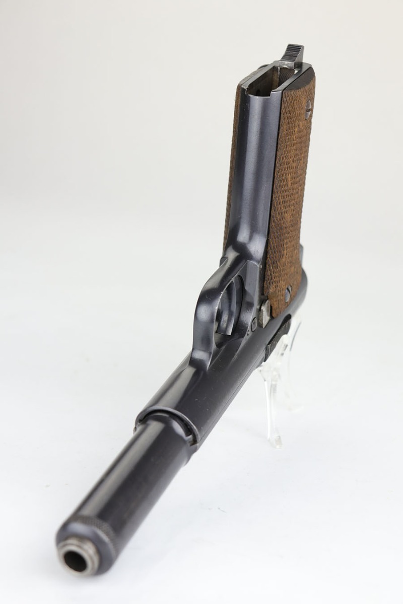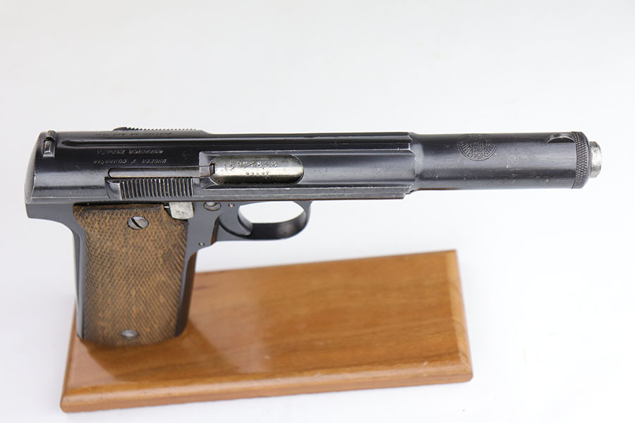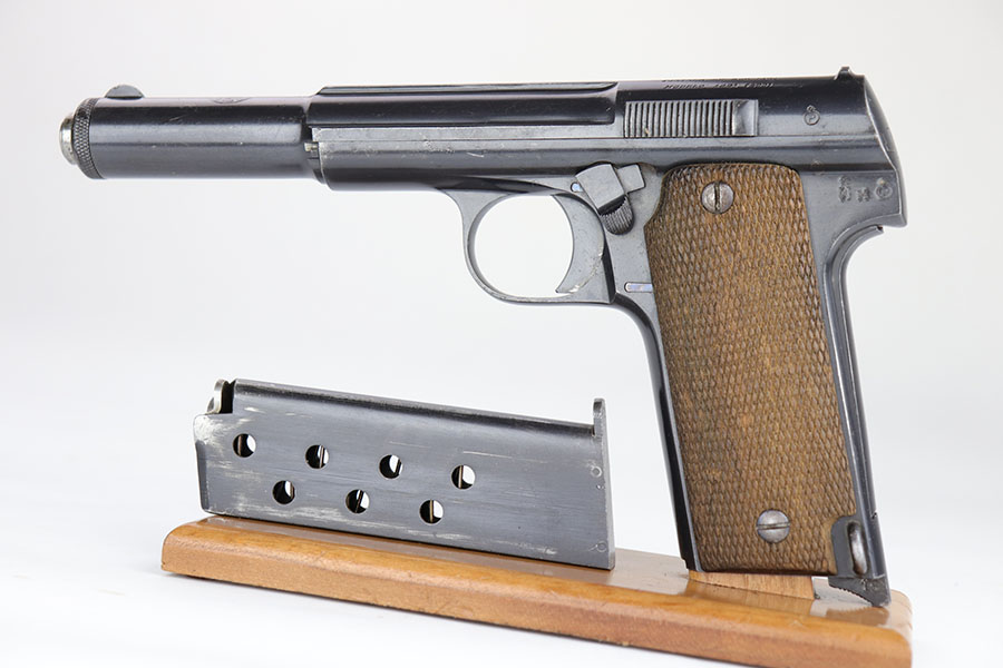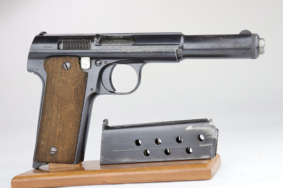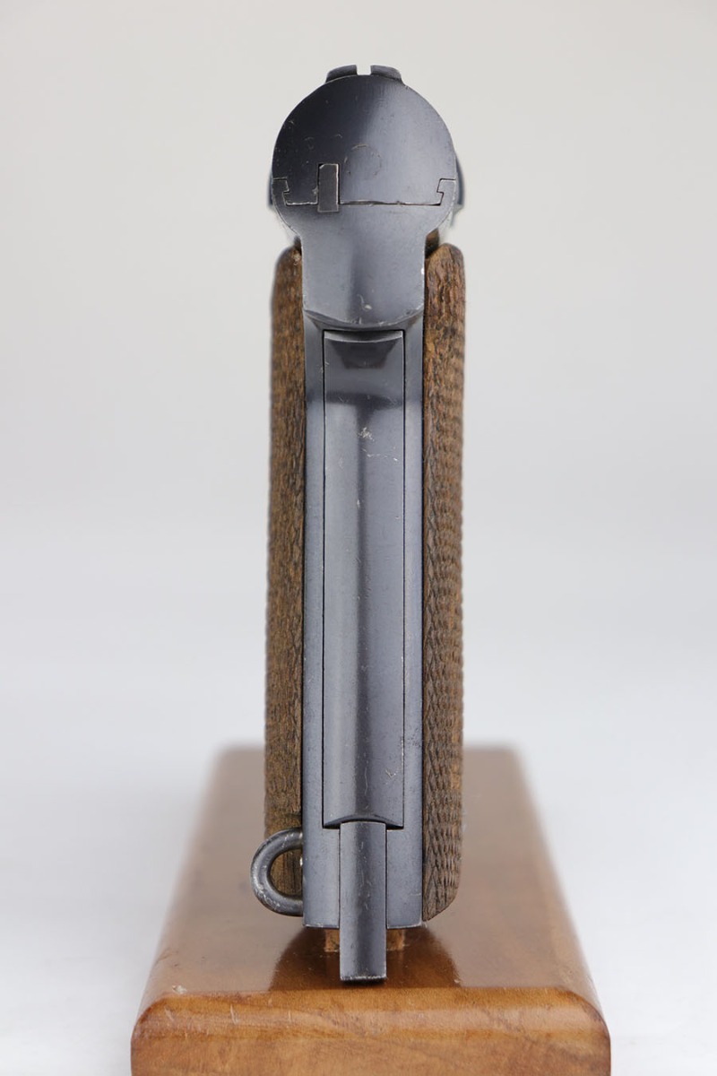 4/17/20 – This is a terrific example of a rare Nazi contract pistol rig – the Spanish Astra 400.  There were only ~6,000 Astra 400’s produced for the Nazi contract, all in 1941, as evidenced by the Awschalom factory letter which detailed the serial range for this contract. The pistol shows hardly any finish loss to the original blue, but there are a few areas of surface pinpricking, mostly along the rails on each side of the pistol. The original grips are in excellent condition with only minor handling wear. Original magazine is present. Unfortunately, the bore wasn’t well cared for on this pistol. It has frost and freckling in the grooves, but does have strong rifling.