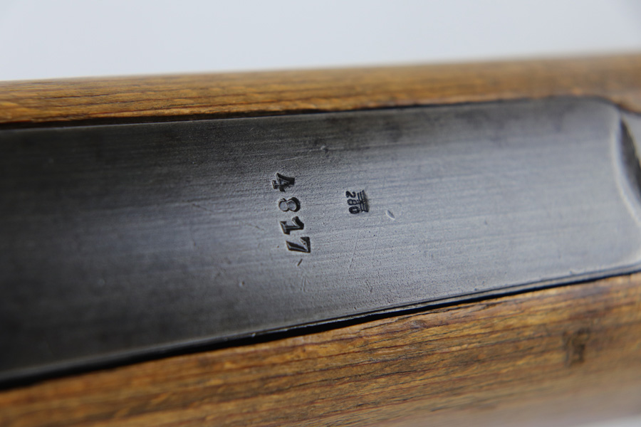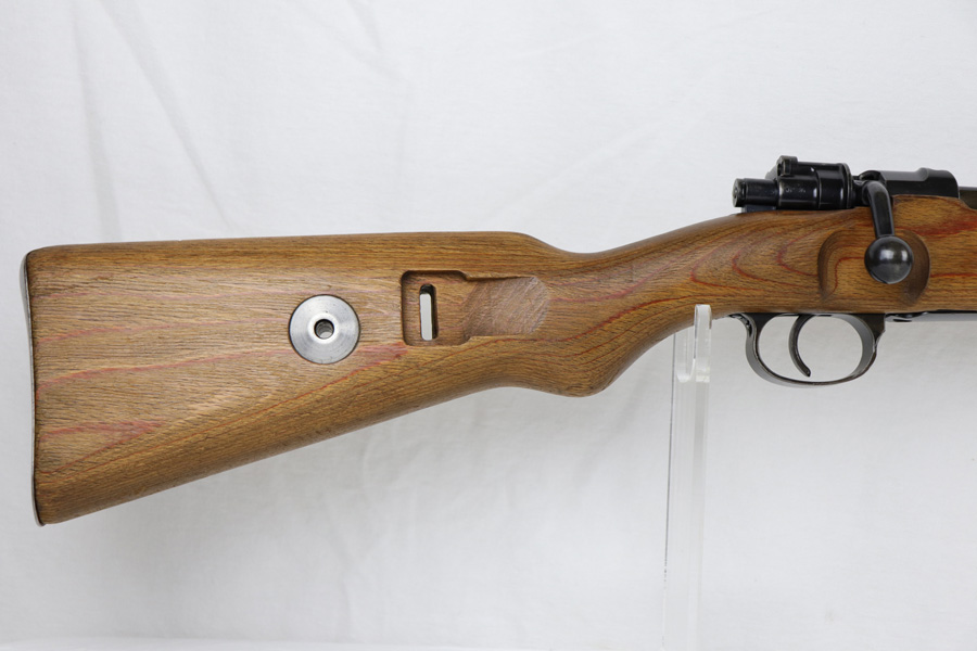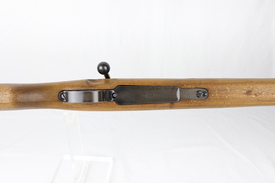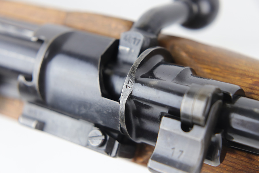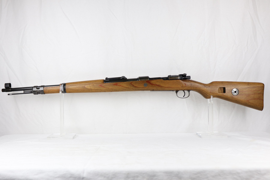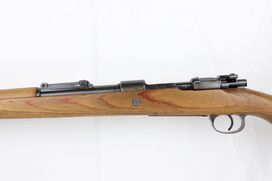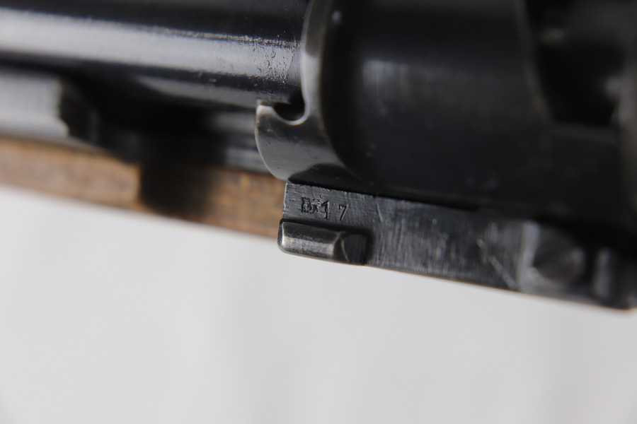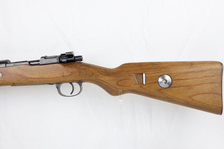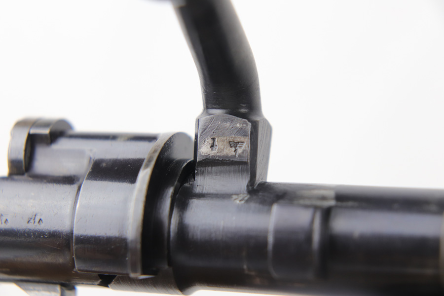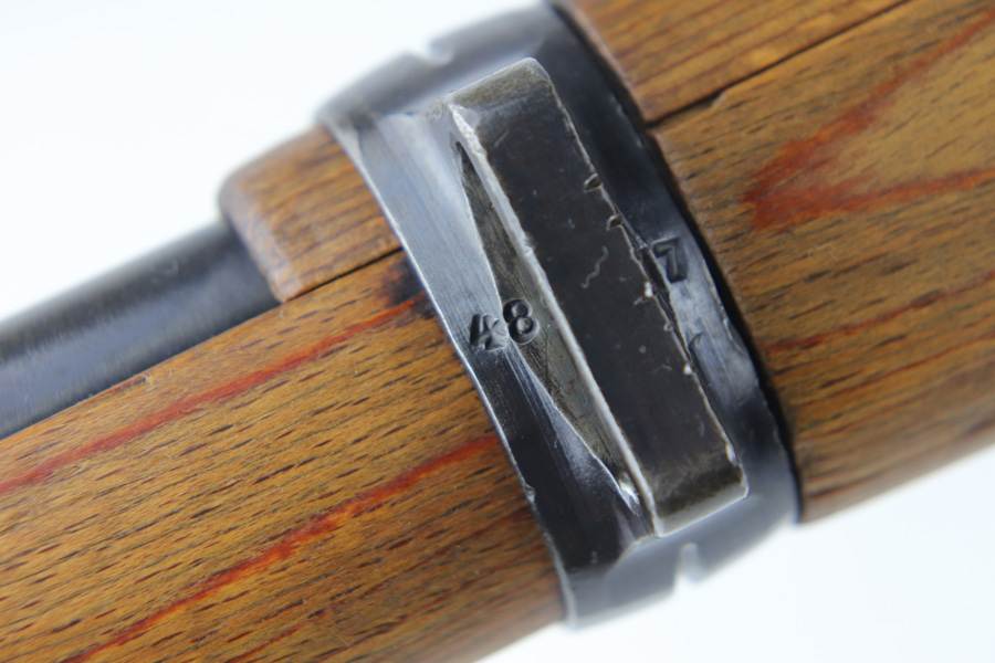 10/25/18 – This is a rare “ax” code k98 rifle manufactured by Feinmechanische Werke in 1941. It is estimated that fewer than 1% of K98s received this code. In mid 1940 the “27” code of Erma was replaced by the “ax” code of Feinmechansiche Werke. It is estimated that approximately 150,000 K98 rifles were produced in 1940 with both the “27/ax” code receiver markings, however the “ax” code k98 rifles are much rarer. The top of the receiver ring is marked “ax / 41”, the right side is marked with three “eagle/280” Waffenamt proofs and the left side is marked with the Nazi firing proof and the serial number. The rifle has all milled parts, most are proofed and the visible serial numbers match. Excellent stock that is original and internally numbered to the gun, including the hand guard. Excellent bore. Comes with sight hood and cleaning rod.