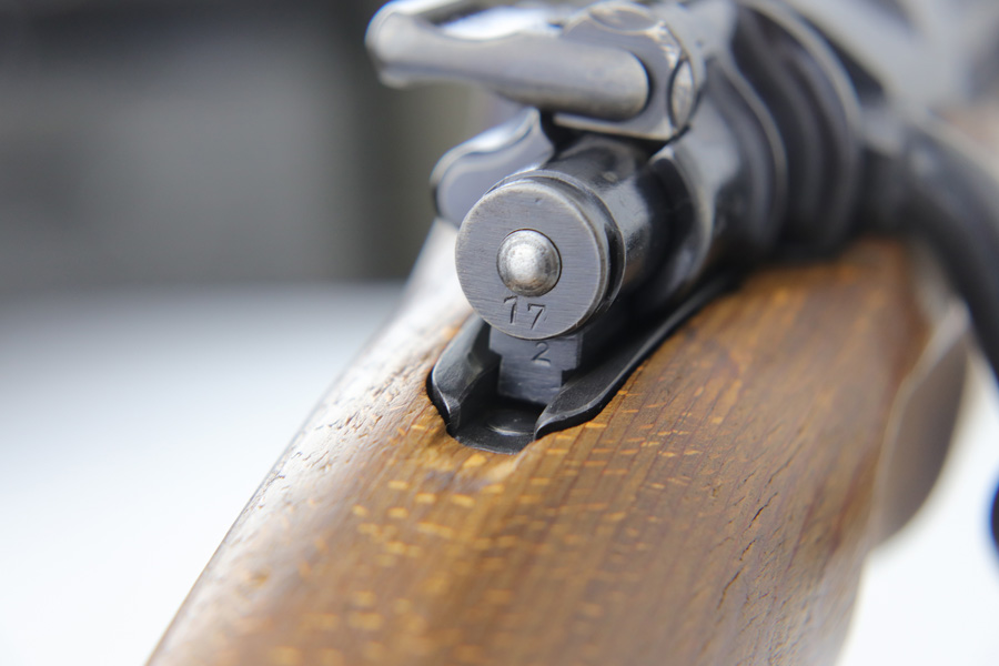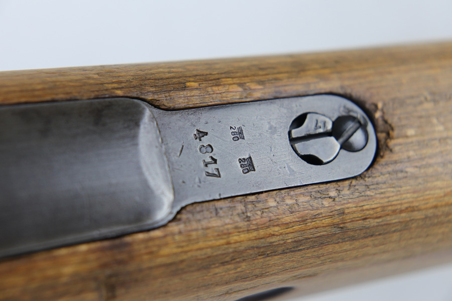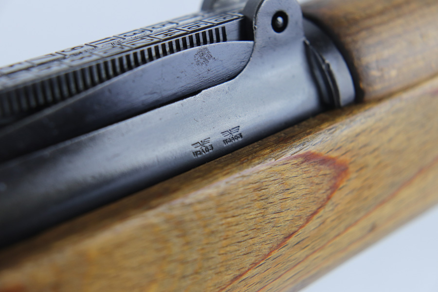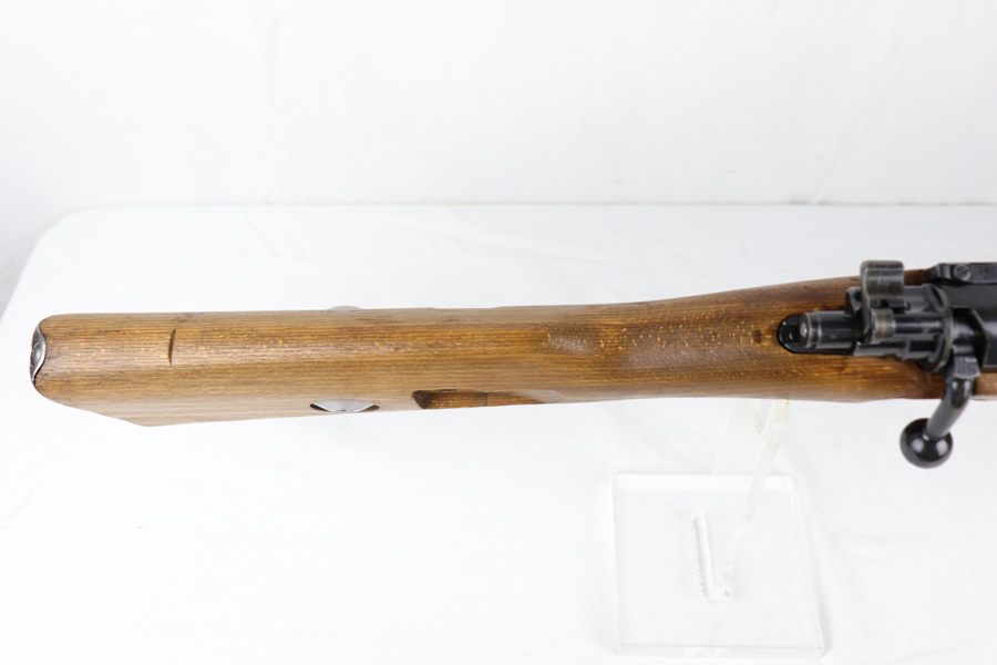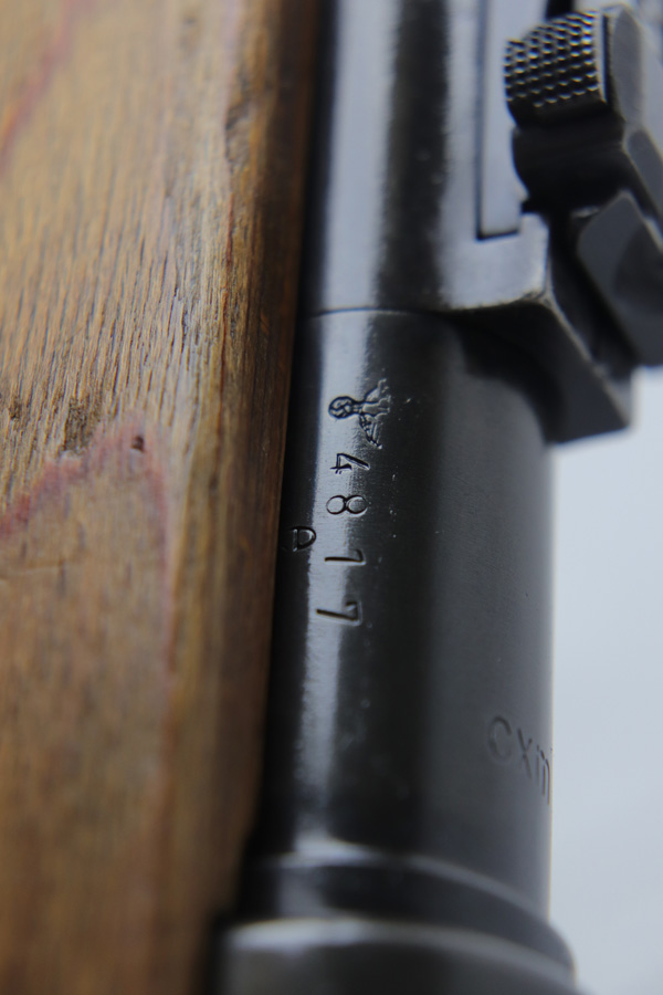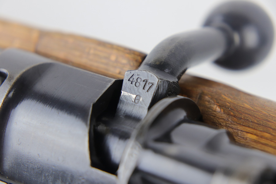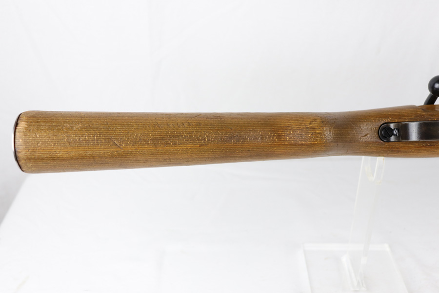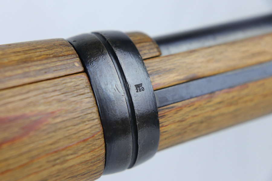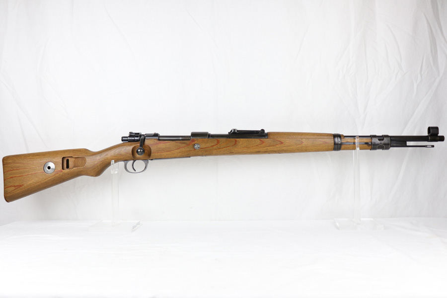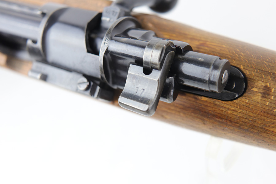 10/25/18 – This is a rare “ax” code k98 rifle manufactured by Feinmechanische Werke in 1941. It is estimated that fewer than 1% of K98s received this code. In mid 1940 the “27” code of Erma was replaced by the “ax” code of Feinmechansiche Werke. It is estimated that approximately 150,000 K98 rifles were produced in 1940 with both the “27/ax” code receiver markings, however the “ax” code k98 rifles are much rarer. The top of the receiver ring is marked “ax / 41”, the right side is marked with three “eagle/280” Waffenamt proofs and the left side is marked with the Nazi firing proof and the serial number. The rifle has all milled parts, most are proofed and the visible serial numbers match. Excellent stock that is original and internally numbered to the gun, including the hand guard. Excellent bore. Comes with sight hood and cleaning rod.