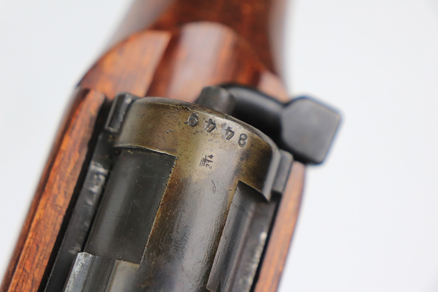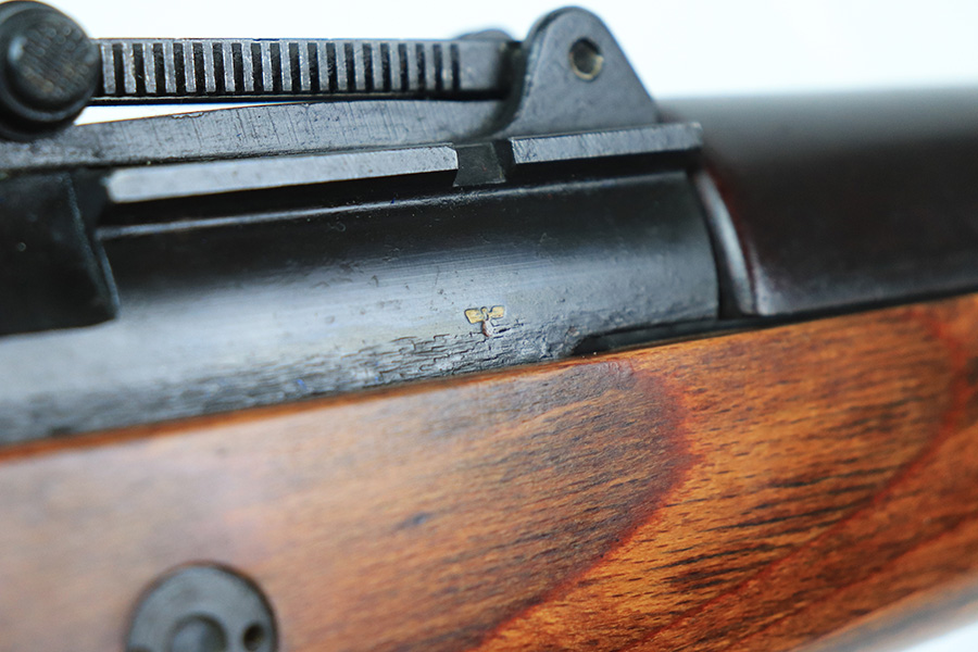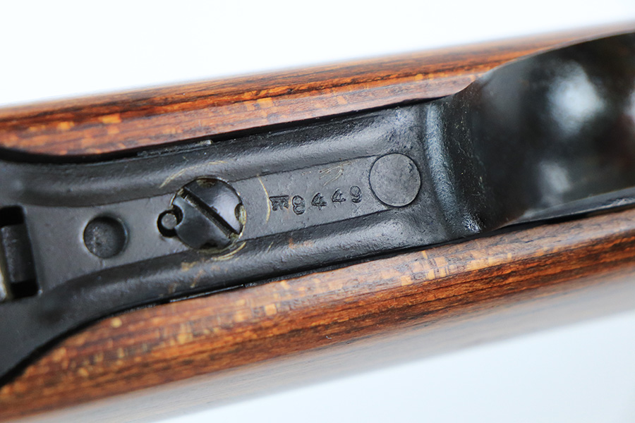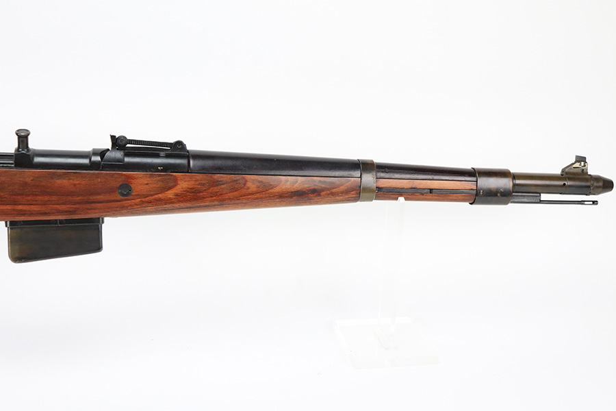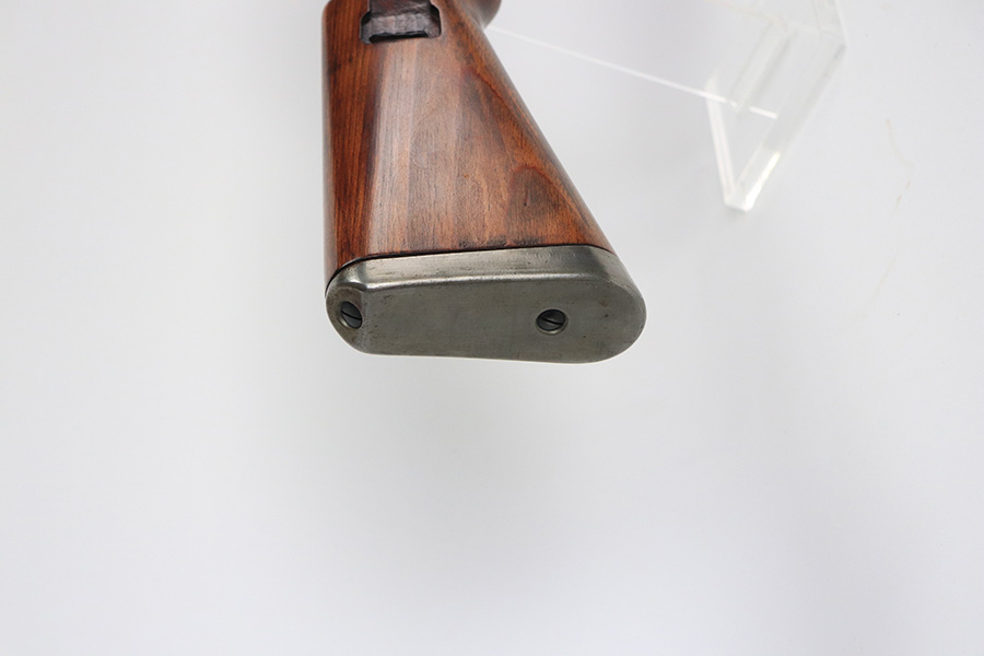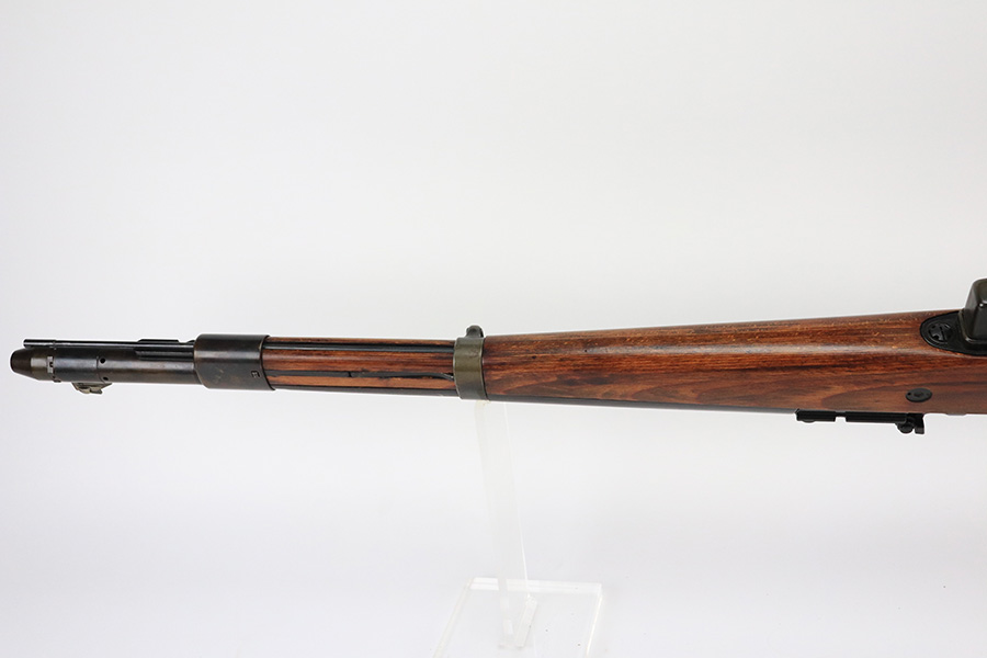 1/26/22 – This is a rare and desirable Walther Gewehr 41 (G41) rifle from World War II. The receiver is marked with ‘duv 43’ code, denoting it was manufactured at the Berlin-Lubecker factory. There were fewer than 10,000 estimated G41s produced before production switched to the G43/K43. These early G41 series of rifles used the “Bang Gas-Trap” system which employed a barrel mounted “Gas Trap” muzzle cone to trap hot gas that was bled off when the round was fired, which cycled the action. This entire series of rifles was very short lived however it was used extensively on the Eastern Front where a semi-automatic rifles was considered essential for “long-life”. Consequently, their survival rate is very low in any condition. The later series of G/K43 rifles did away with the earlier “Bang” gas trap style system and instead used a barrel mounted gas system, that was copied from the Russian Tokarev rifles, making them far more reliable and easier to produce. The Walther design was more successful than the Mauser design at least, as they removed the bolt and had a cleaner receiver area as a result. This particular rifle is all matching, with fully matching numbered parts. The receiver and all numbered areas of the upper/barrel are matching, as is the stock, mag well and trigger assembly, but it does appear that the front sight and muzzle cap are renumbered to match the rifle, and the mag well serial is electro-penciled on. E/214 proofs present on several metal parts. The finish on the metal parts is in great condition, but there is an area of cold blue around the front band and barrel. The stock is in excellent condition with no cracks and hardly any chips or dings, but was sanded throughout at some point. Excellent, shiny bore. Includes cleaning rod and sight hood.