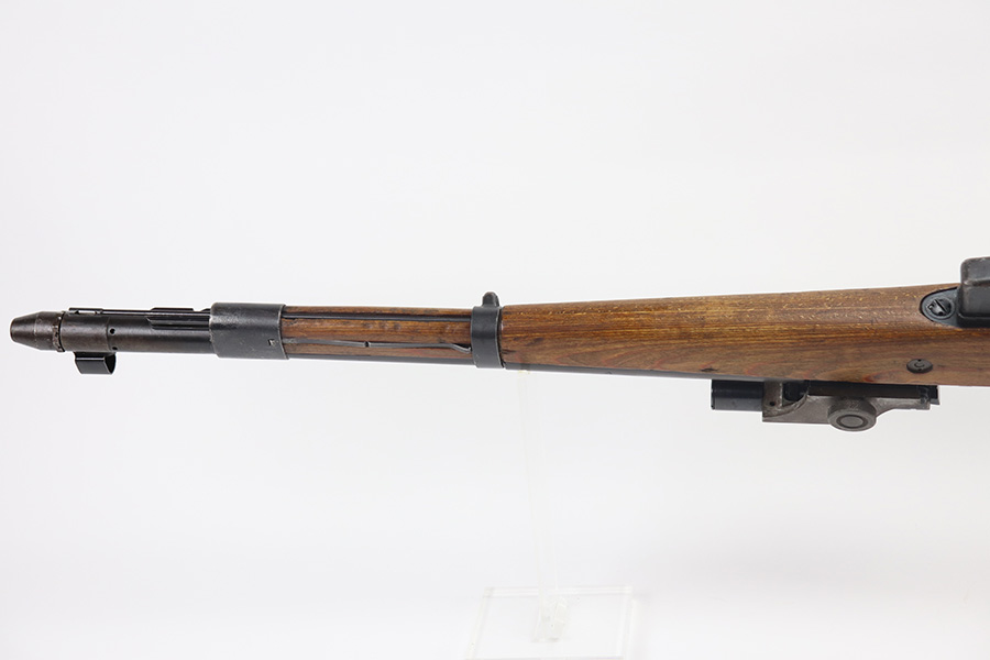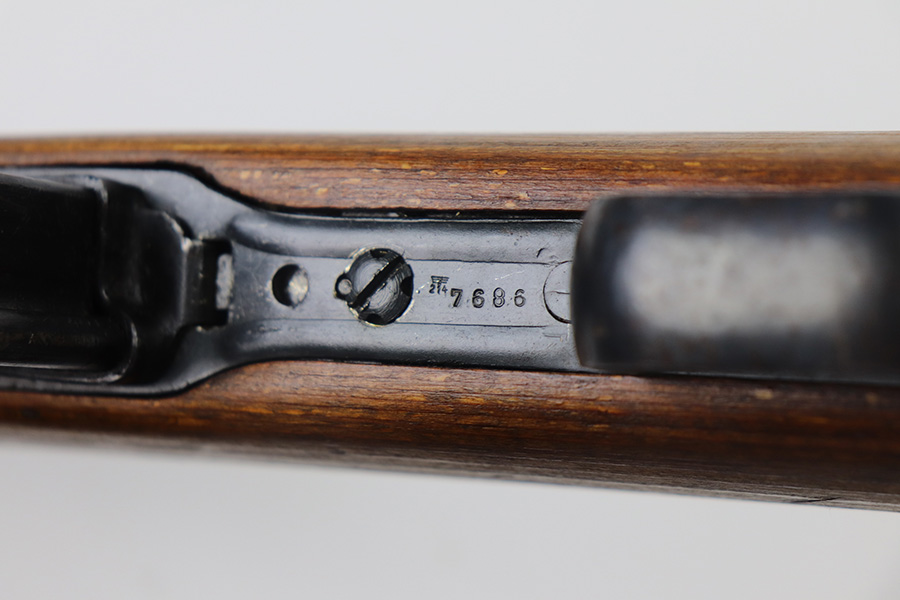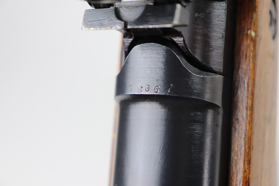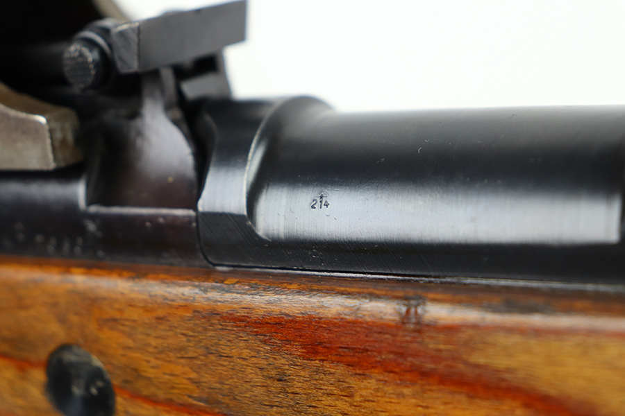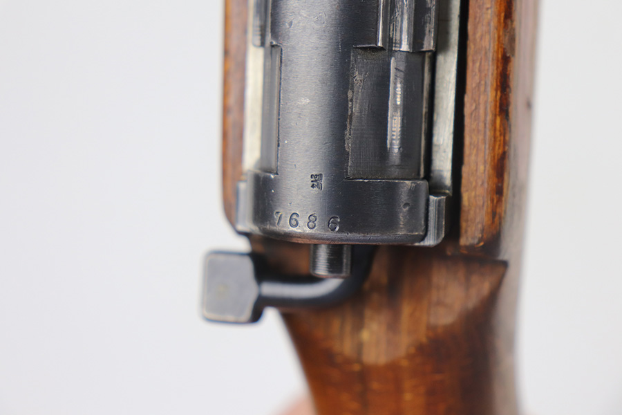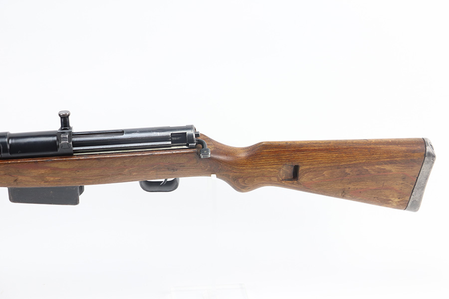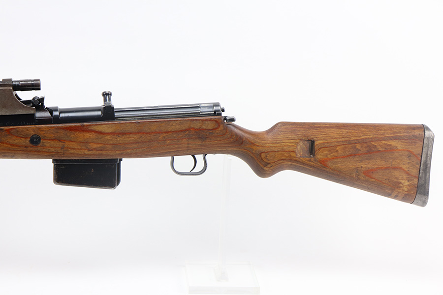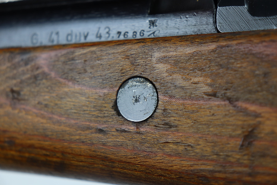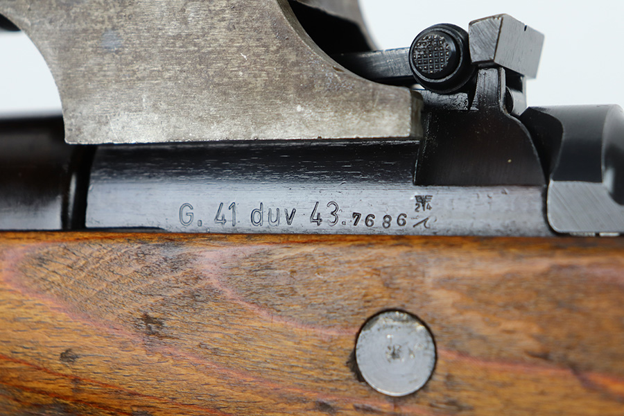 6/17/21 – This is a rare Nazi G.41 that was manufactured in 1943 at the Berlin-Lubecker factory, and features rare scope mount for Zf 41/1 scope. This is the early version of the famous G/K 43 series of semi-automatic rifles. These rifles were made in limited production early on in the war, with only 10,000 manufactured, and ultimately proved to be too time-consuming to manufacture and produce. They employed a gas trap system mounted on the end of the rifle barrel that was originally designed off of the Bang system which employed a full length operating rod. This system proved too costly to produce and unreliable enough through the rough environment of the war. This semi-automatic function of this rifle and larger magazine capacity was highly desirable on the Eastern Front. This specific rifle is fitted with an original ZF41/1 scope and reproduction mount. The right side of the receiver is marked “G.41” with the serial number and “duv 43” the war time code for the Berlin-Lubecker factory. It has all matching numbers throughout, including commonly replaced parts such as the stock and muzzle cap. Excellent bluing on the receiver but most of the wear is on the front end of the muzzle/barrel and front band. Mint bore, looks nearly unfired and something tells us this will be super fun to use. Stock is in great shape with several waffenamts and no major defects.