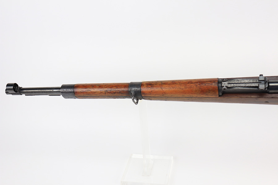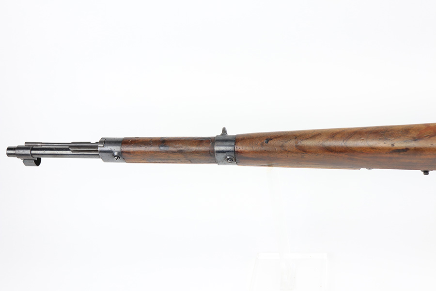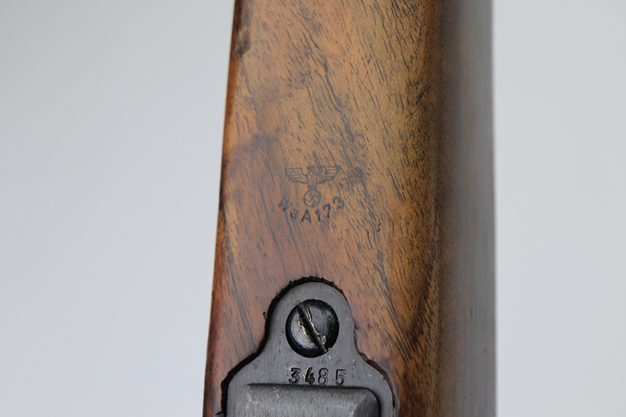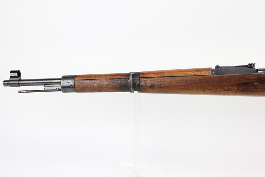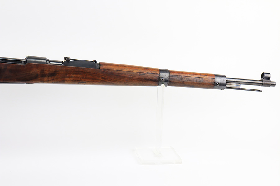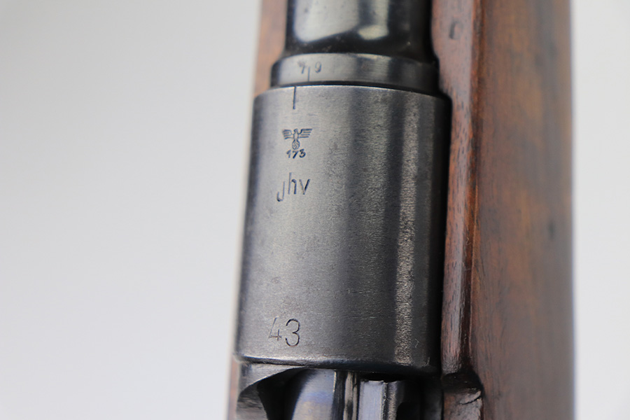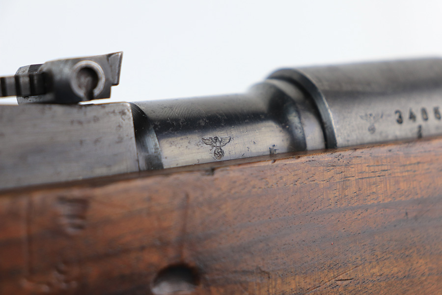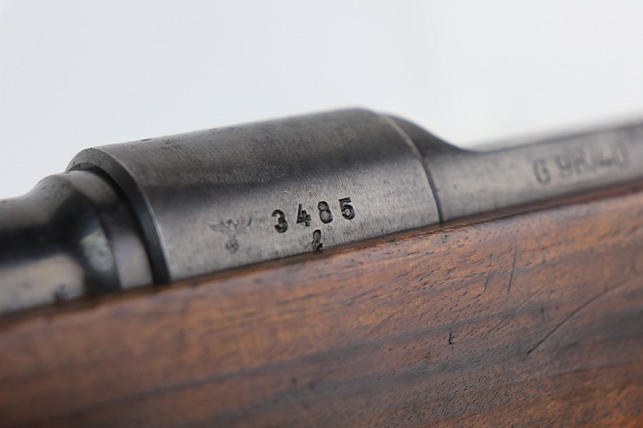 2/21/22 – This is a rare Nazi issued rifle, made in 1943 at the FEG factory in Hungary. These rifles were originally manufactured during the early part of WWII as the Hungarian model 35, at the Metal Goods and Weapons Factory, Budapest, Hungary. After the take over of the Hungarian factory by the Germans these rifles were designated the model G98/40 and the factory was given the wartime code of “jhv”. This rifle is similar in function and operation to the standard K98 rifle with nearly identical front and rear sights, making training and reissue very easy. This example is all original and correct. It has matching numbers on the bands, receiver, barrel, bolt, rear sight, and trigger housing. Stock shows its age with several scratches and dings but has very sharp waffents and serial. Minty bore. Finish on the metal parts is original throughout with very little bluing loss overall, but oxidation in most areas. Comes with cleaning rod and sight hood.