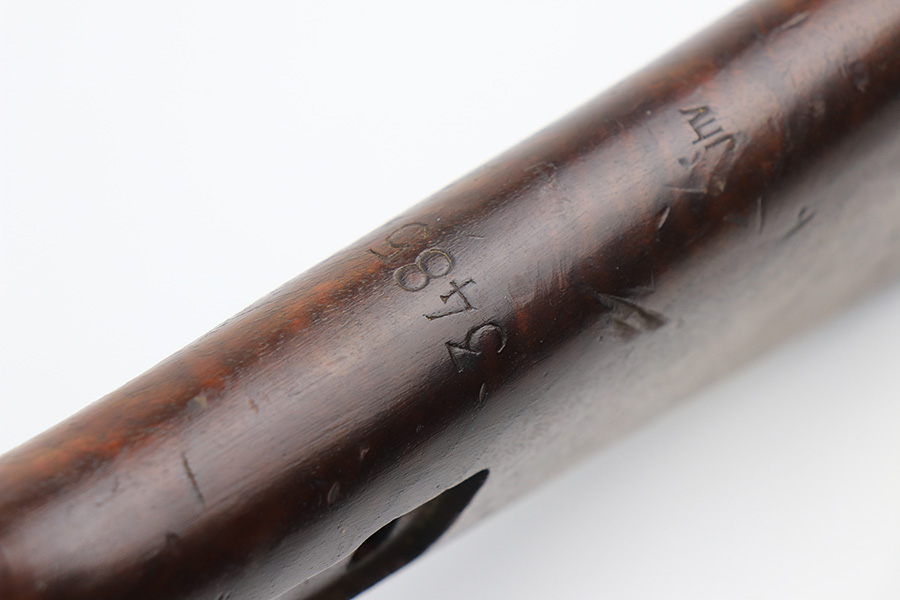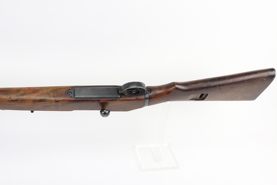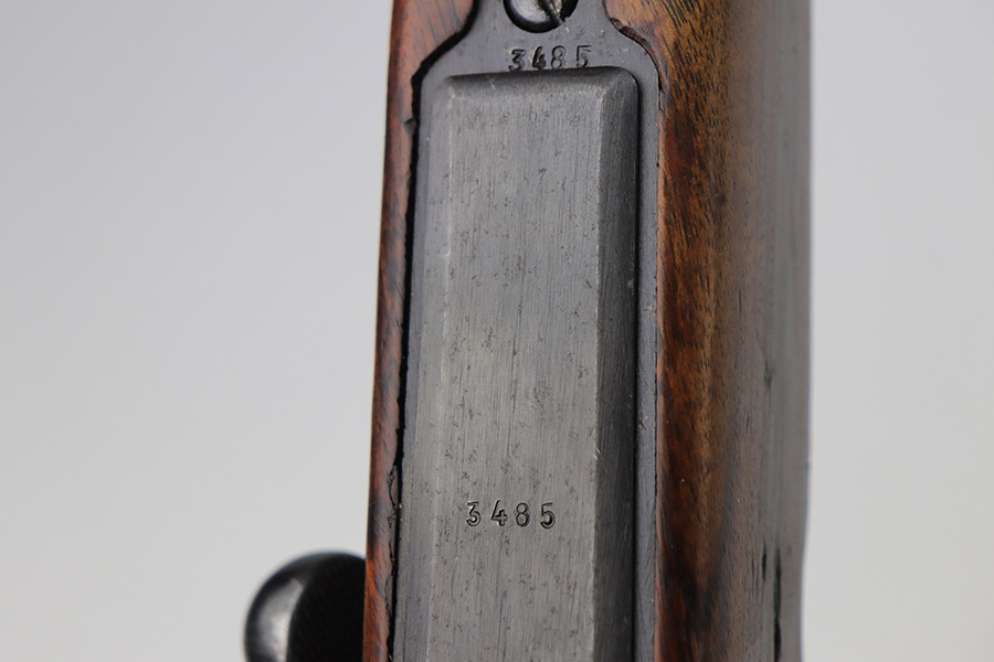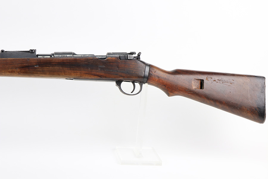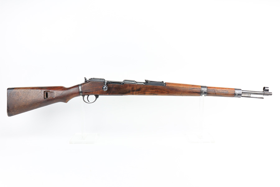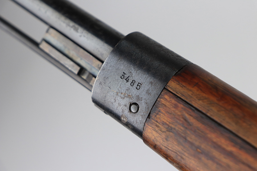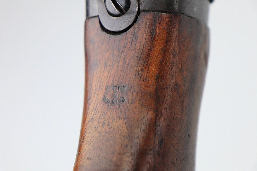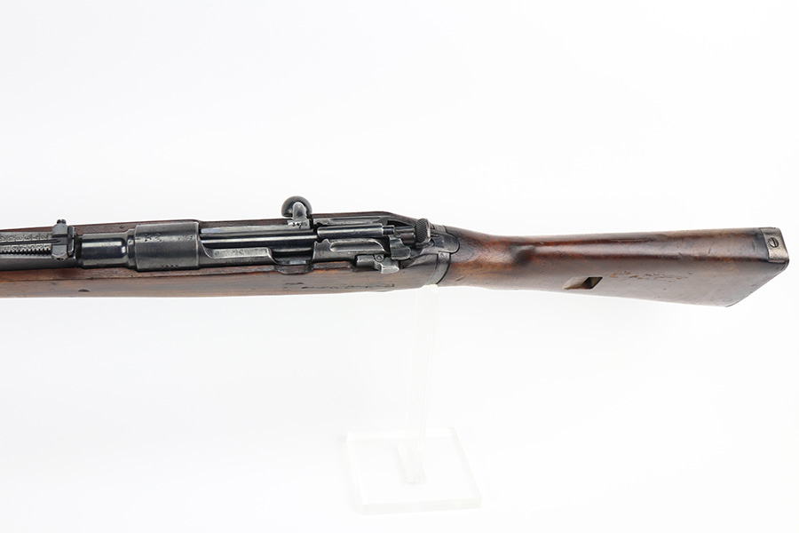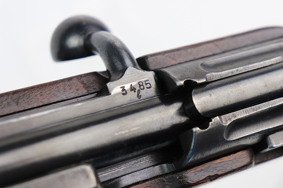 2/21/22 – This is a rare Nazi issued rifle, made in 1943 at the FEG factory in Hungary. These rifles were originally manufactured during the early part of WWII as the Hungarian model 35, at the Metal Goods and Weapons Factory, Budapest, Hungary. After the take over of the Hungarian factory by the Germans these rifles were designated the model G98/40 and the factory was given the wartime code of “jhv”. This rifle is similar in function and operation to the standard K98 rifle with nearly identical front and rear sights, making training and reissue very easy. This example is all original and correct. It has matching numbers on the bands, receiver, barrel, bolt, rear sight, and trigger housing. Stock shows its age with several scratches and dings but has very sharp waffents and serial. Minty bore. Finish on the metal parts is original throughout with very little bluing loss overall, but oxidation in most areas. Comes with cleaning rod and sight hood.