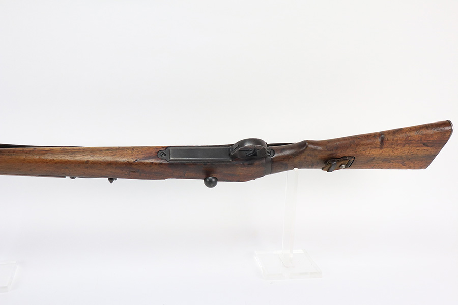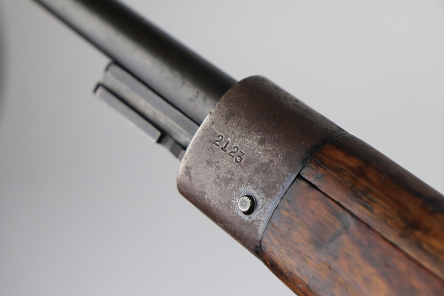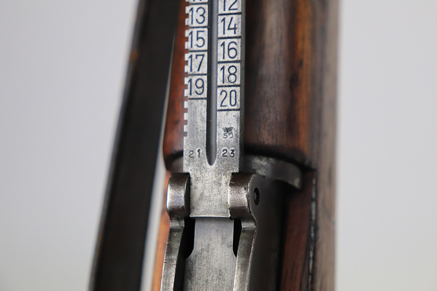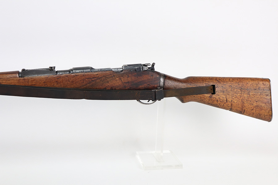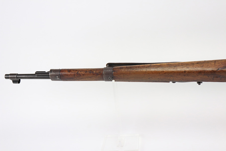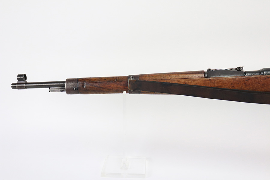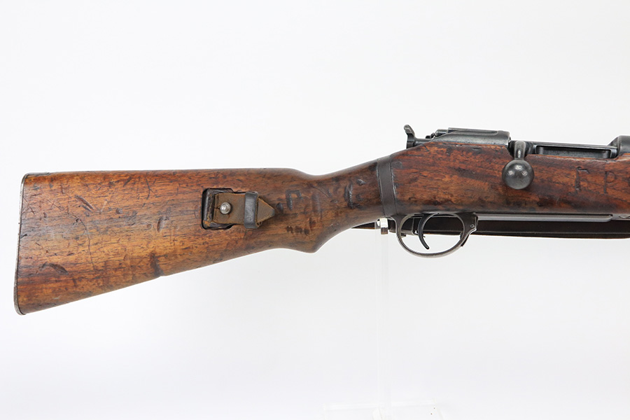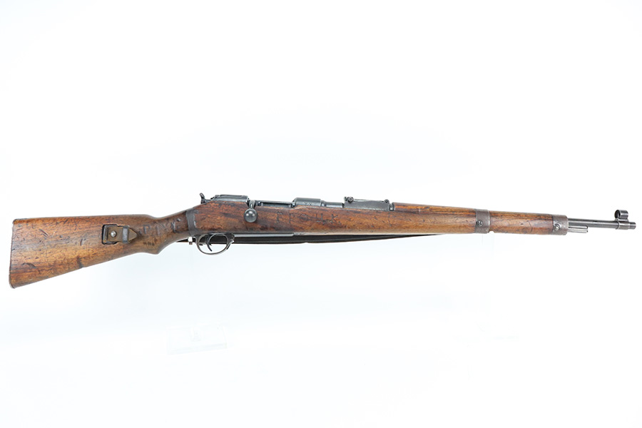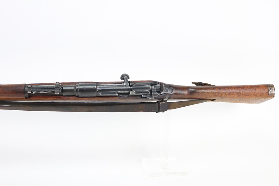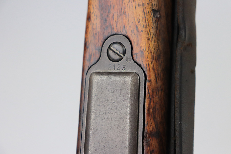 8/20/24 – This is a rare Nazi issued rifle, made in 1941 at the FEG factory in Hungary. These rifles were originally manufactured during the early part of WWII as the Hungarian model 35, at the Metal Goods and Weapons Factory, Budapest, Hungary. After the take over of the Hungarian factory by the Germans these rifles were designated the model G98/40 and the factory was given the wartime code of “jhv”. This rifle is similar in function and operation to the standard K98 rifle with nearly identical front and rear sights, making training and reissue very easy. The top of the receiver is marked “jhv/41” the wartime code for the Hungarian factory and 1941 for the year of manufacture. The left receiver side wall is marked “G98/40” and the left side of the receiver and barrel have the large German Eagle firing proof. This one has a mismatched bolt and floorplate. Matching numbers on the bands, receiver, barrel, rear sight, buttplate and trigger housing. Stock shows its age but doesn’t have any cracks. Many dings and scratches throughout, and a previous owner carved their name in the right side. Sharp waffenamts are present, at least. The bore has strong rifling but frost throughout and is in need of a thorough cleaning as it’s very dirty. Finish on the metal parts is original throughout but shows some general thinning in most areas, and minor freckling in a couple of areas. Comes with original sling.