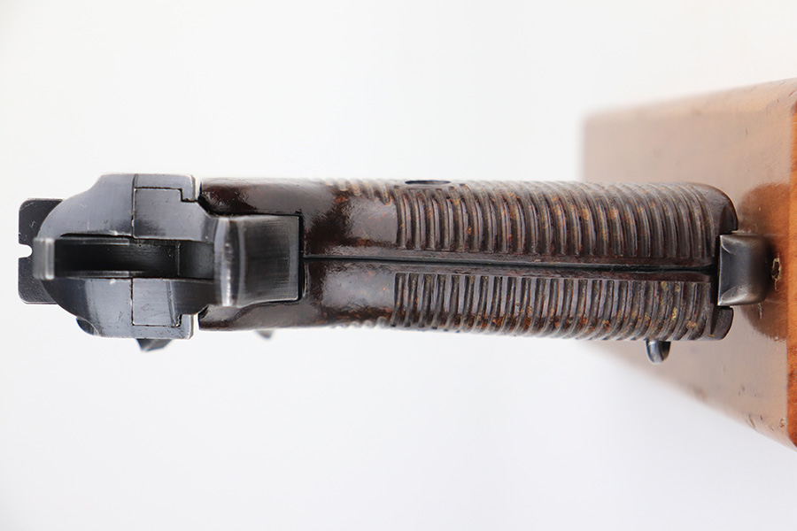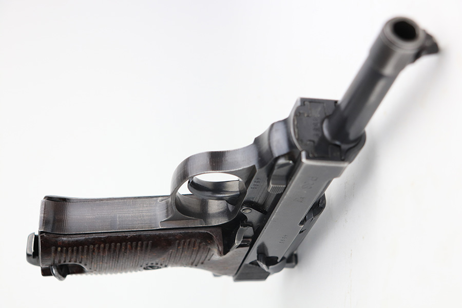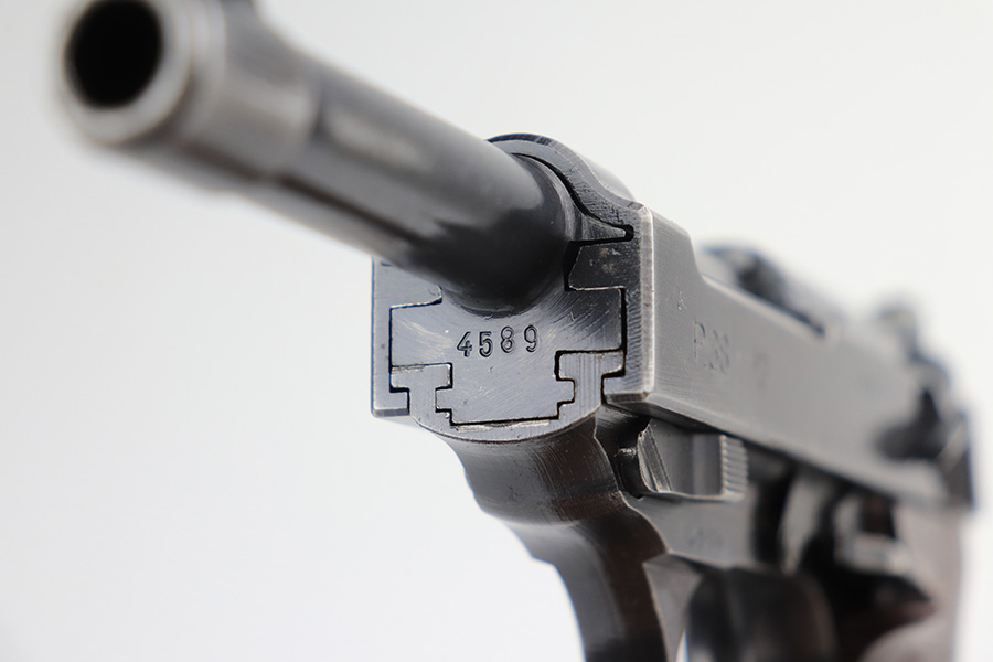 12/22/21 – – This is a very nice example of a rare Mauser P.38 rig issued to the Nazi military in 1942. It is a first-year Mauser production, where only 19,000 of these were made, making it only slightly more common than the zero series or Nazi-marked svw 45’s. The dust blue finish is original and rates at 90-92%, with most of the finish loss on the front left area of the slide and left side of the barrel. Bore is very good with just a little bit of frost. Excellent grips with no cracks or chips. Mauser mag.