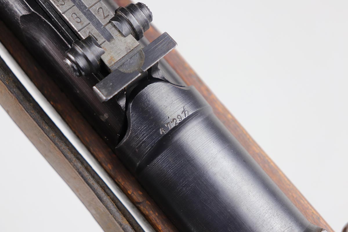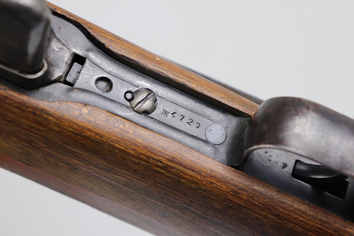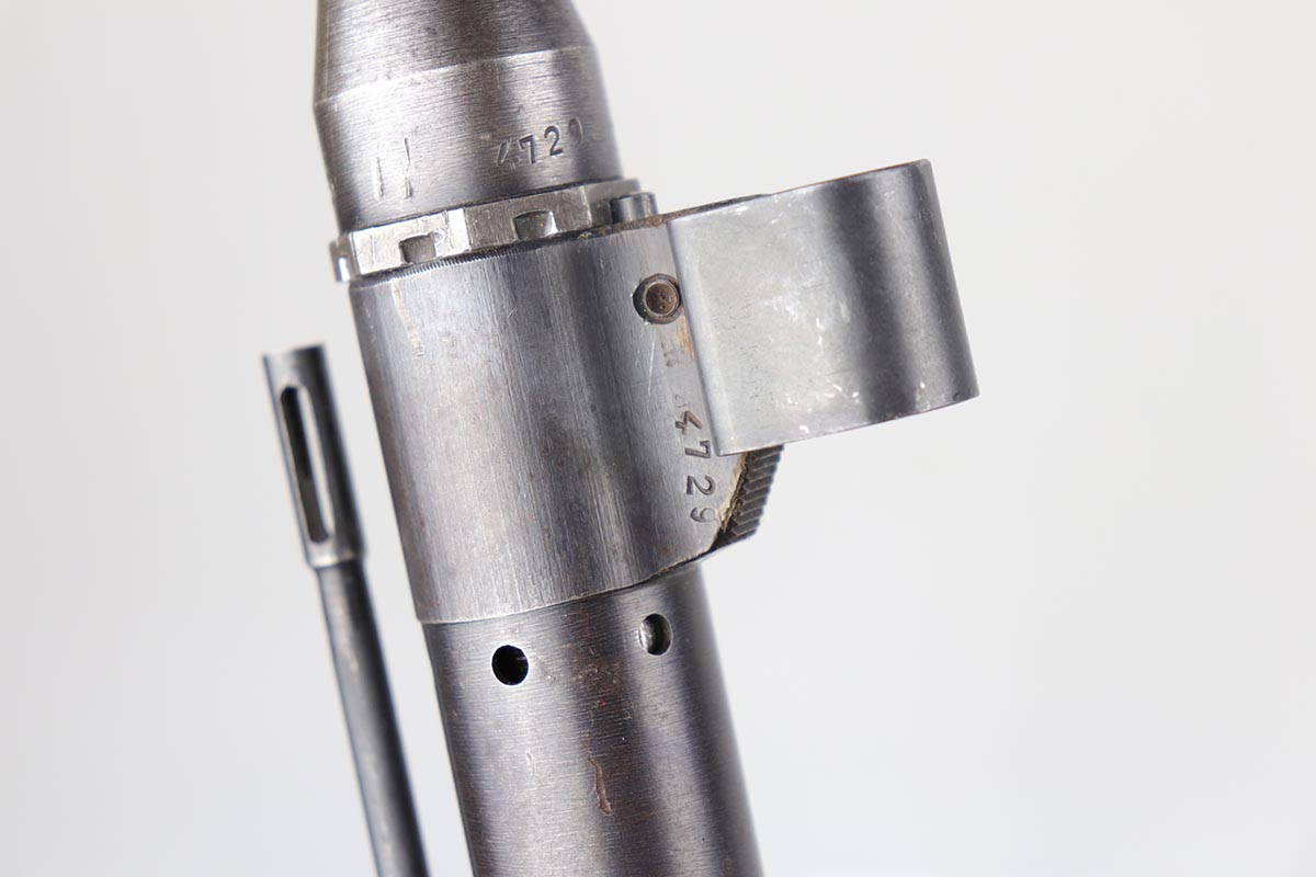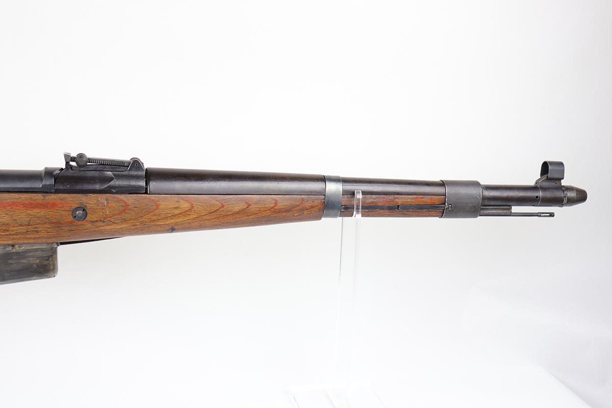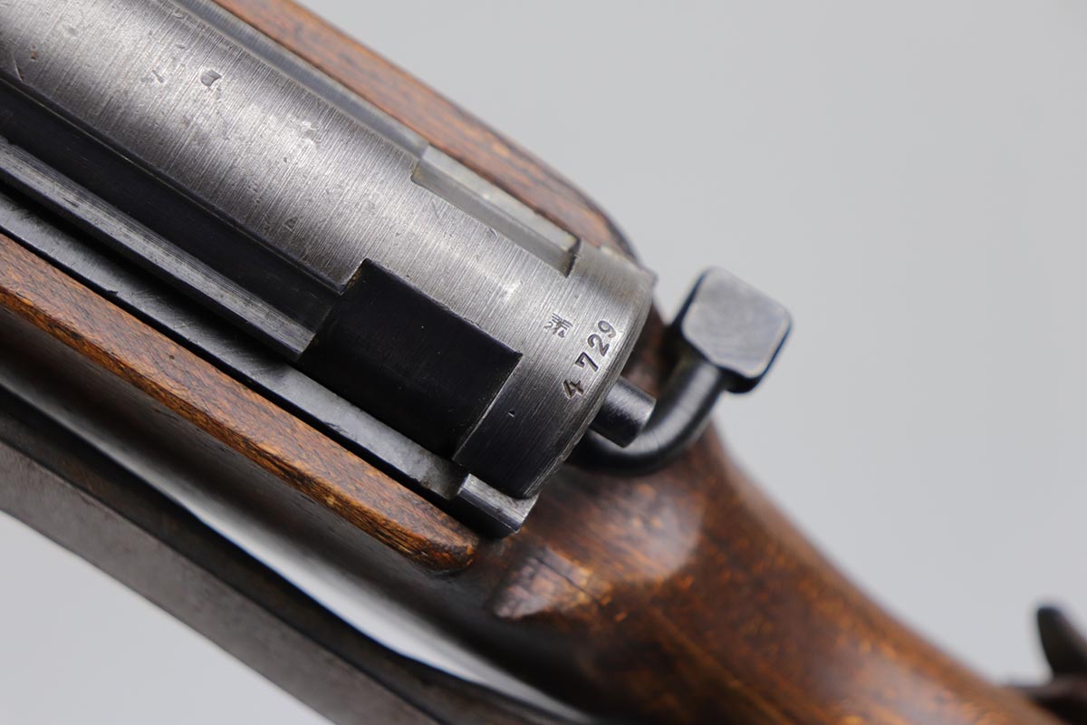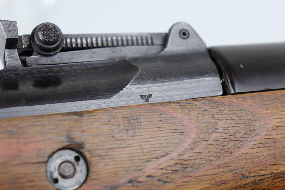 3/2/20 – This is a rare and desirable Walther Gewehr 41 (G41) rifle from World War II. The receiver is marked with ‘duv 43’ code, denoting it was manufactured at the Berlin-Lubecker factory. There were fewer than 10,000 estimated G41s produced before production switched to the G43/K43. These early G41 series of rifles used the “Bang Gas-Trap” system which employed a barrel mounted “Gas Trap” muzzle cone to trap hot gas that was bled off when the round was fired, which cycled the action. This entire series of rifles was very short lived however it was used extensively on the Eastern Front where a semi-automatic rifles was considered essential for “long-life”. Consequently, their survival rate is very low in any condition. The later series of G/K43 rifles did away with the earlier “Bang” gas trap style system and instead used a barrel mounted gas system, that was copied from the Russian Tokarev rifles, making them far more reliable and easier to produce. The Walther design was more successful than the Mauser design at least, as they removed the bolt and had a cleaner receiver area as a result. This particular rifle is all matching and correct, with fully matching numbered parts. The receiver and all numbered areas of the upper/barrel are matching, as is the stock and trigger assembly. E/214 proofs present on several metal parts. The finish on the metal parts is in very good condition, with most of the thinning/patina on the magazine/mag well. The stock is in very good condition with no cracks but a few minor chips or dings. Mint bore. Sling is included.