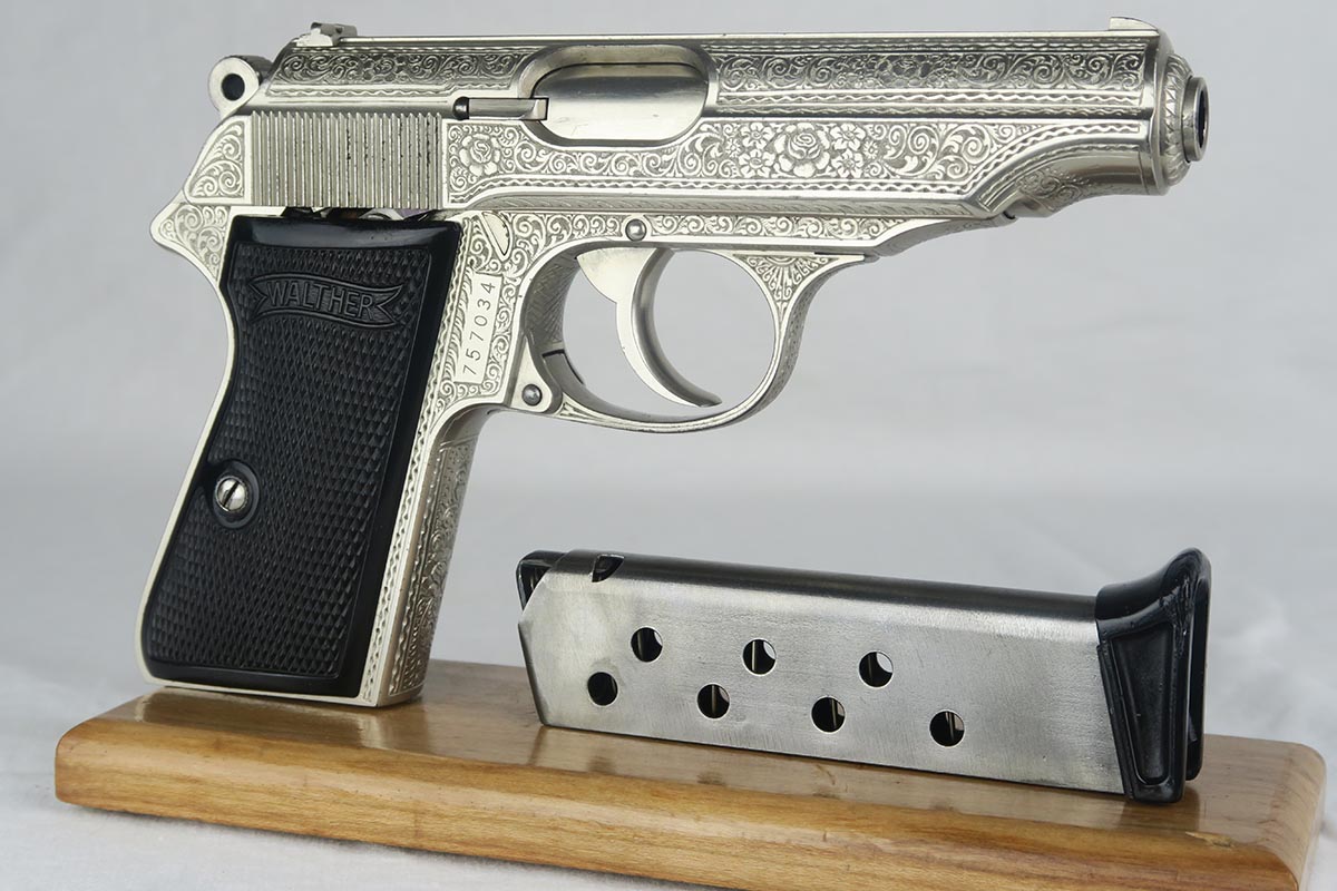 SOLD – RARE Nickel Engraved Walther PP – Floral Pattern