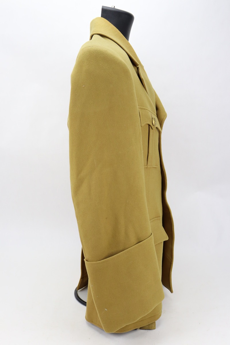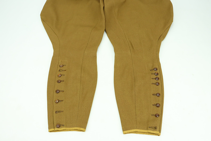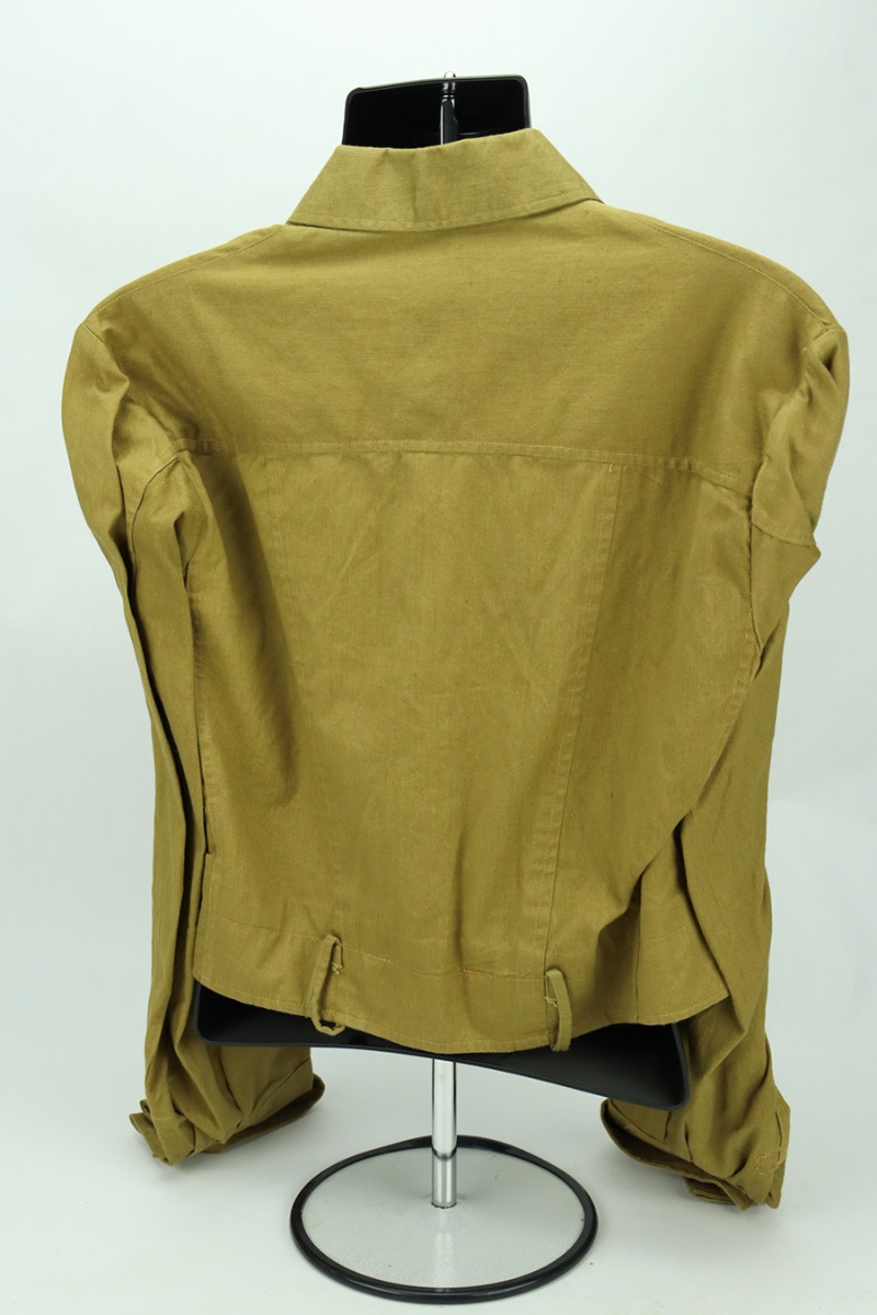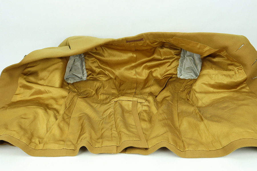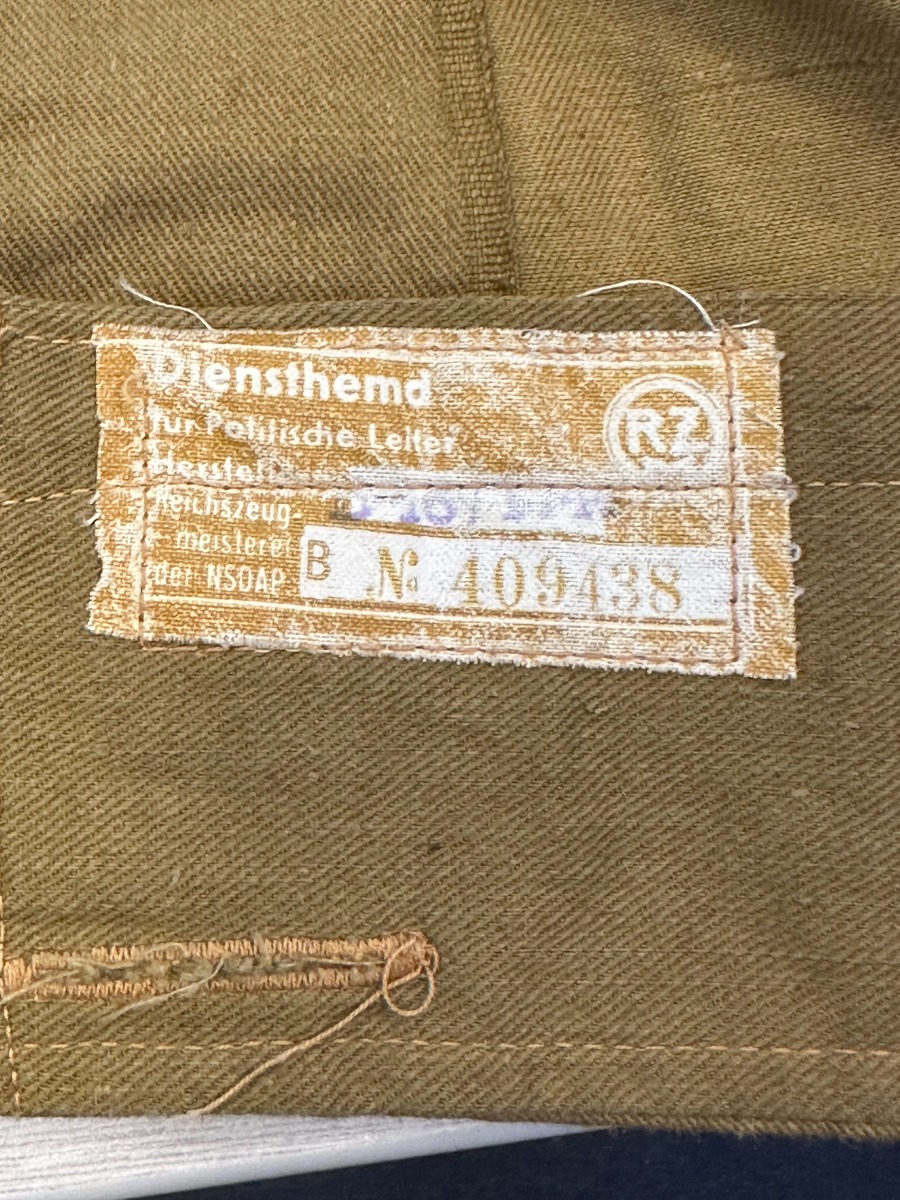 1/16/24 – This is a terrific example of an original NSDAP Political Leader’s Uniform from World War 2. The listing includes the original jacket, trousers, shirt, visor and armband. The jacket is in great shape with all buttons in place and no notable defects. It does not feature any collar tabs or indication of rank. The jacket liner is also intact. The matching brown twill wool pants are also present. They bear a five-button fly closure with six buttons closing the tapered ankles of each pant leg. Two diagonal front pockets with buttoned flaps are present as is a small watch pocket, and one similar horizontal pocket is situated on the right rear. The number ’46’ is inked inside. An armband with no tag/internal markings is included. The original undershirt is also included, which has the RZM tag with maker markings and serial number still intact. It is also in very good condition with some signs of age but no major issues. The listing is completed by the original visor, also in fantastic shape. Internal tag marked with just the number ’54’, and the initials FW hand-written inside by a previous owner, presumably.
