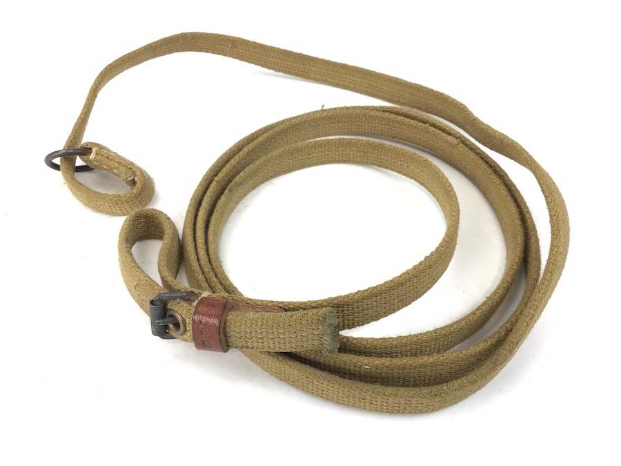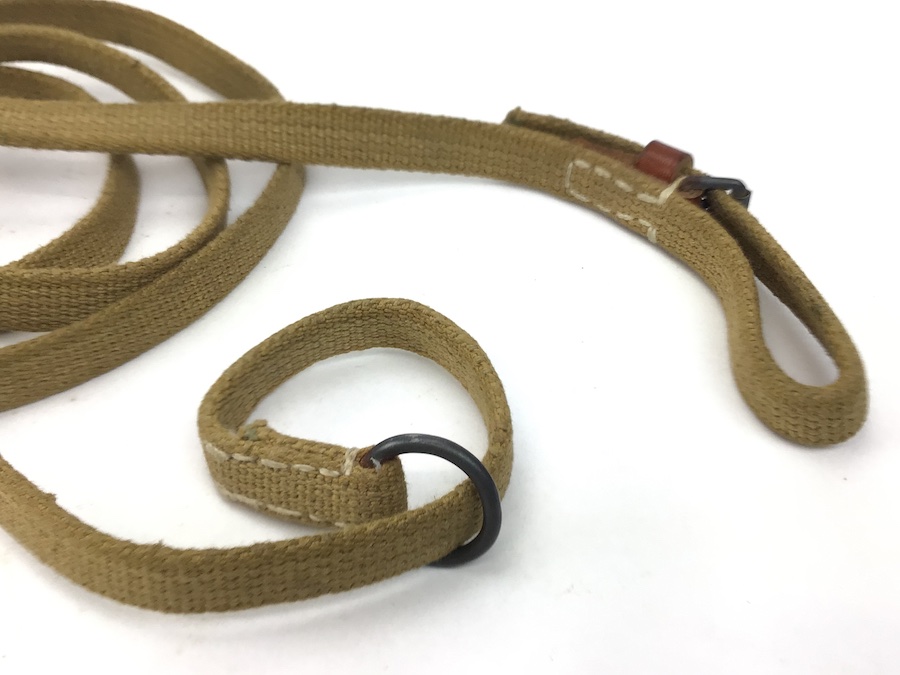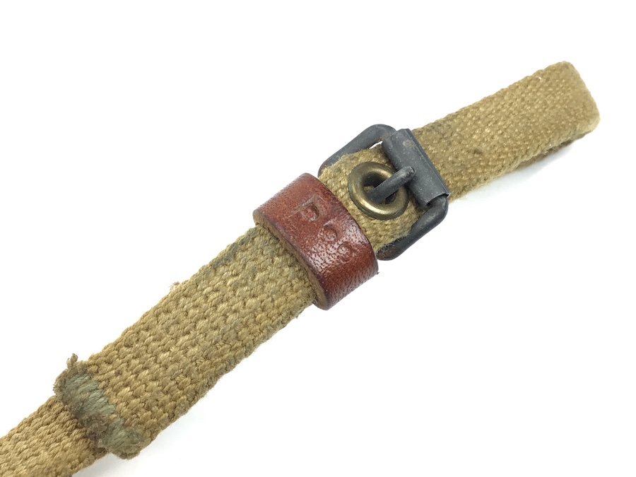 6/2/21 – This is a scarce P.38 pistol lanyard. Made from a canvas material with a leather closure end. The leather keeper is stamped P.38 and there are no other markings. Overall in excellent condition.