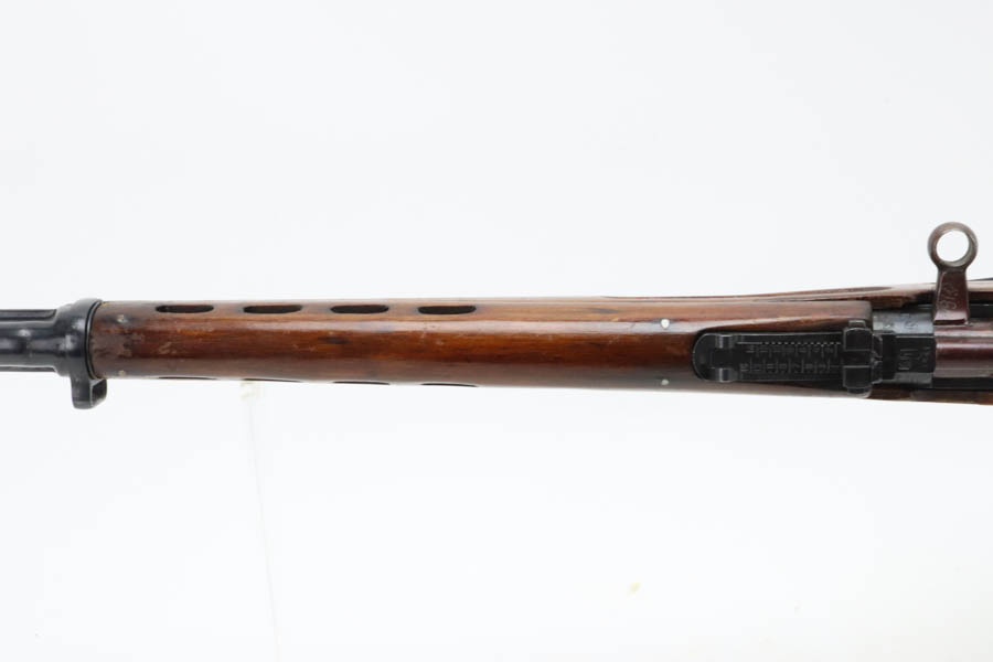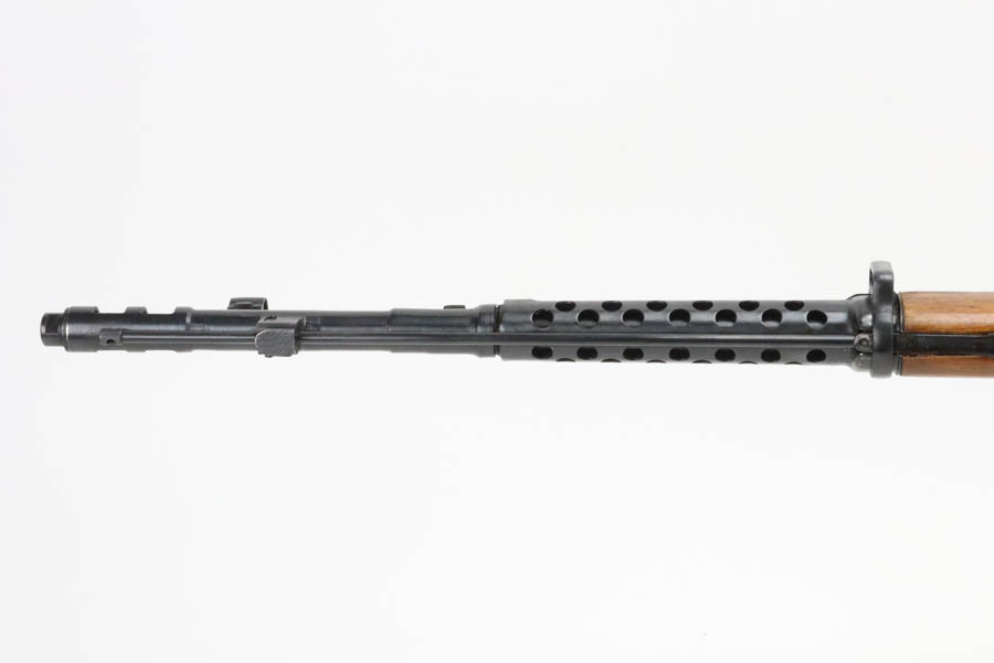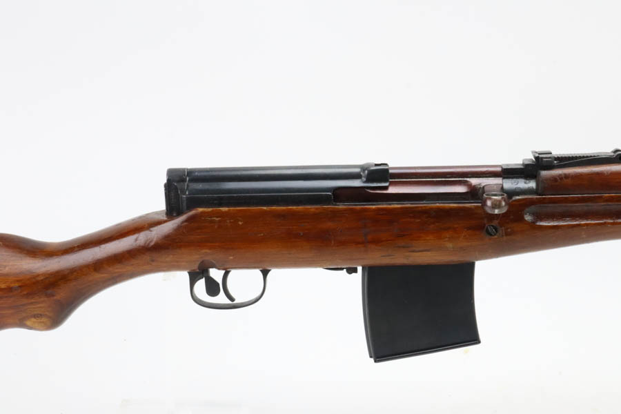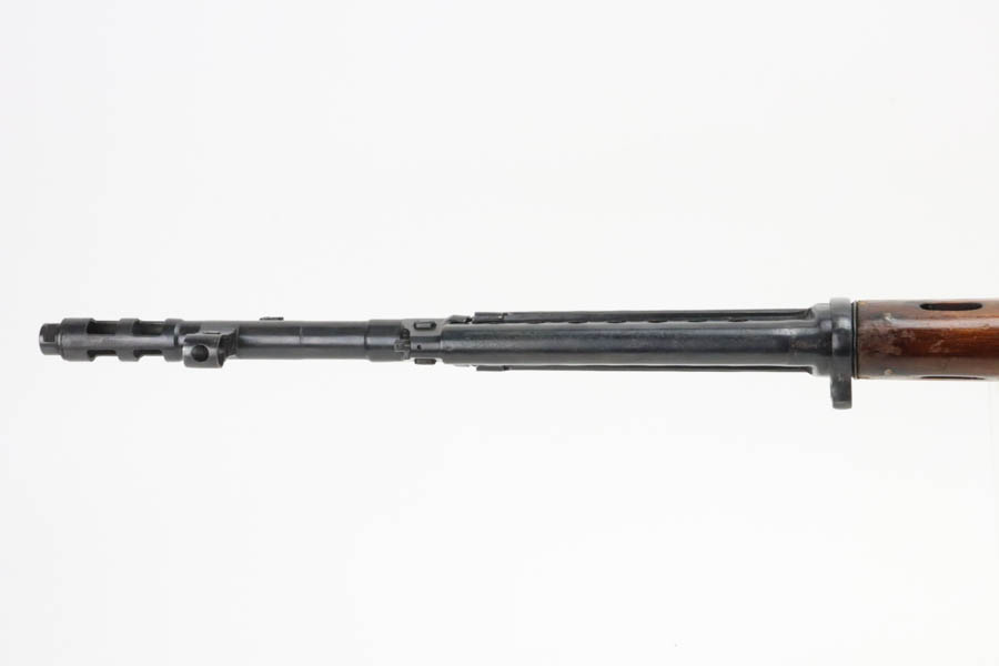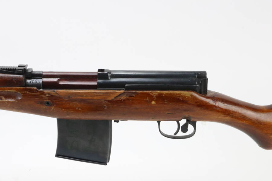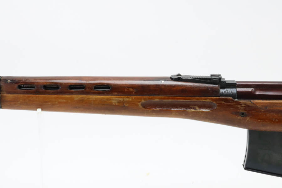 06/07/2024 – For sale is a scarce Podolsk SVT-40 made in 1941. The Podolsk Arsenal made under 8% of total production of the SVT-40. (111,659 of 1.45 million). The rifle has undergone post-war Soviet refurbishment. The metal has the typical dark blued finish on the metal and in great condition. The bolt has a reddish plum finish from the refurbishment. The rifle is matching on the receiver, forcematched on the bolt, bolt carrier, and trigger guard. The stock is mismatched but the stock is an AVT-40 stock. The bore is bright but does get a little darker towards the muzzle. The rifle comes with a reproduction magazine.