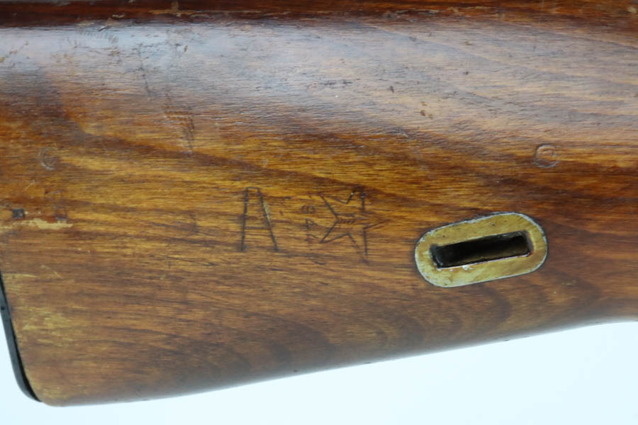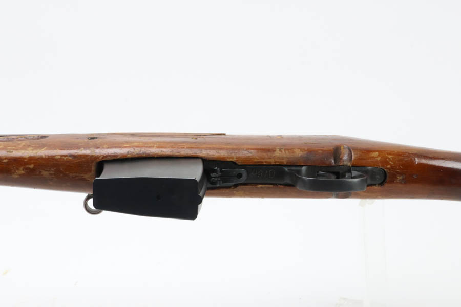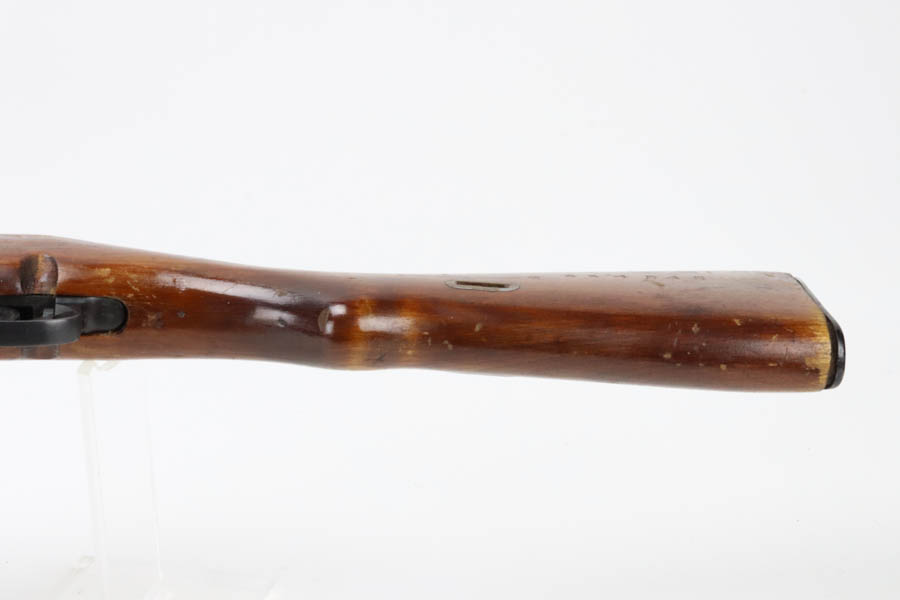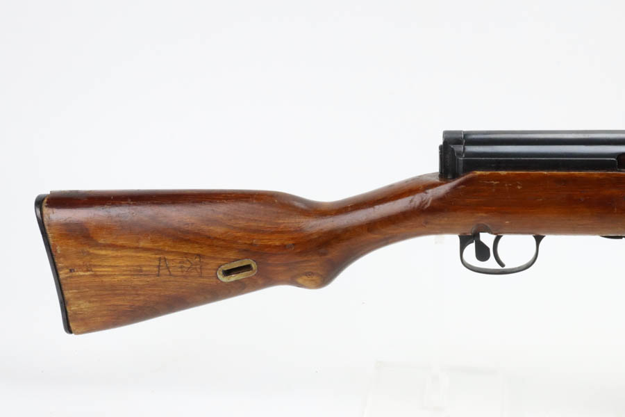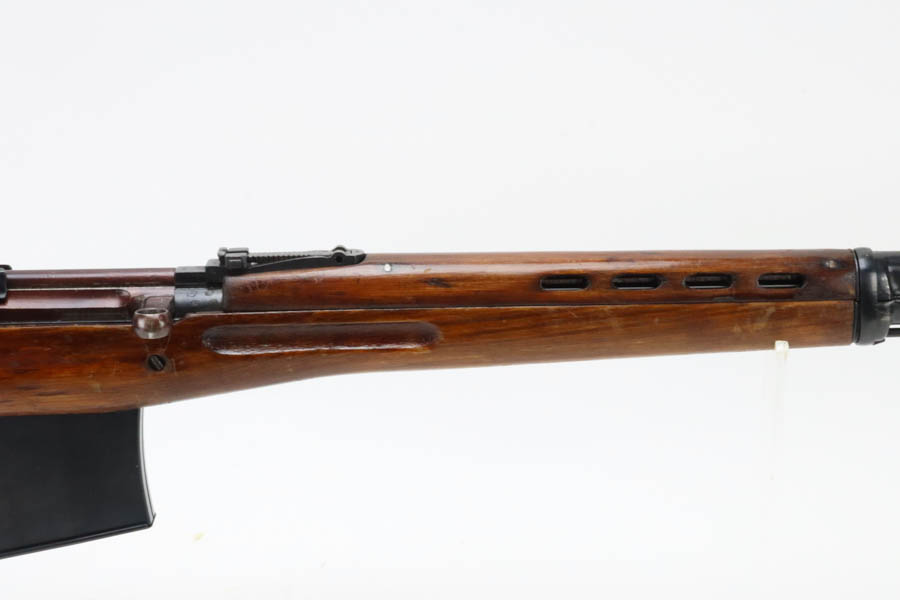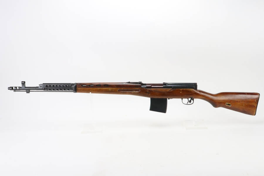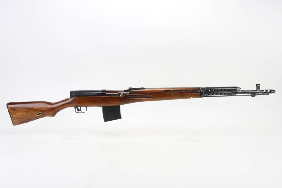 06/07/2024 – For sale is a scarce Podolsk SVT-40 made in 1941. The Podolsk Arsenal made under 8% of total production of the SVT-40. (111,659 of 1.45 million). The rifle has undergone post-war Soviet refurbishment. The metal has the typical dark blued finish on the metal and in great condition. The bolt has a reddish plum finish from the refurbishment. The rifle is matching on the receiver, forcematched on the bolt, bolt carrier, and trigger guard. The stock is mismatched but the stock is an AVT-40 stock. The bore is bright but does get a little darker towards the muzzle. The rifle comes with a reproduction magazine.