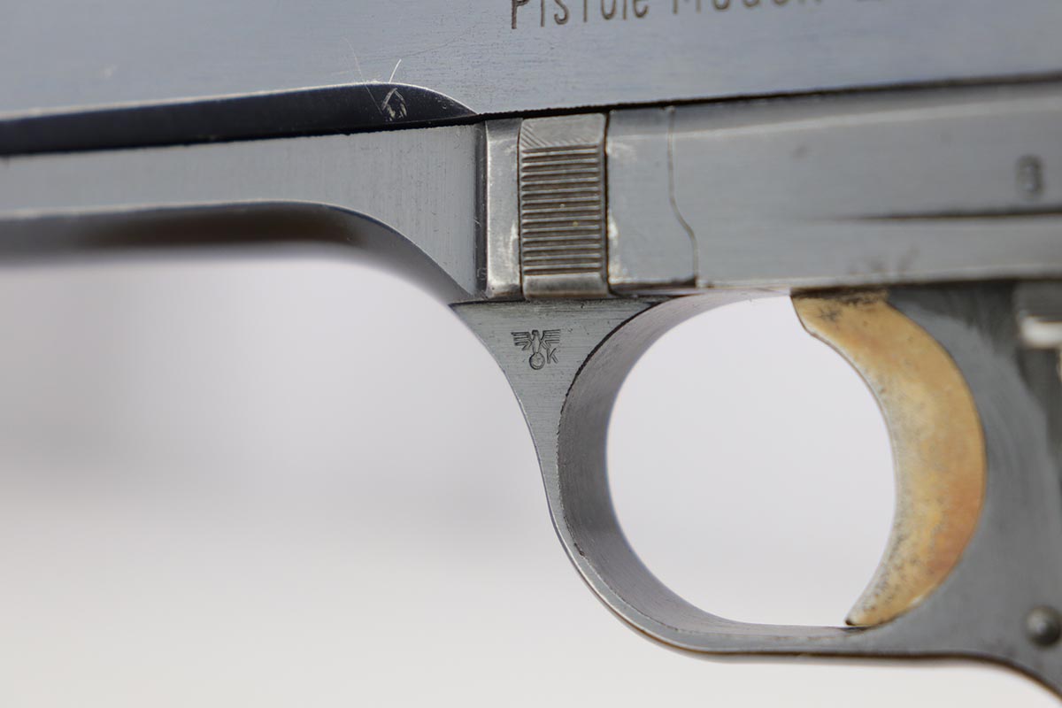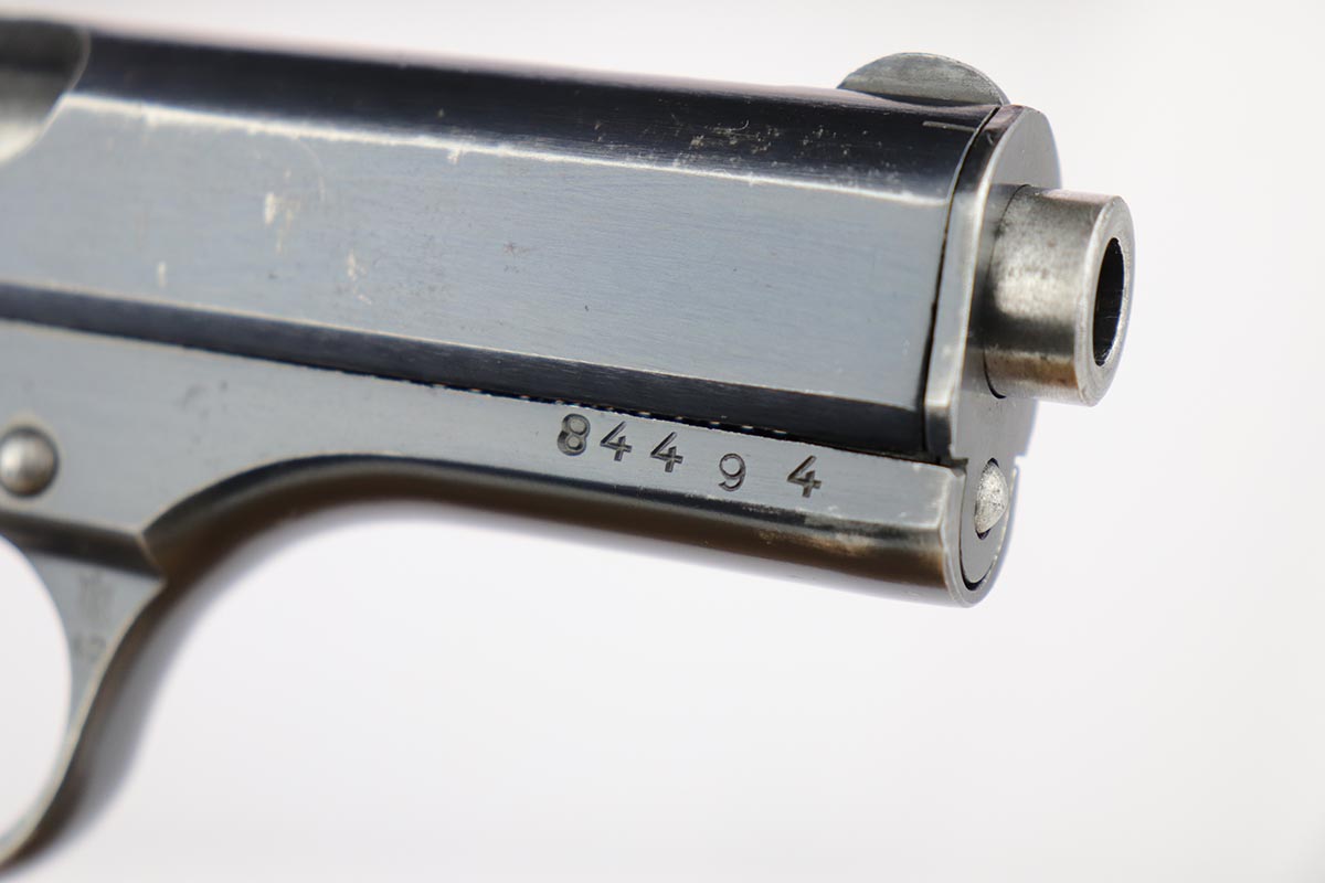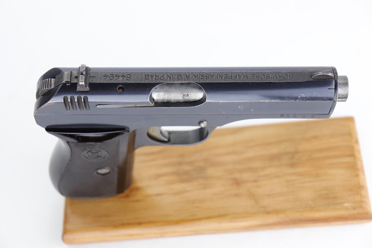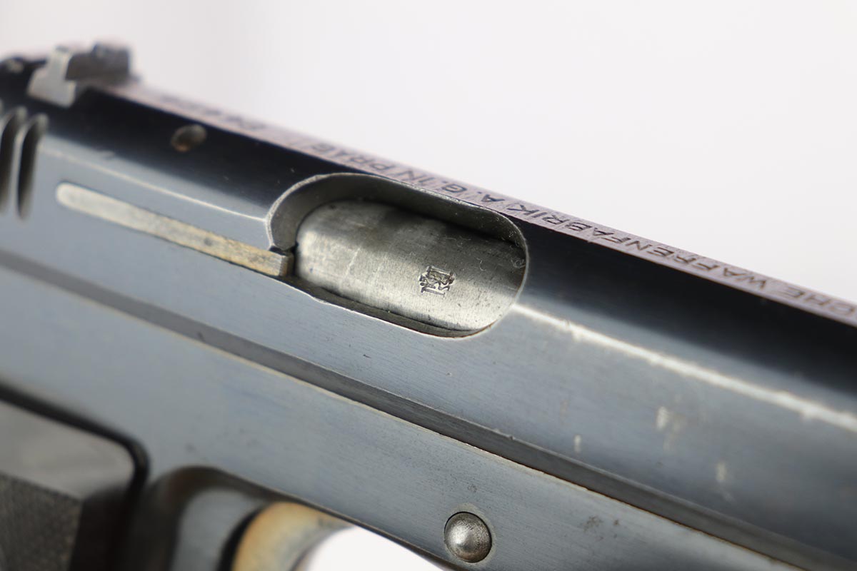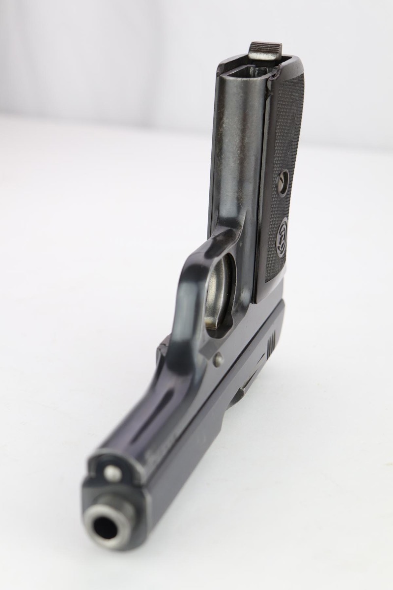 2/20/20 – This is a rare CZ model 27 that was made in 1942 and issued to the German Police. It’s one of only ~5,500 produced with high-polish blue and police marking on left side of frame. This pistol also has a matching numbered magazine, which is done so in the police style. The pistol has a very nice profile but most of the thinning is on the front strap. Mint bore. Grip has the common chips in the bottom, front corners.